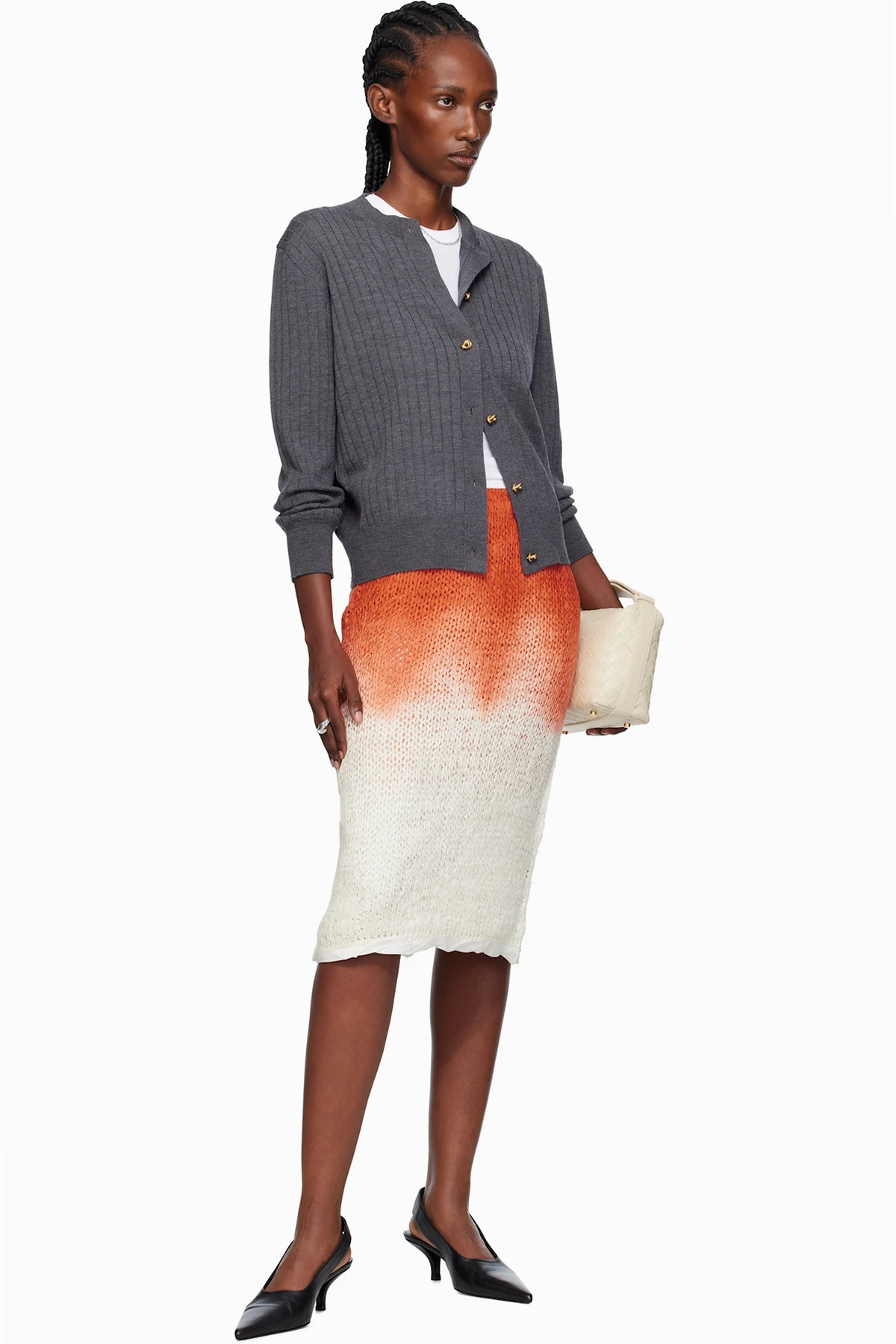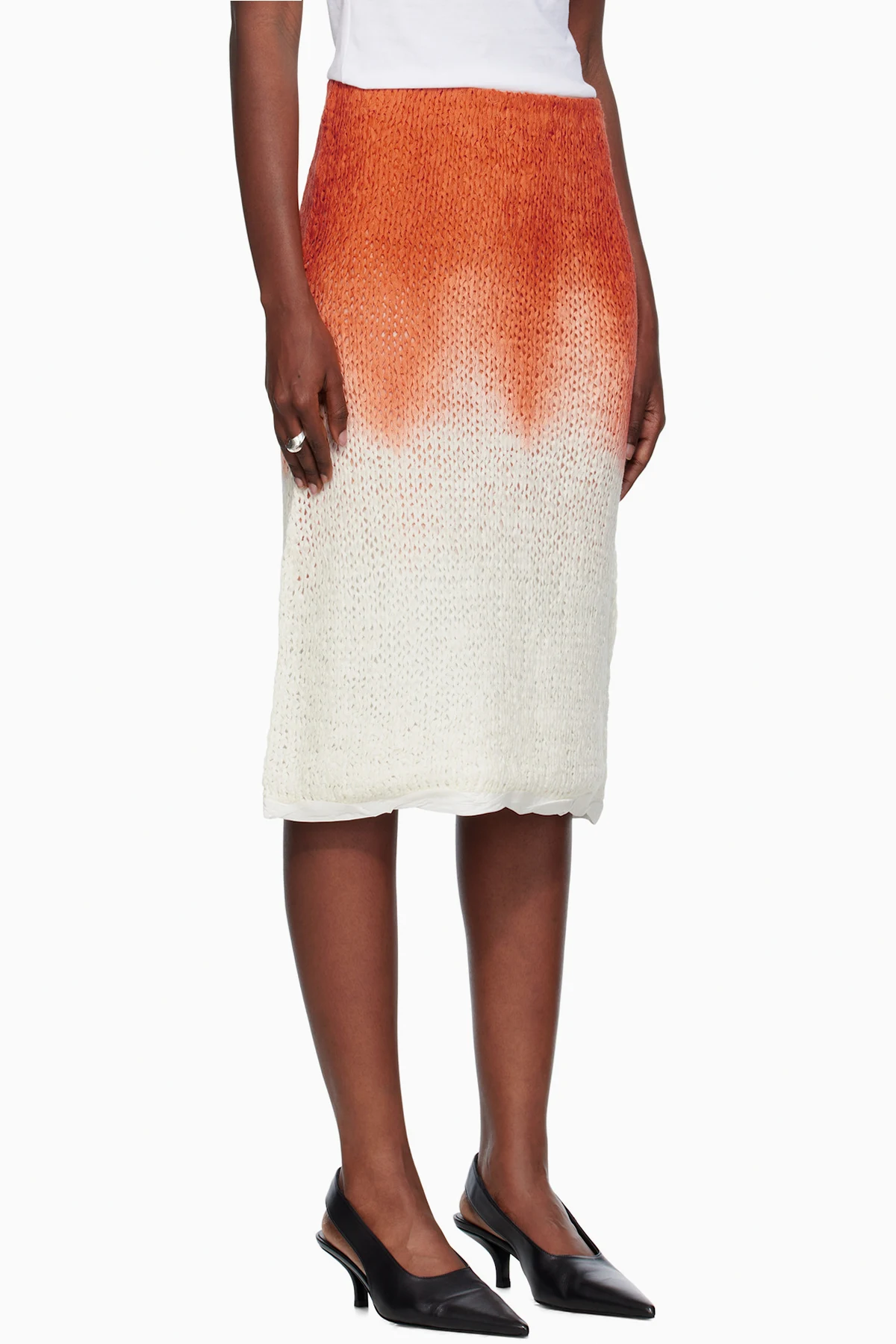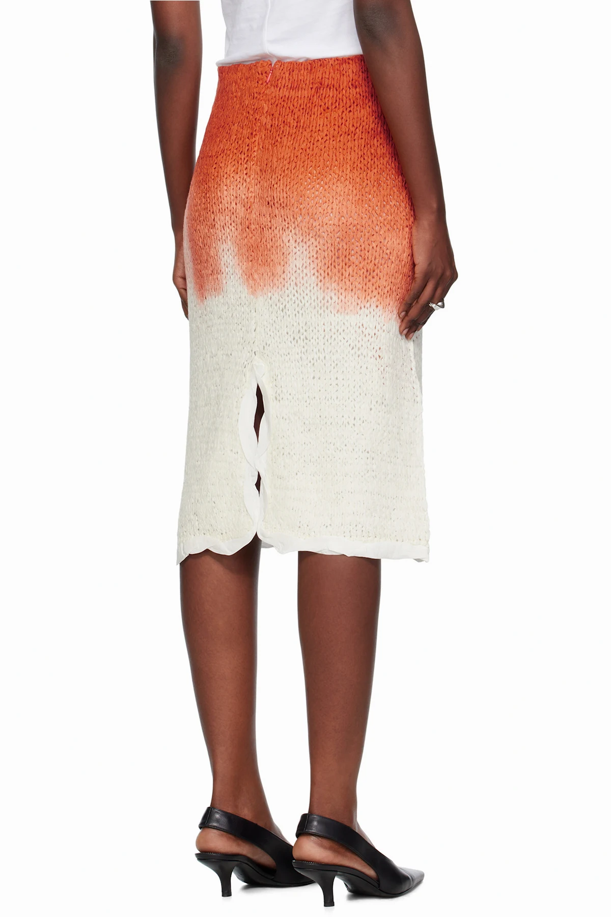 Bottega Veneta Orange & White Over Dye Knit Midi Skirt