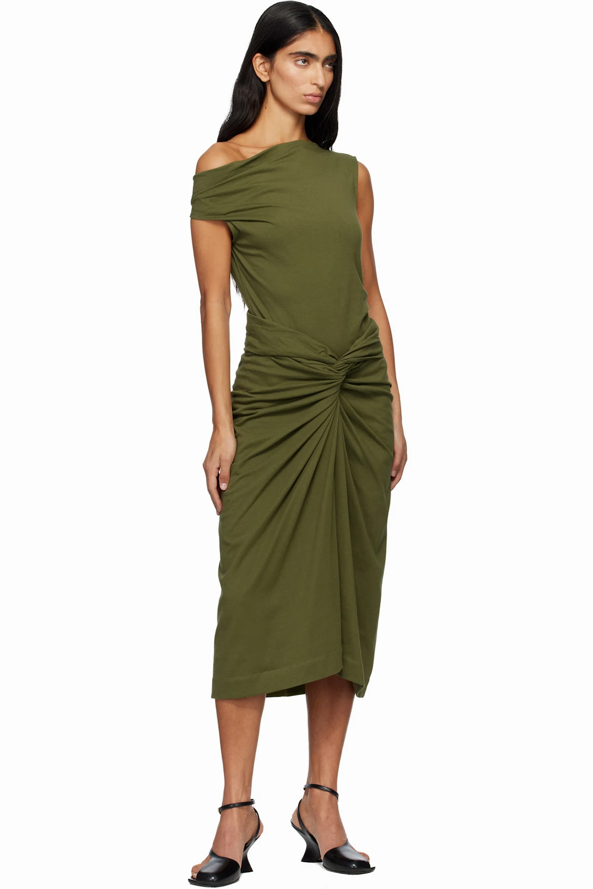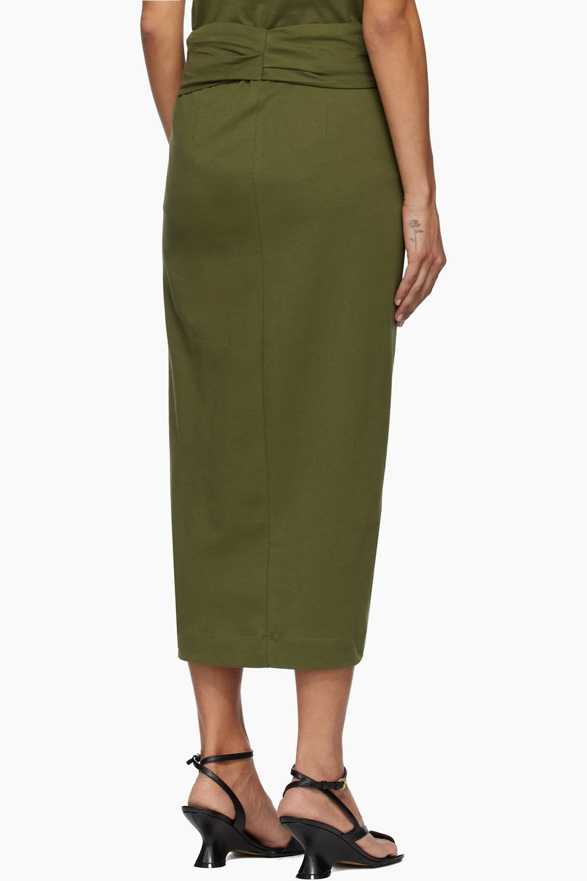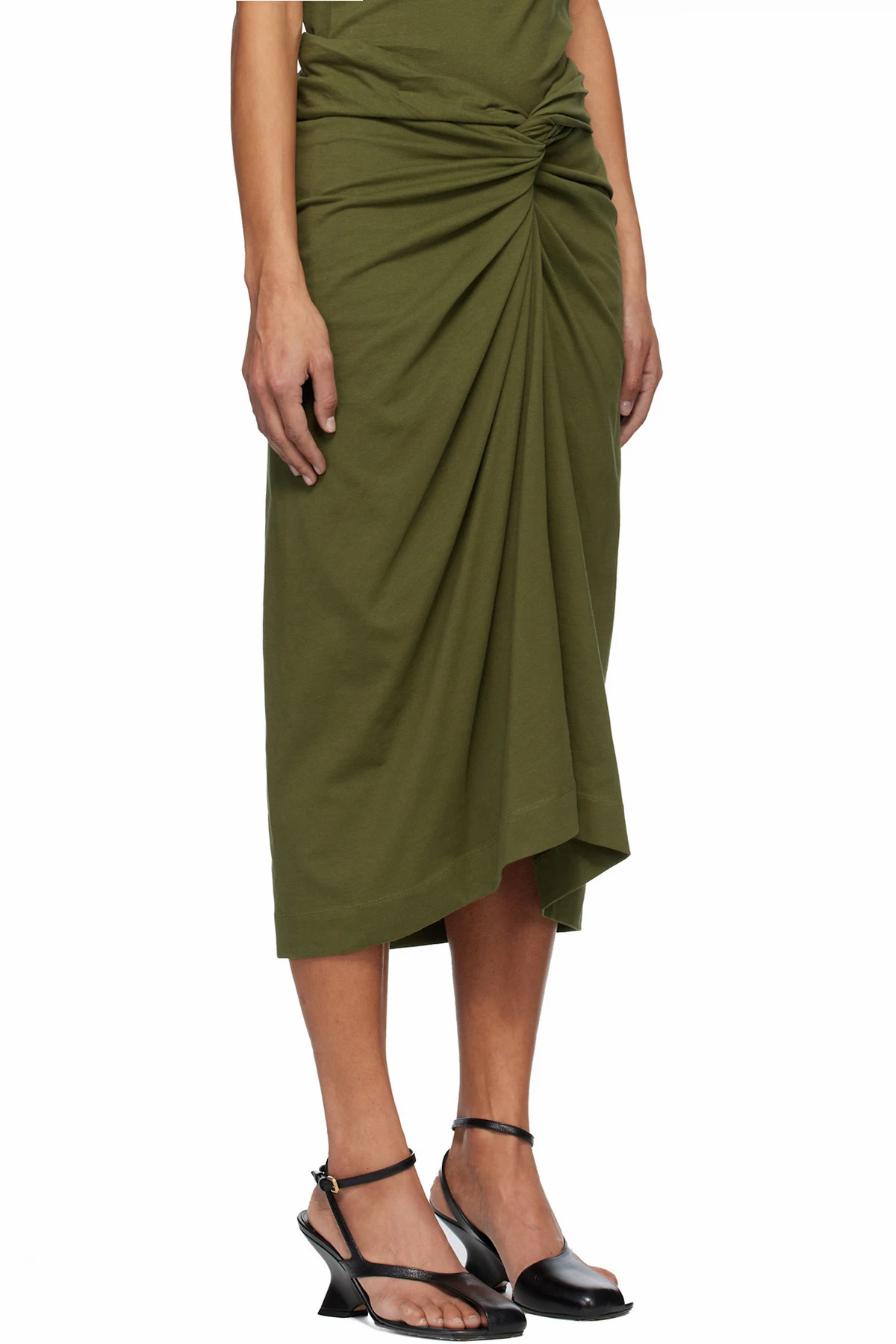 Dries Van Noten Green Knotted Jersey Midi Skirt