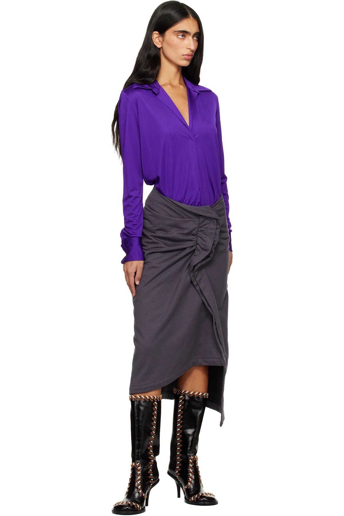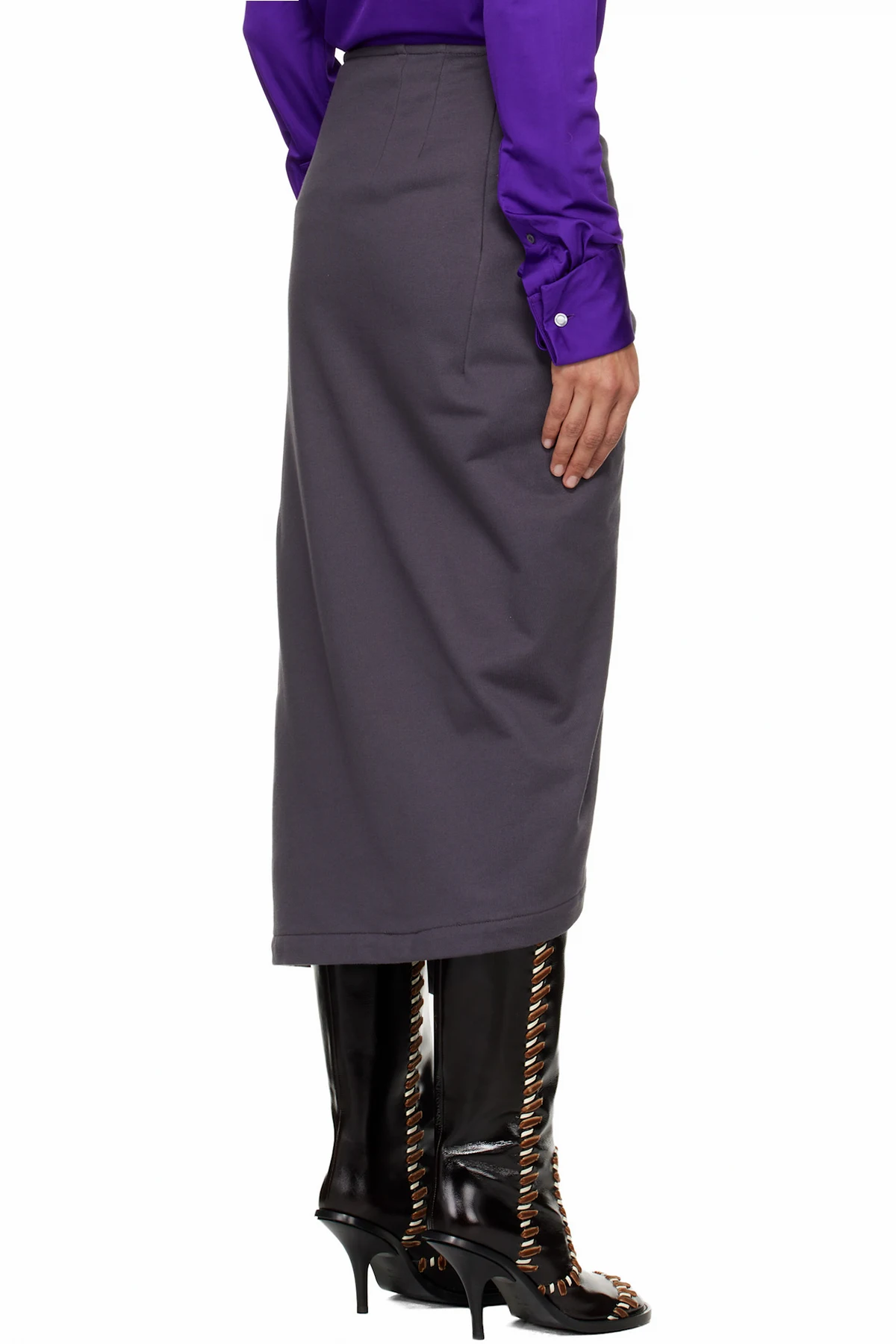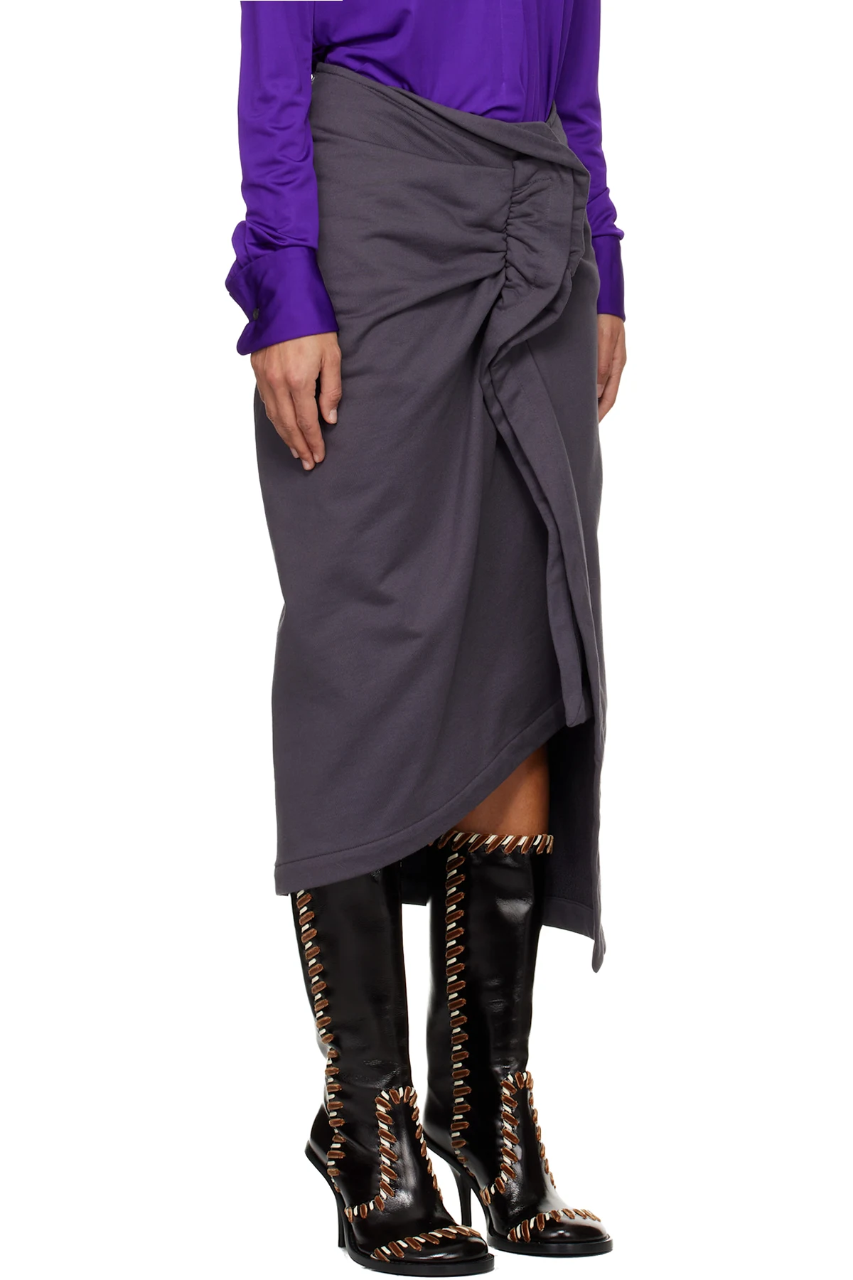 Dries Van Noten Gray Ruffled Cotton Midi Skirt