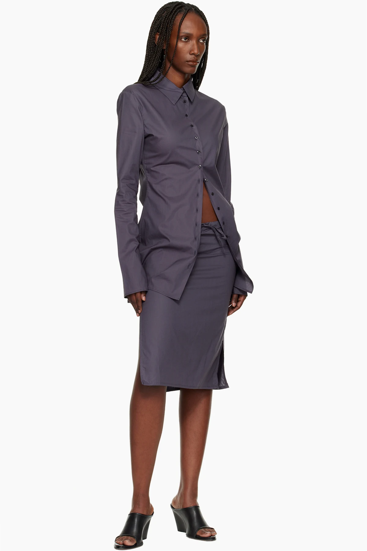 BAMBOU ROGER KWONG Gray Cotton Poplin Midi Skirt