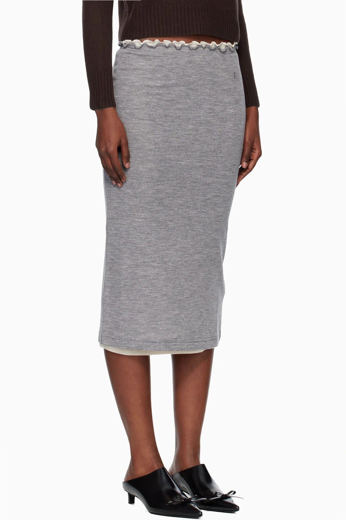 JIL SANDER Gray Lightweight Wool Layered Midi Skirts Set