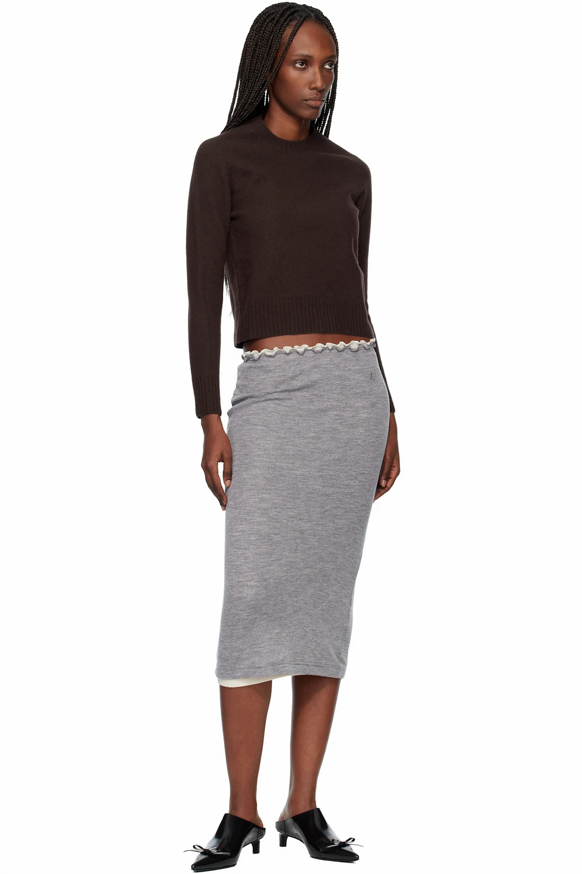 Set of two virgin wool jersey midi skirts.