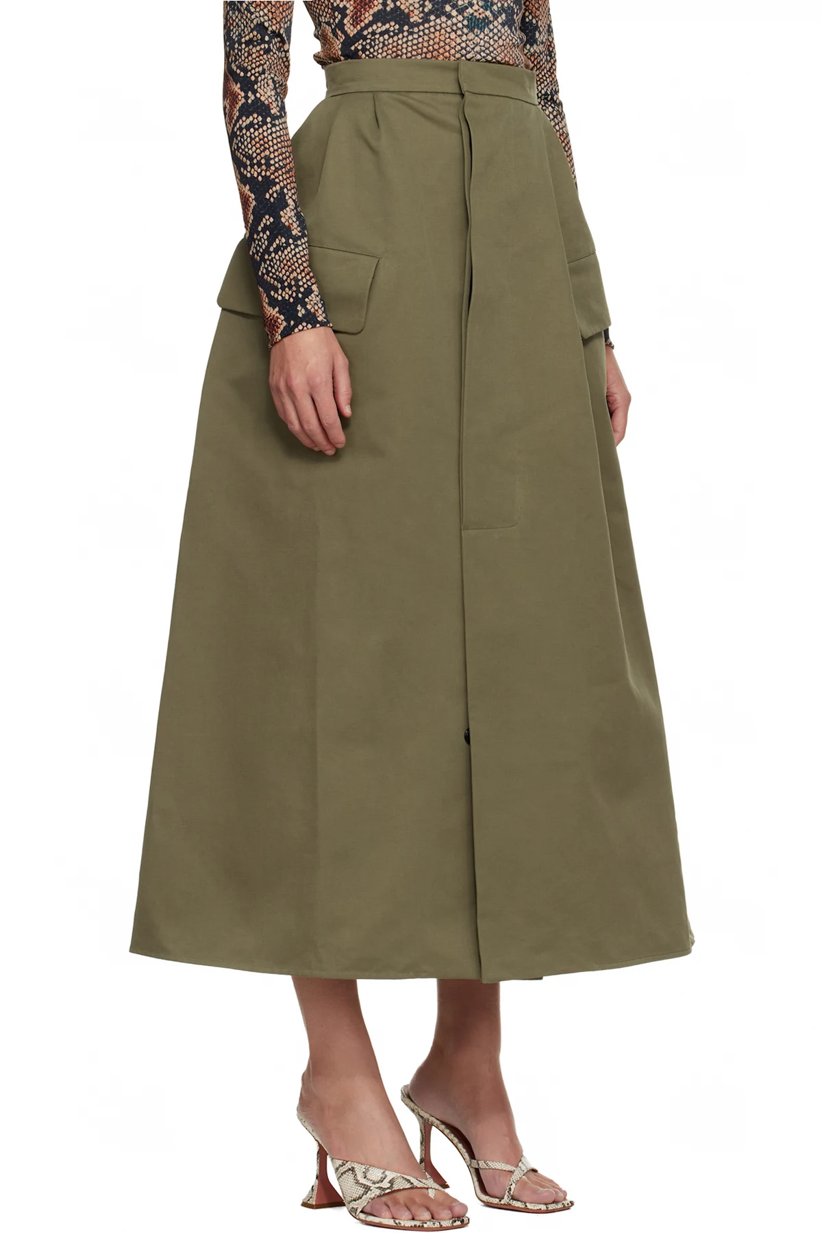 Duran Lantink Khaki Uniform Double Waisted Midi Skirt