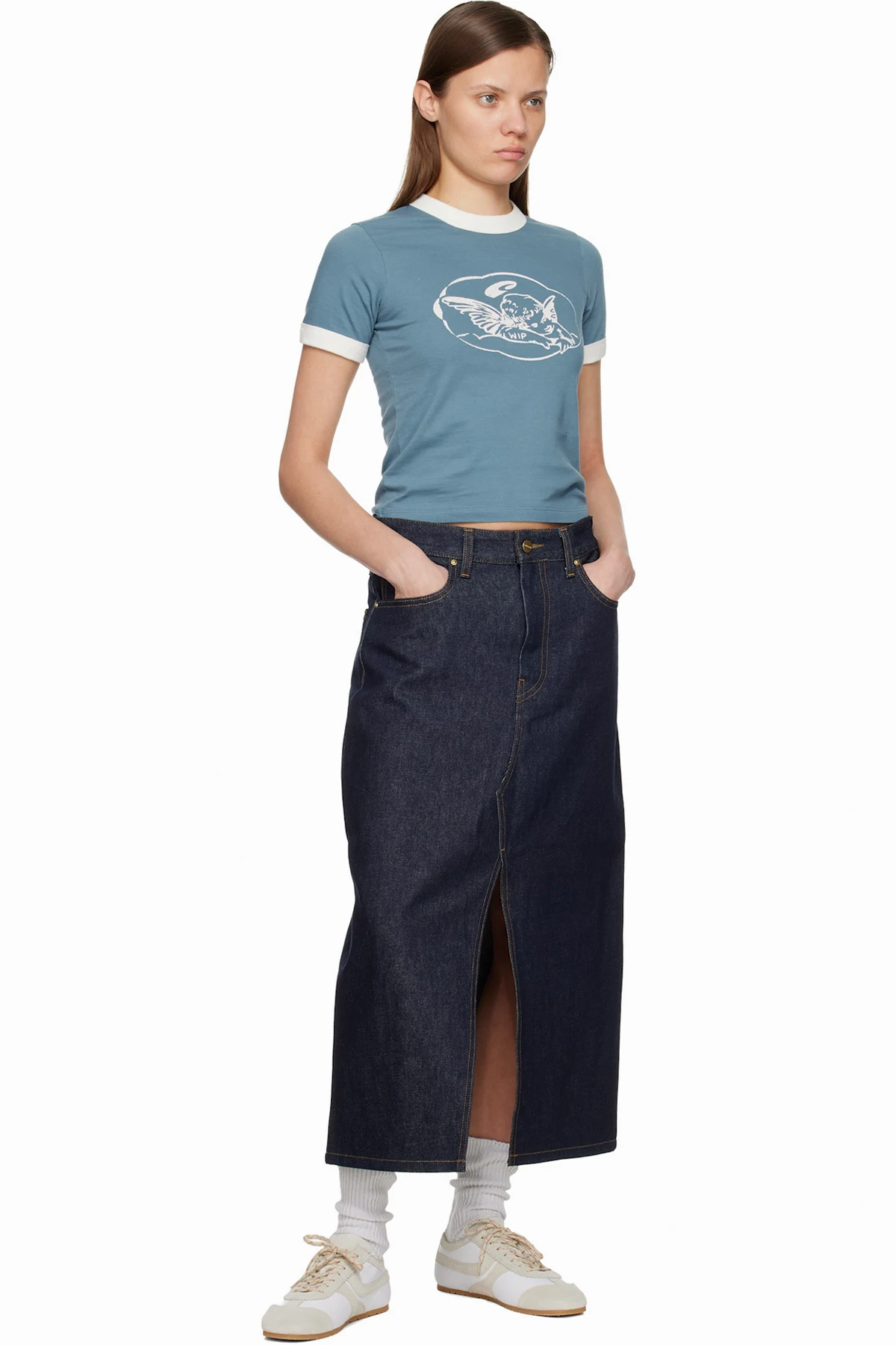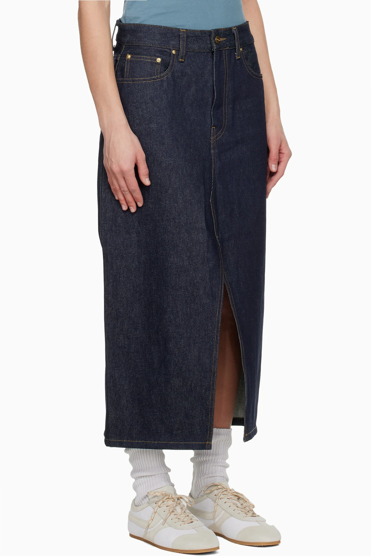 Carhartt Work In Progress Blue Brandon Denim Midi Skirt