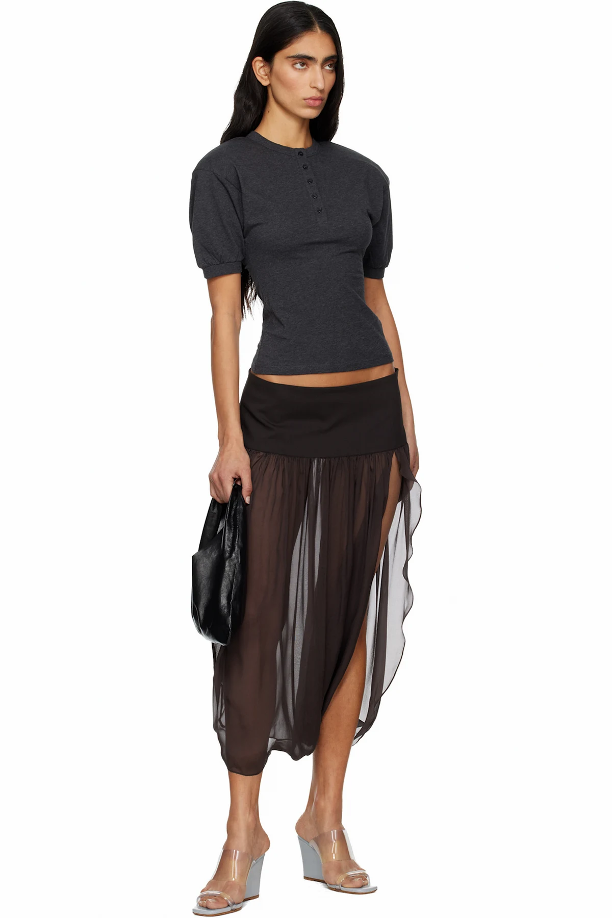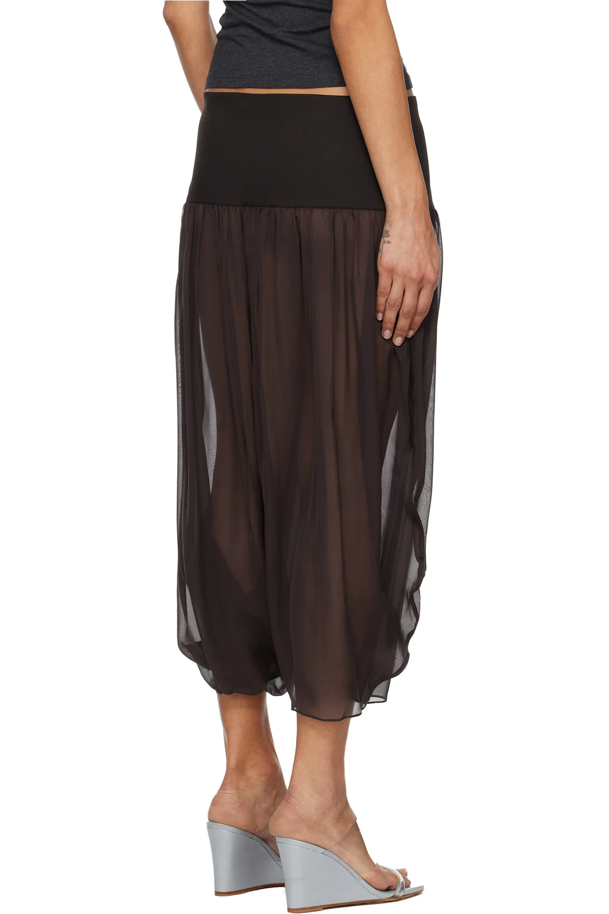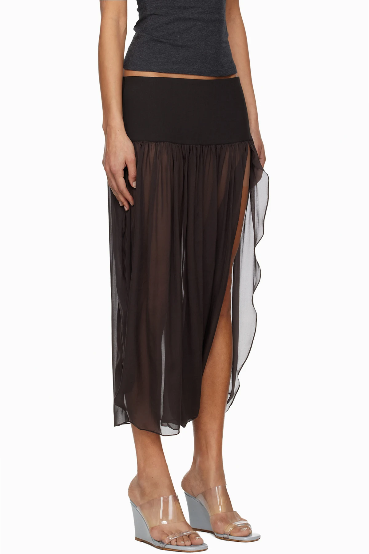 Sheer silk chiffon midi skirt.