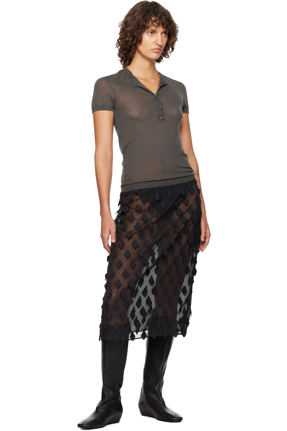 Sheer voile midi skirt.