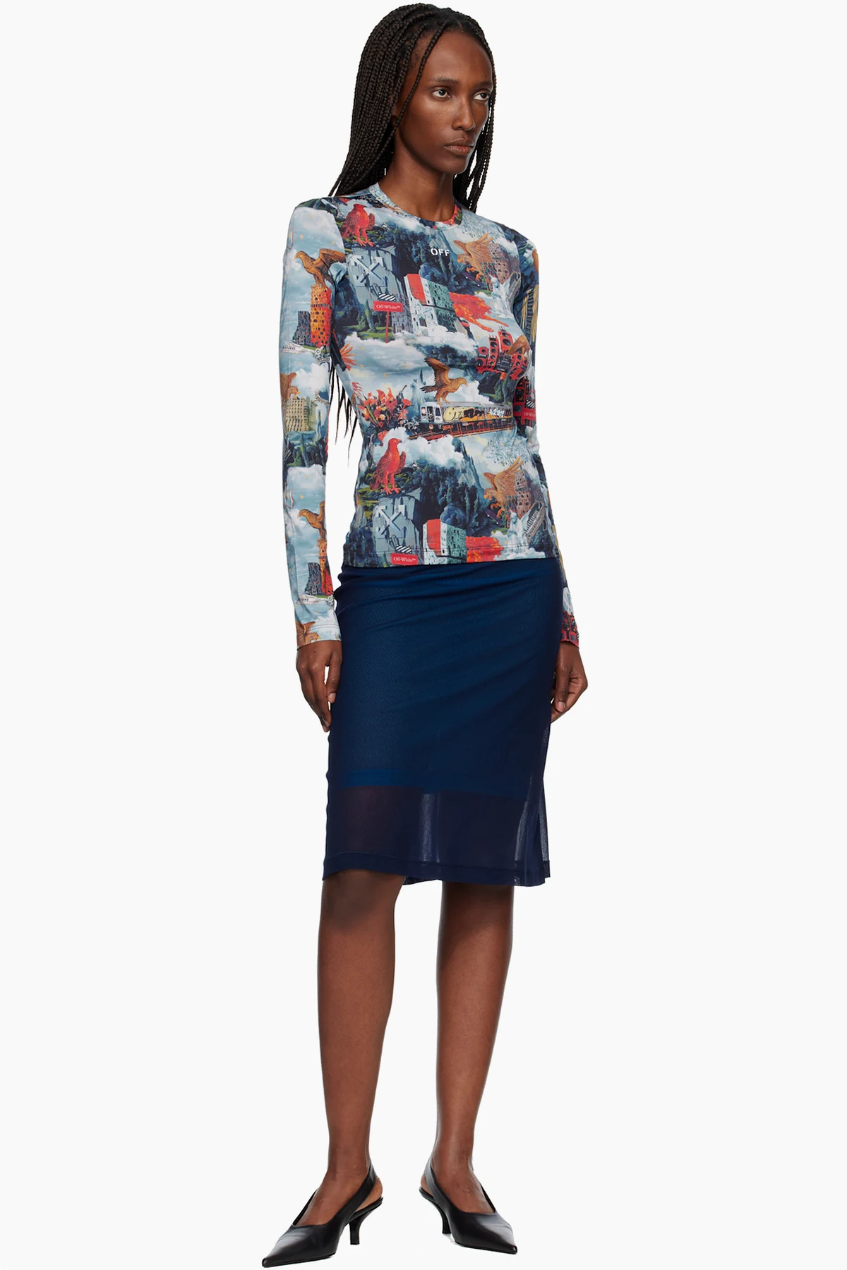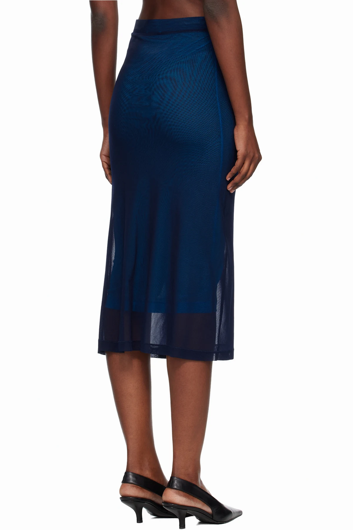 Off-White Navy Mesh Double Layer Midi Skirt