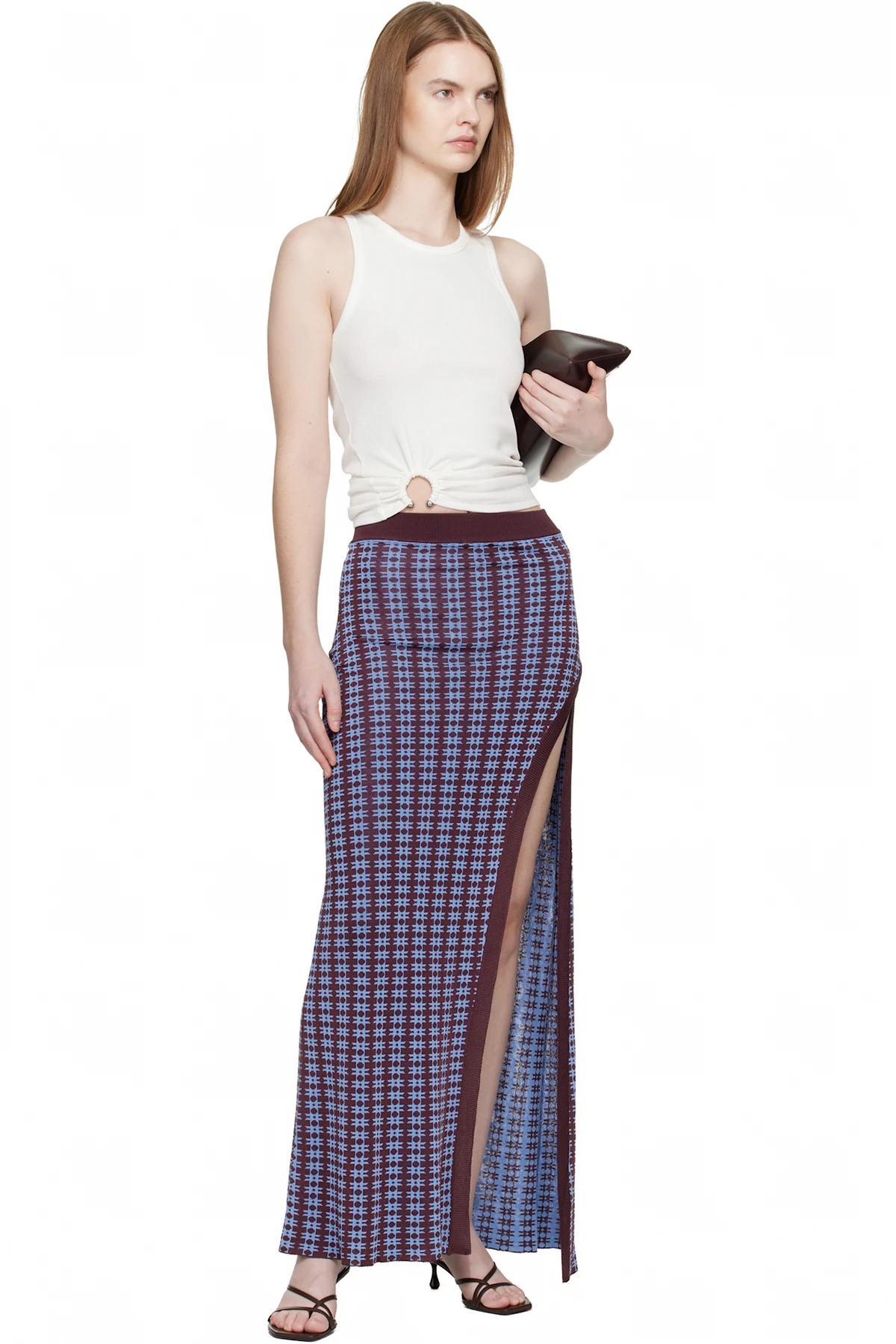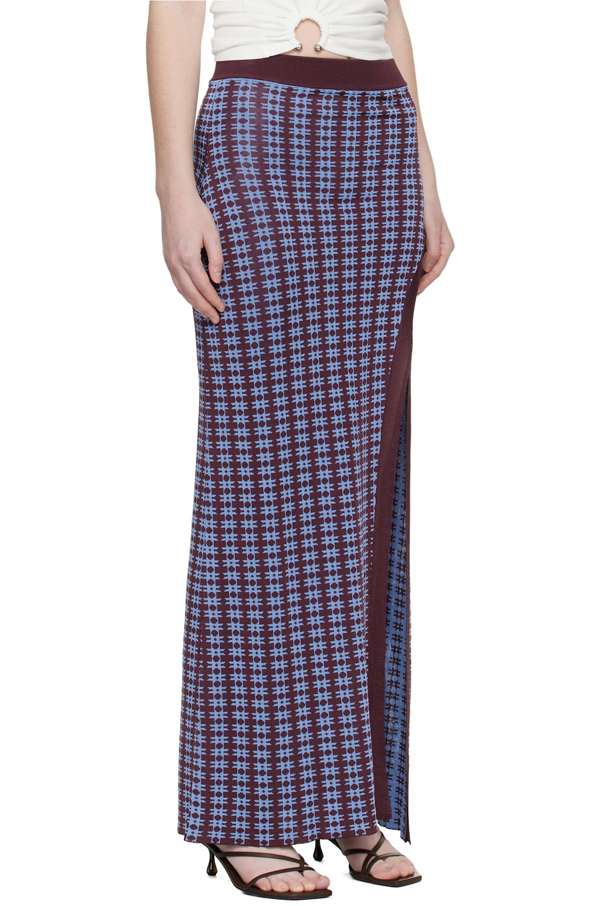 Rabanne Blue & Burgundy Knit Midi Skirt