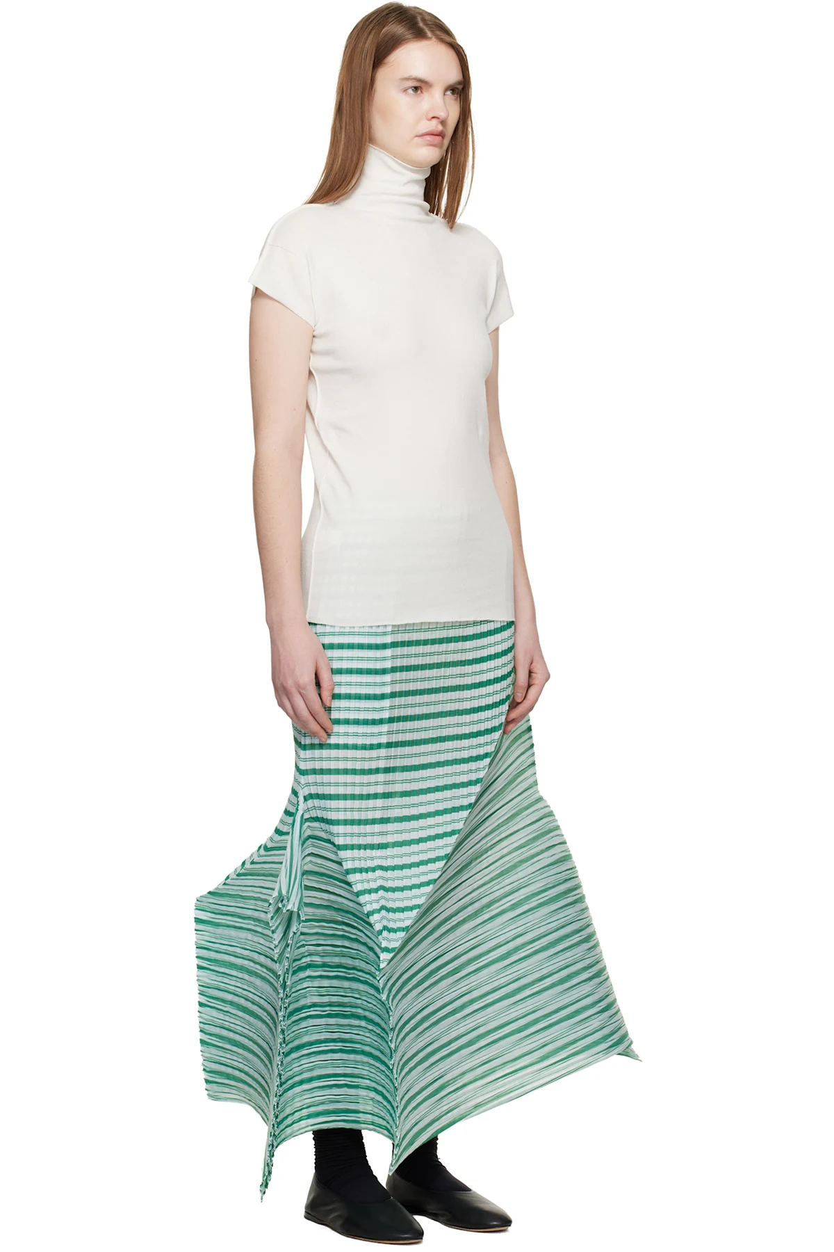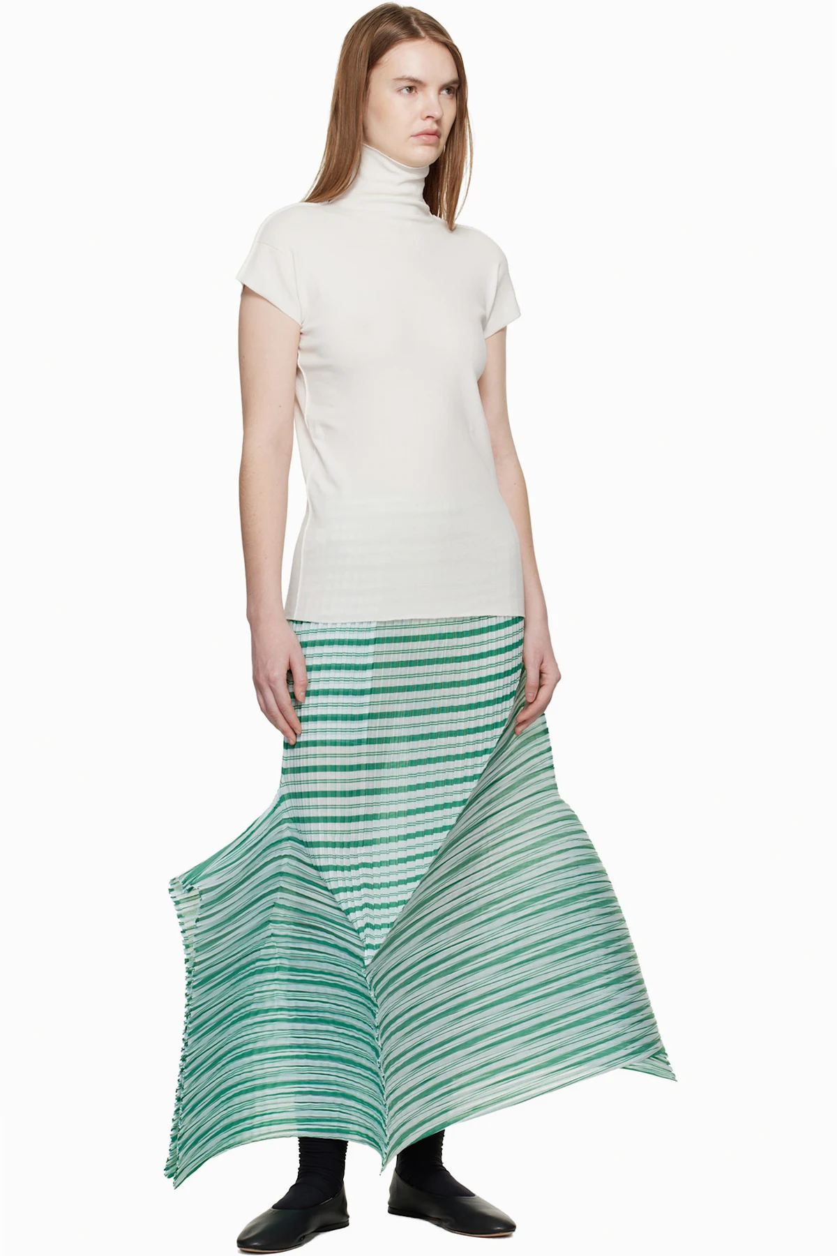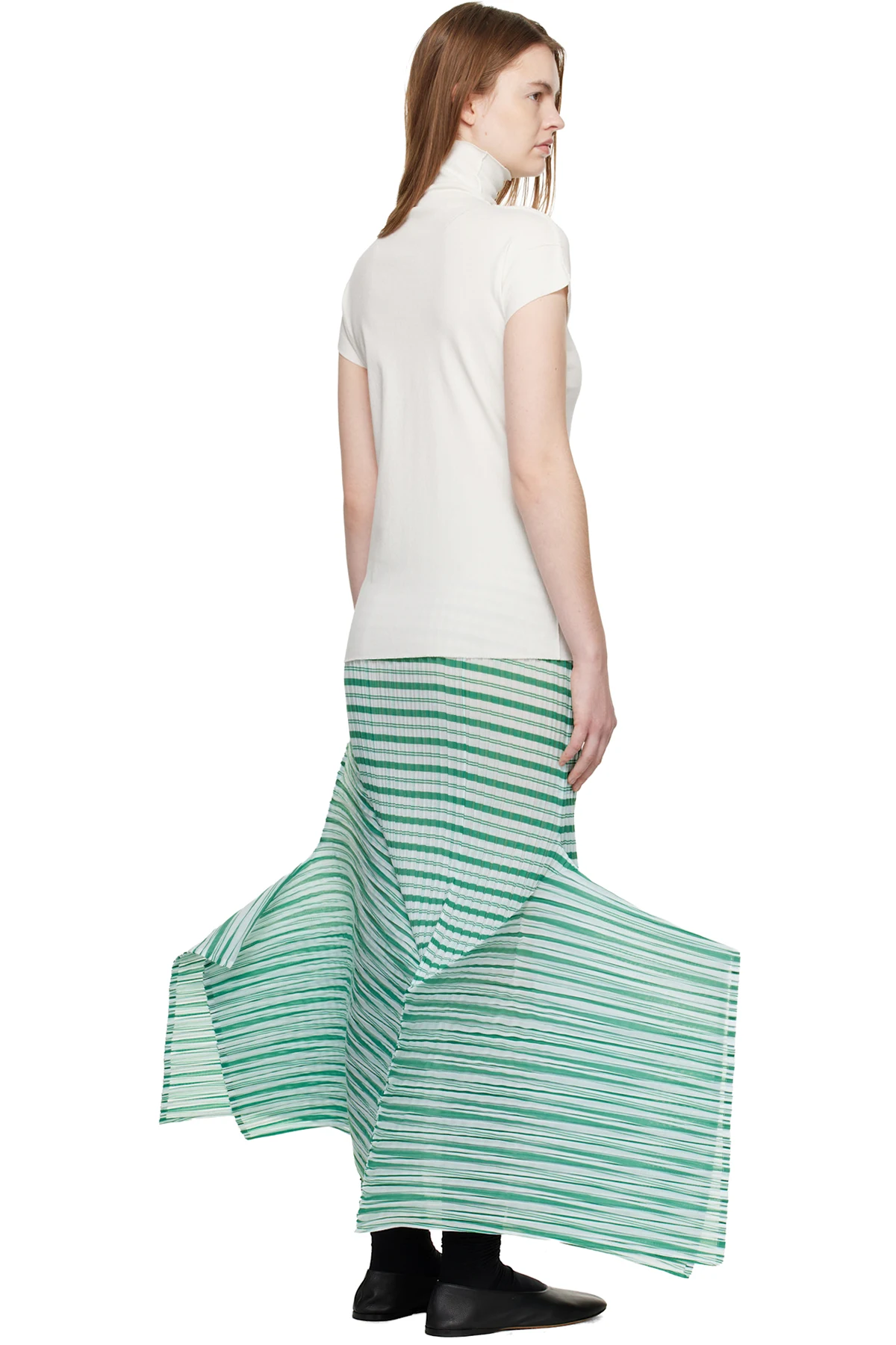 Issey Miyake Green Generic Stripes Machine Pleats Midi Skirt
