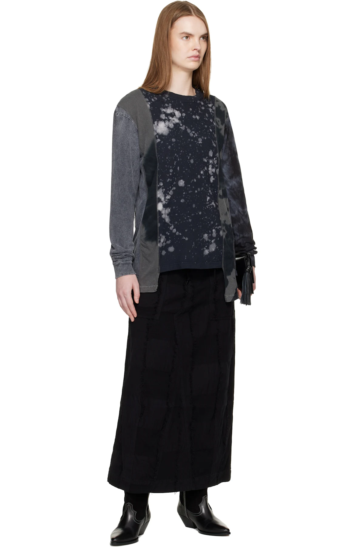 Cotton ripstop, canvas, and twill midi skirt.