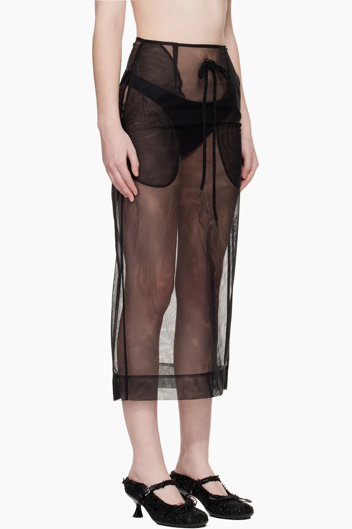 Sheer nylon tulle midi skirt.