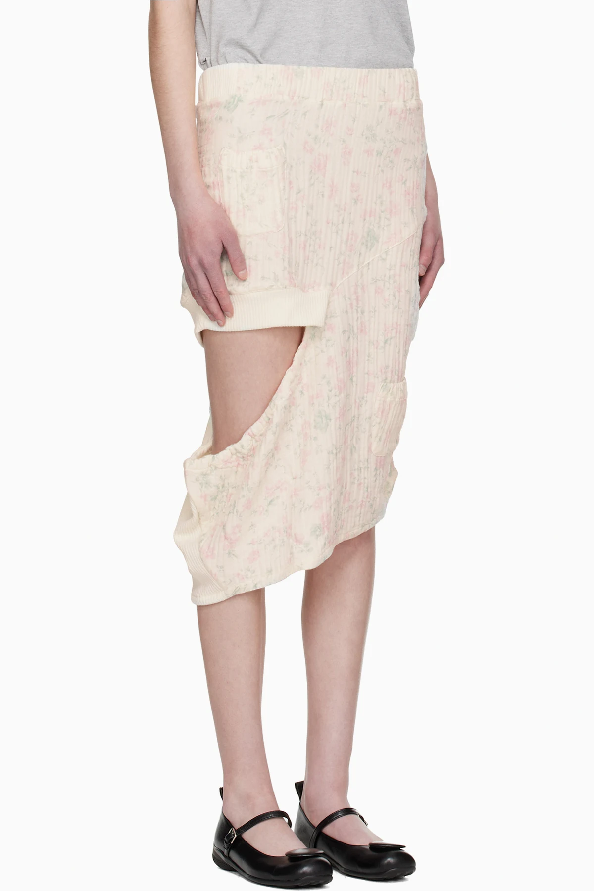 OPEN YY Off-White Floral Blankie Midi Skirt