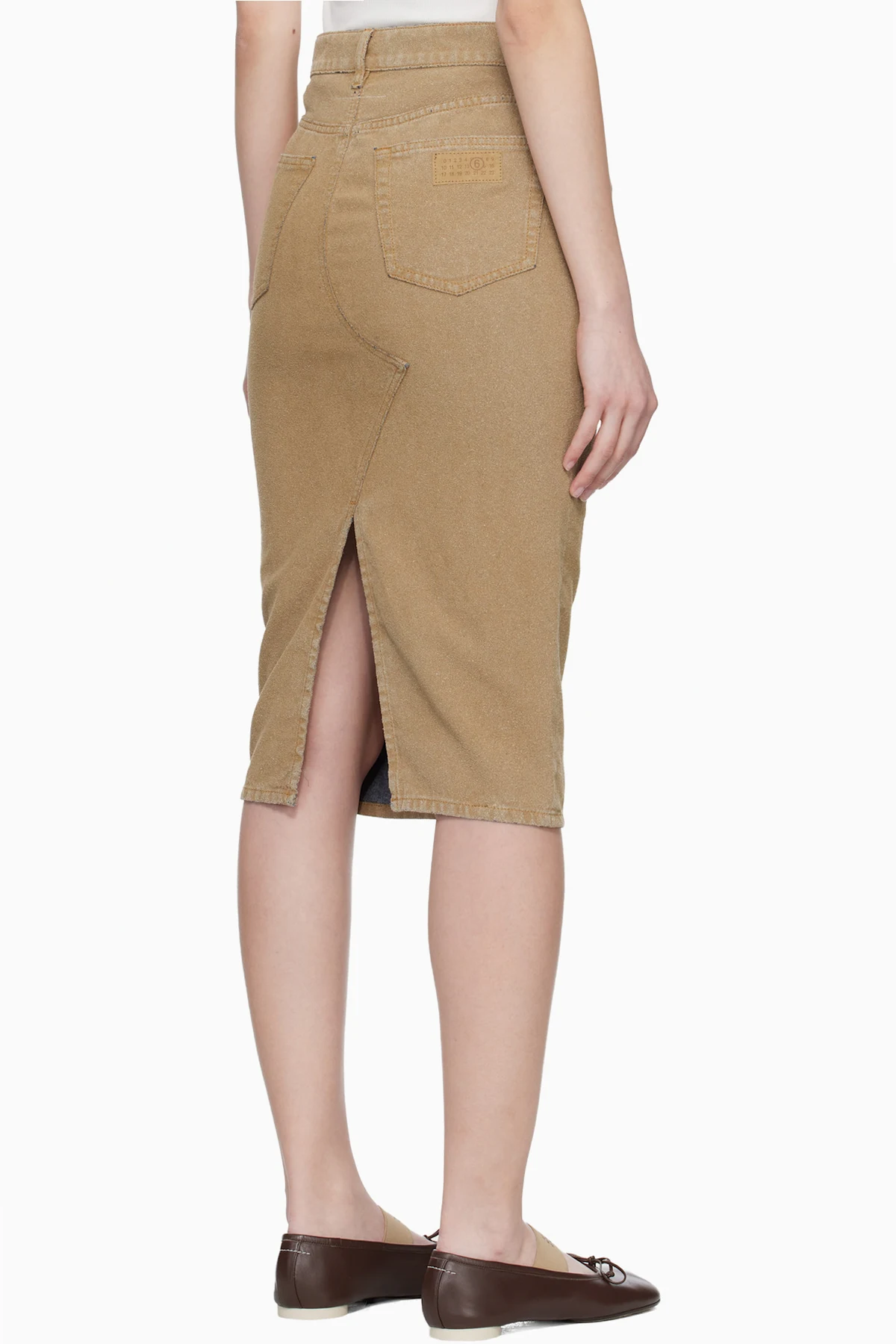 MM6 Maison Margiela Beige Coated Denim Midi Skirt