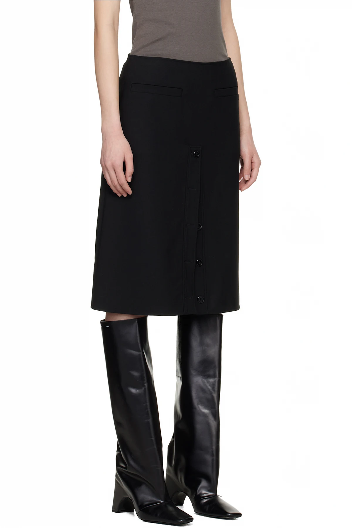 Courrèges Black Buttoned Midi Skirt