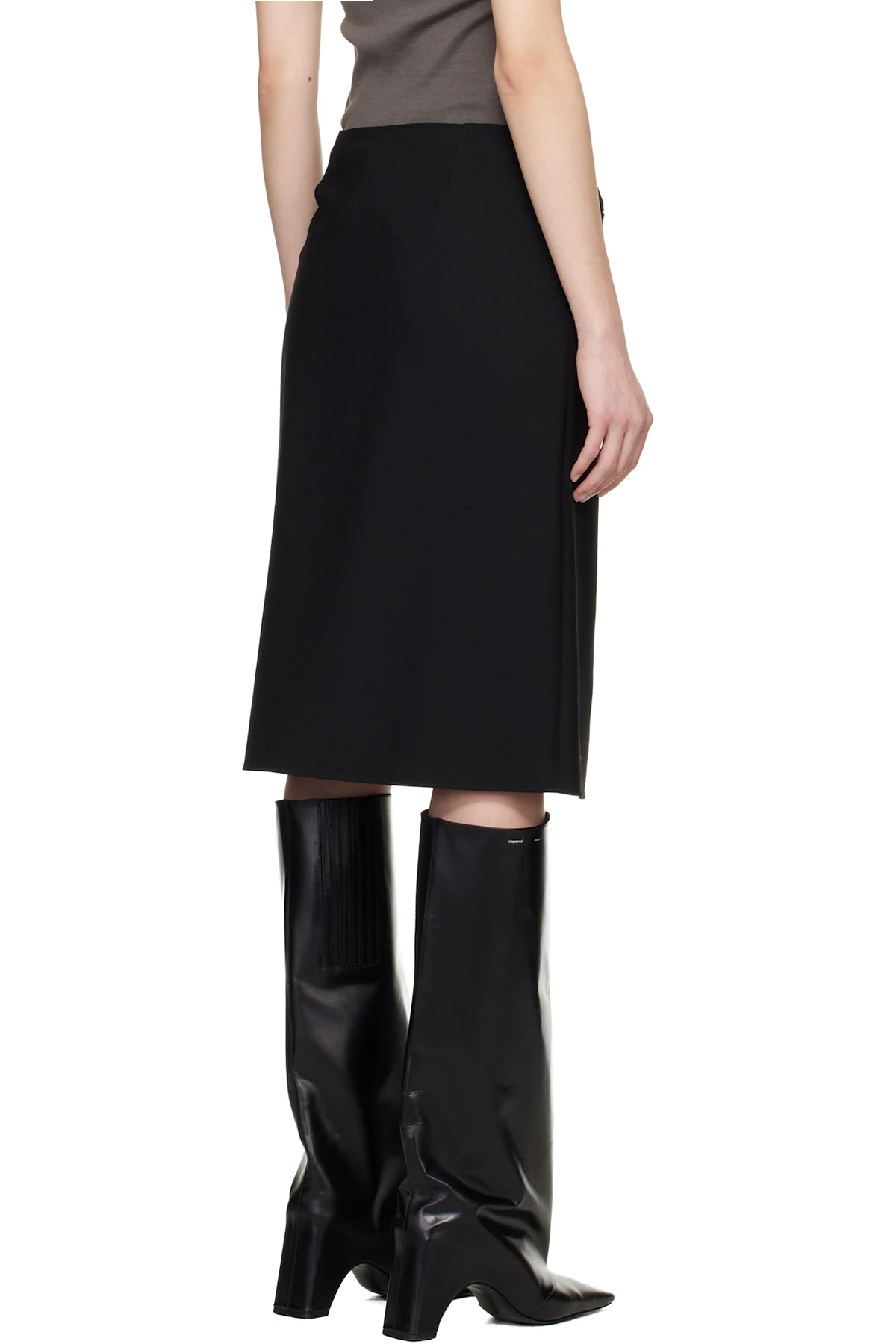 Plain-woven stretch wool-blend midi skirt.