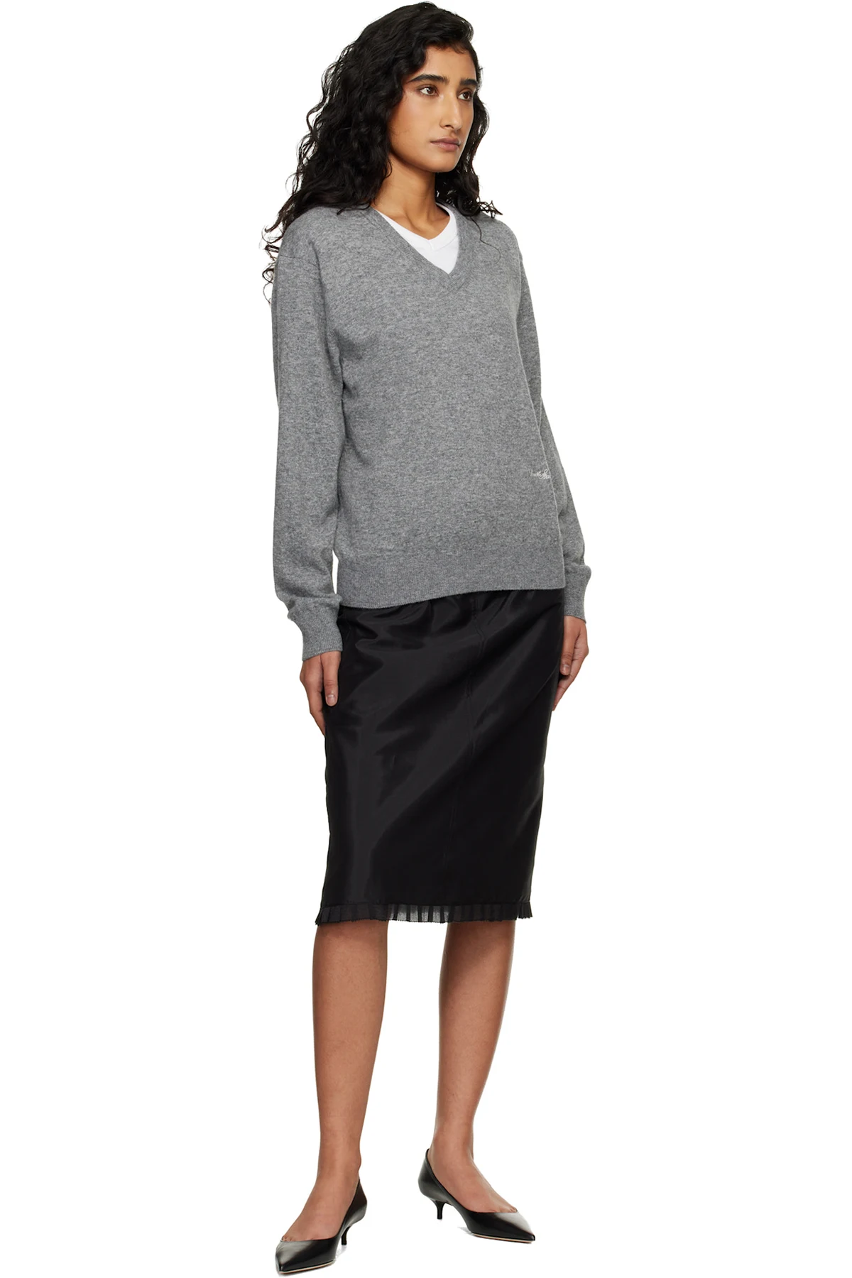 Satin midi skirt.