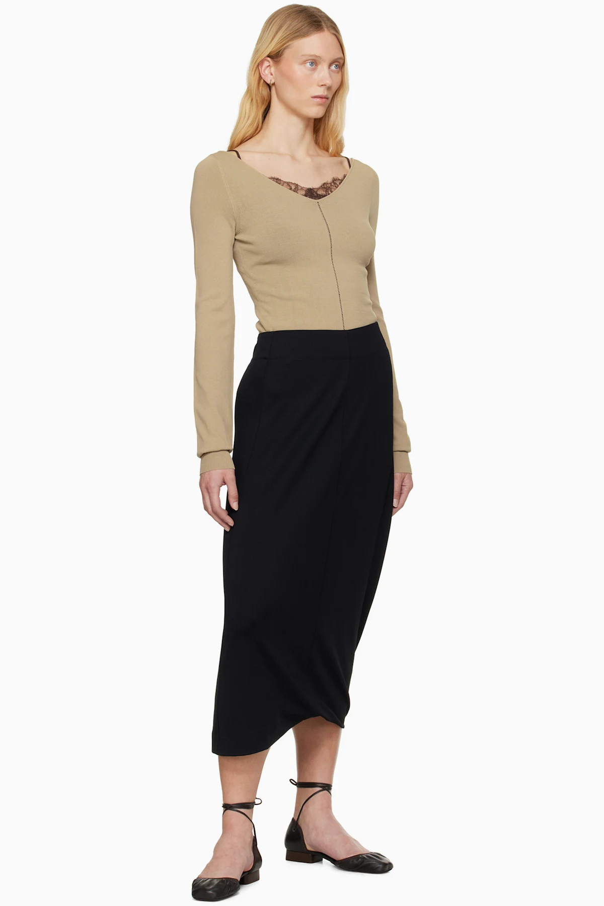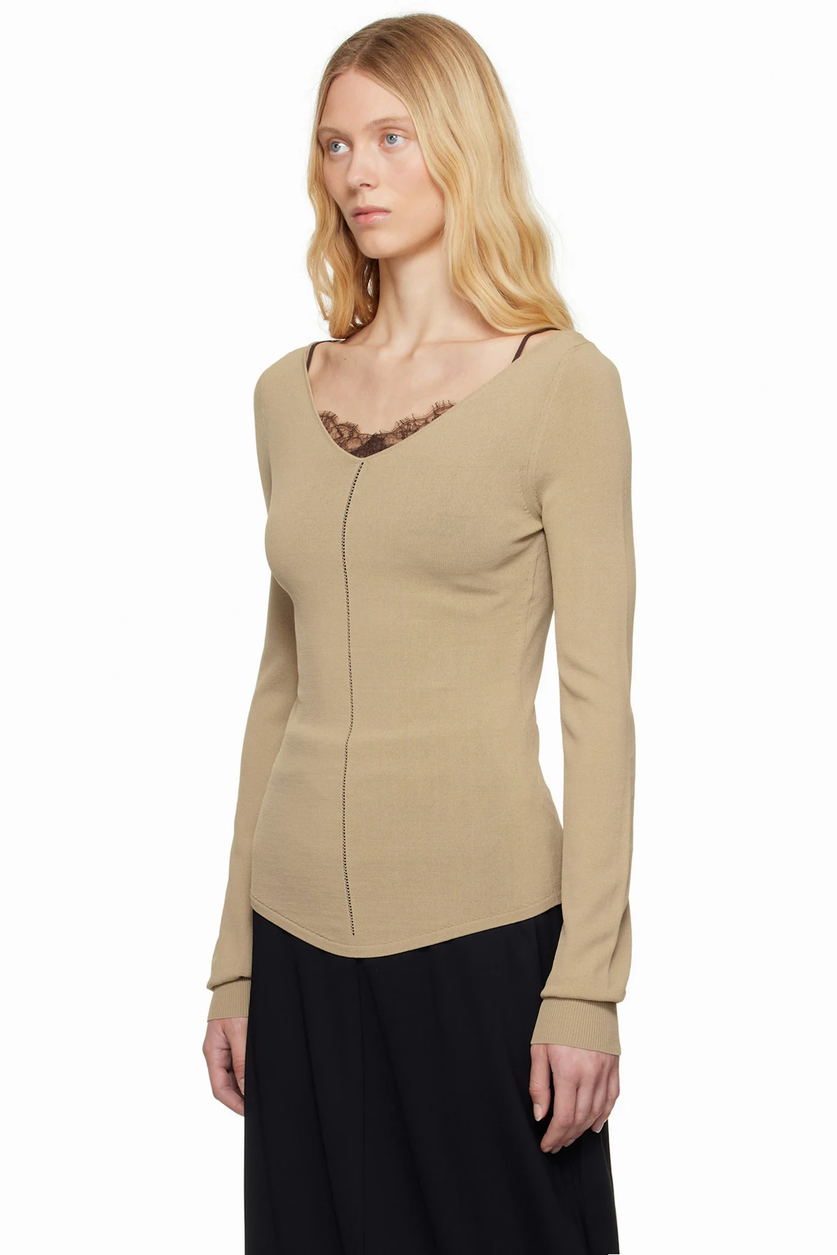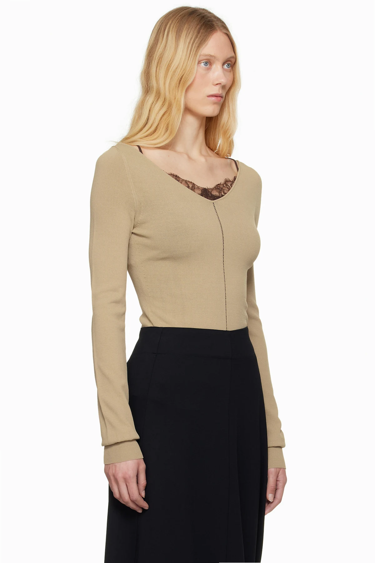 Lemaire Beige Wide V-Neck Top