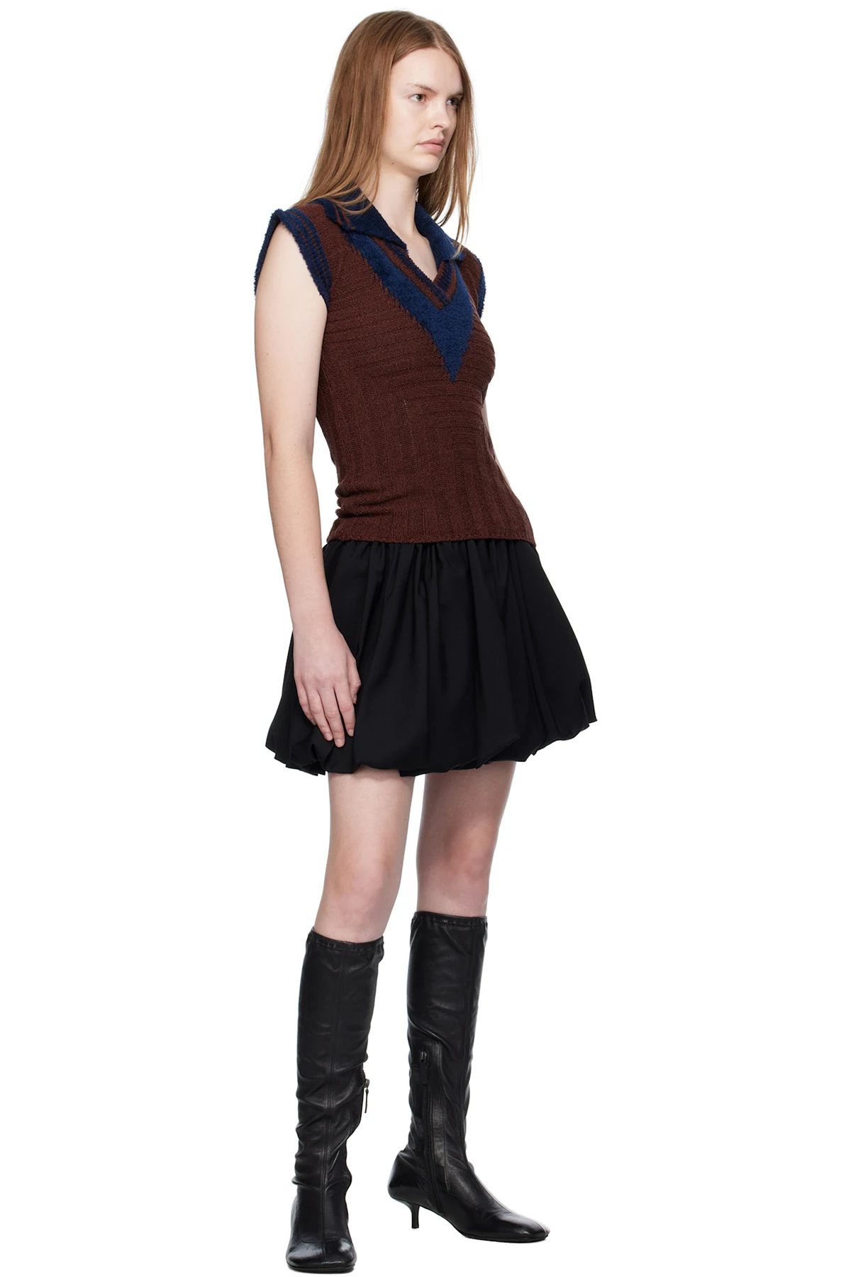 Kiko Kostadinov Navy & Brown Quimby Sleeveless Polo