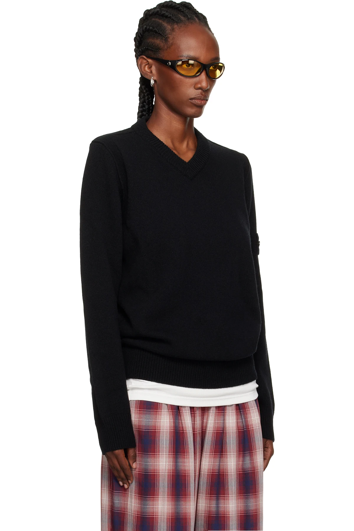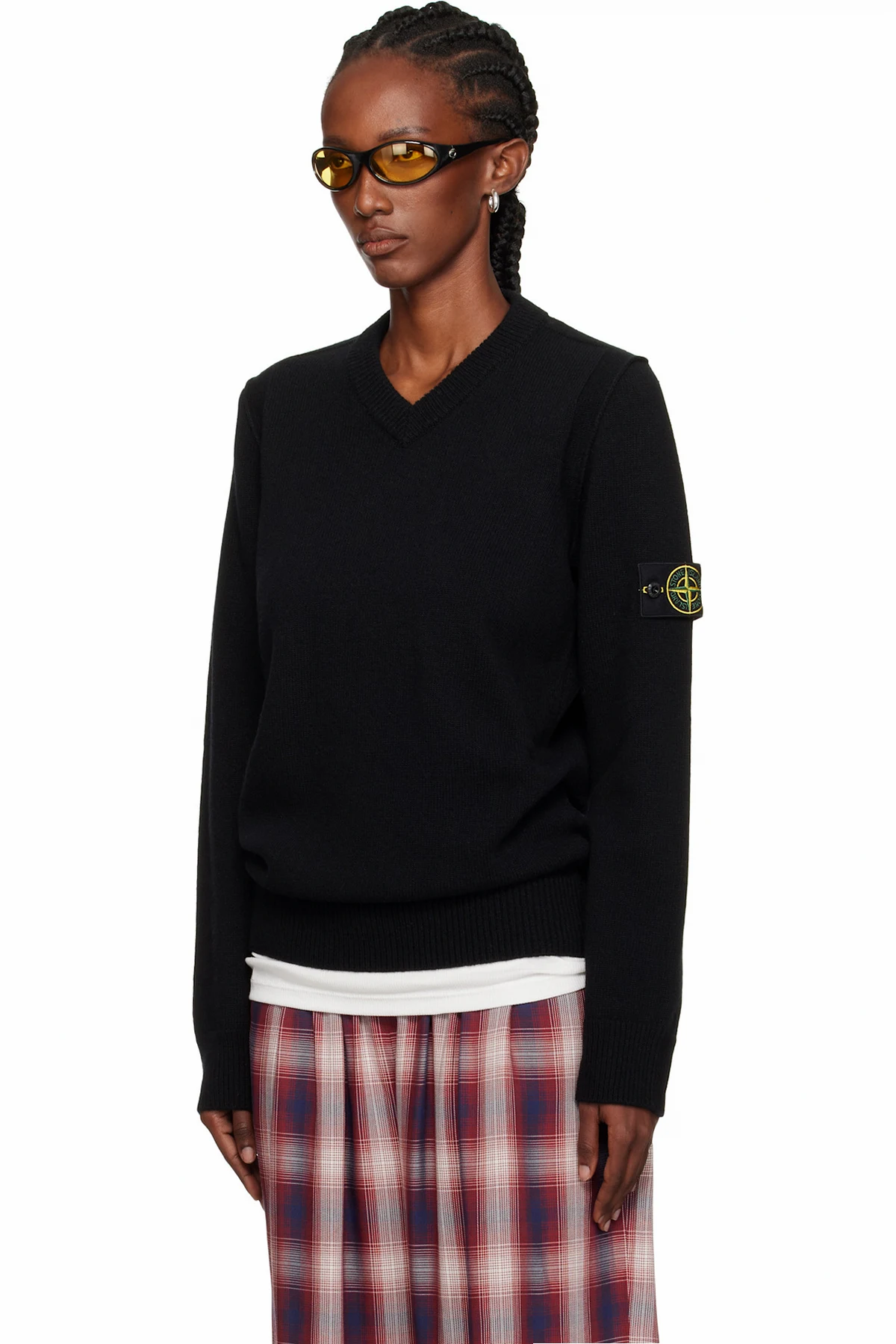 Stone Island Black 5100033 V-Neck Jersey Lambswool Sweater