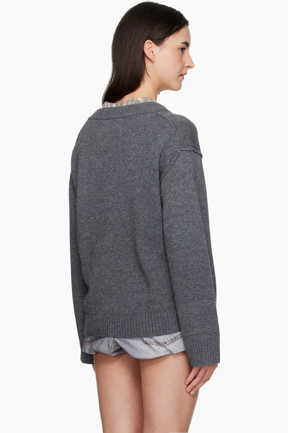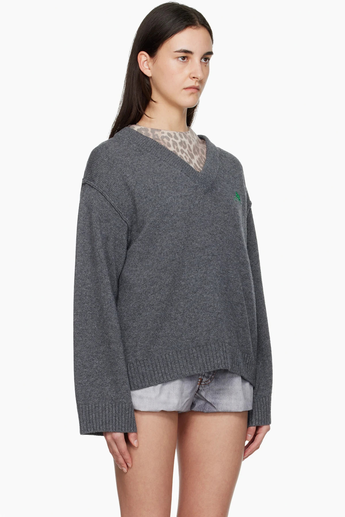 Ganni Gray Wool Mix V-neck Sweater