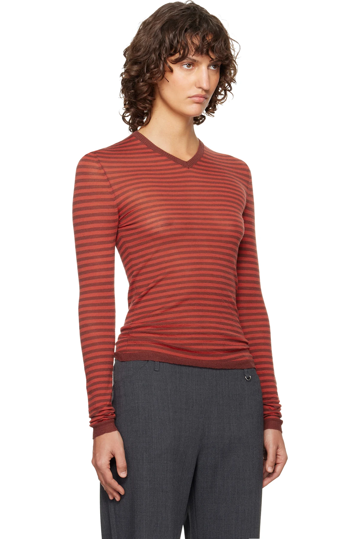 Semi-sheer knit extrafine merino wool sweater.