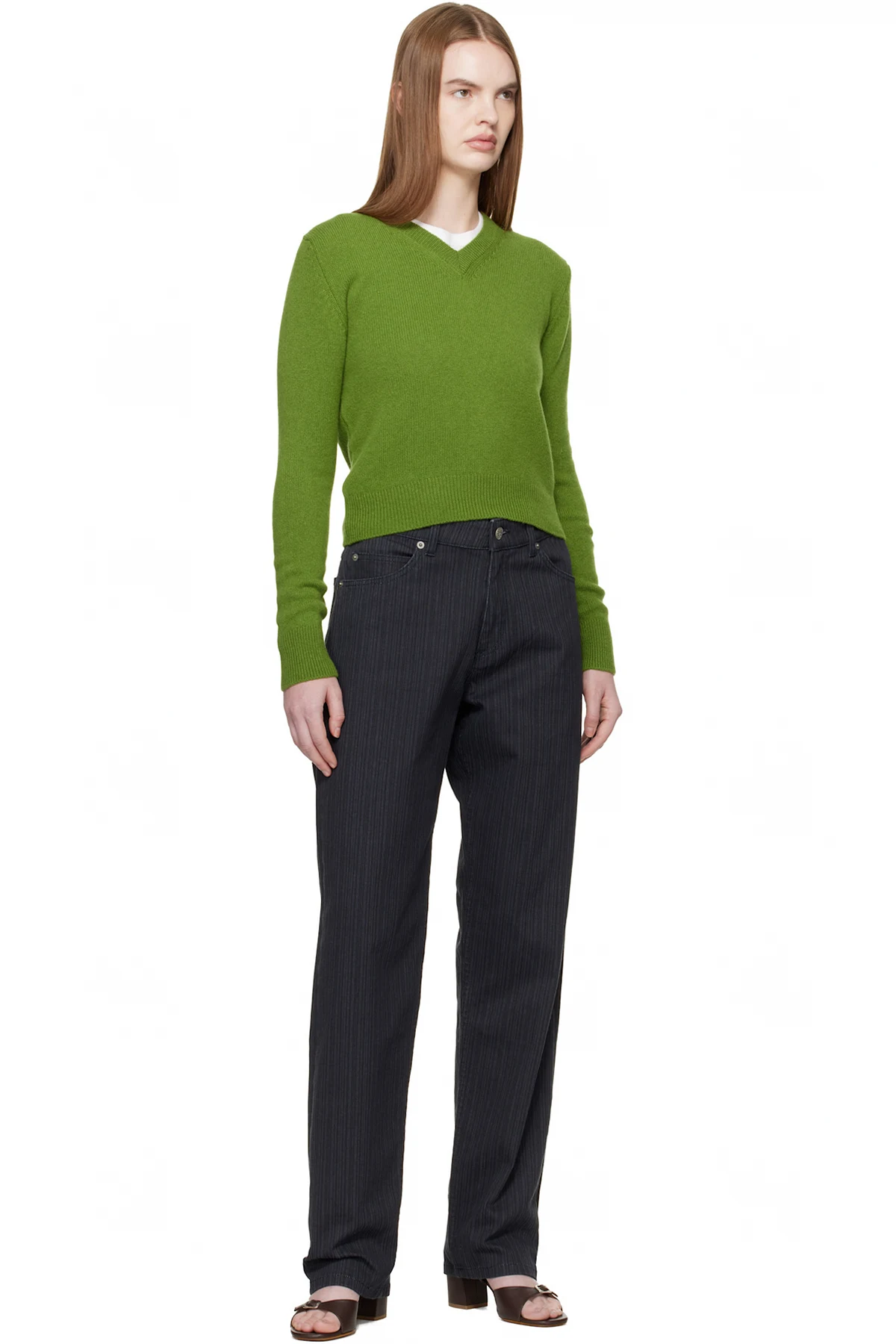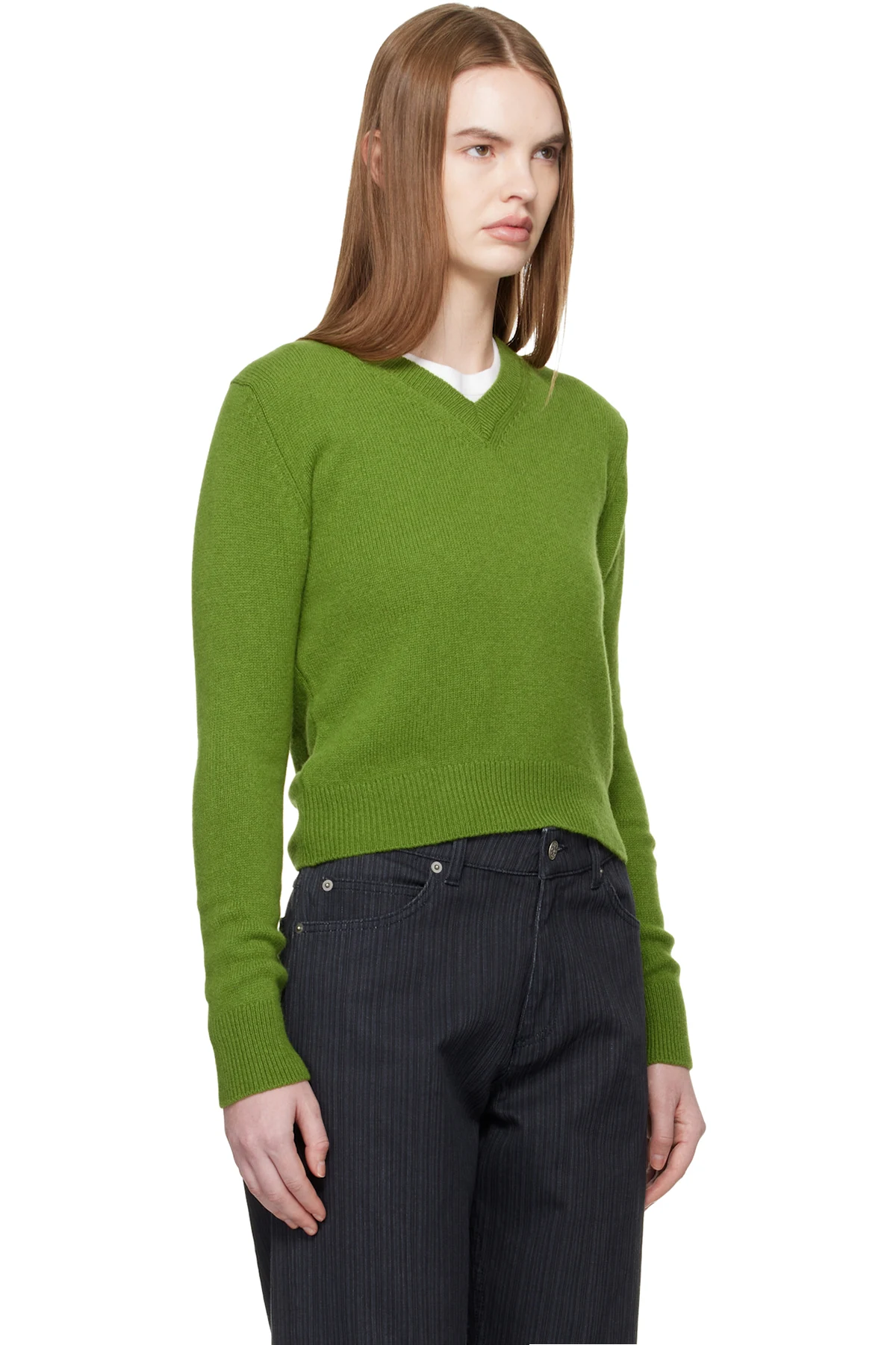 &Daughter Green Sligo Shrunken V-Neck Sweater