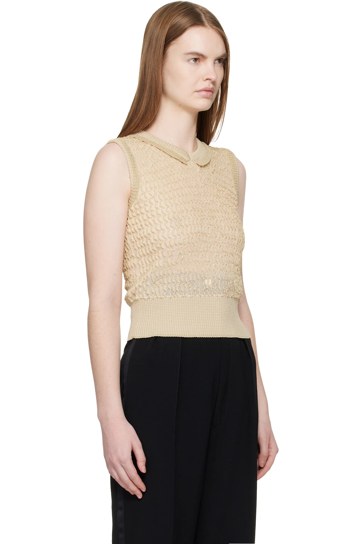 Knit viscose-blend polo vest.