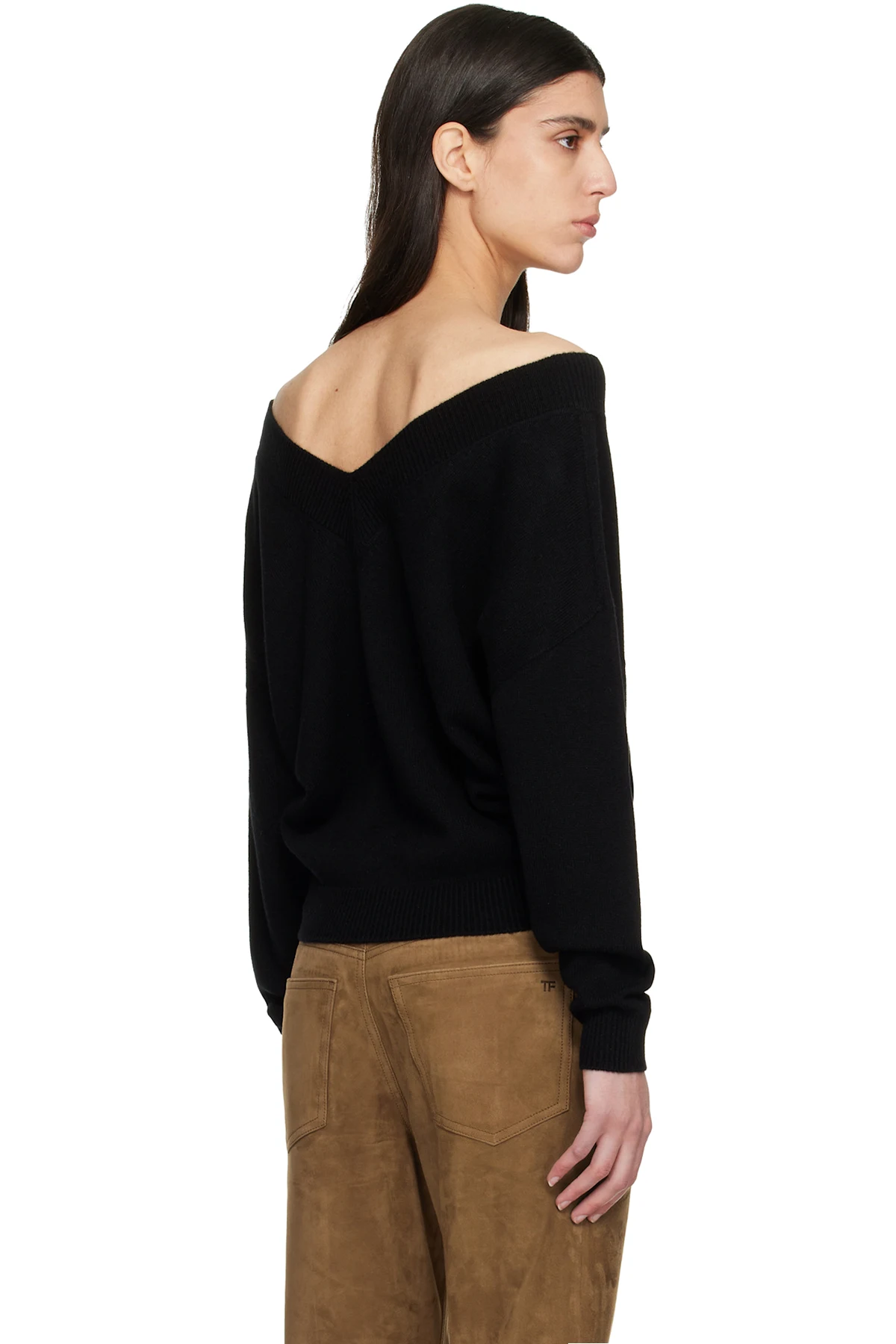 Tom Ford Black Cashmere Off The Shoulder Knit Sweater