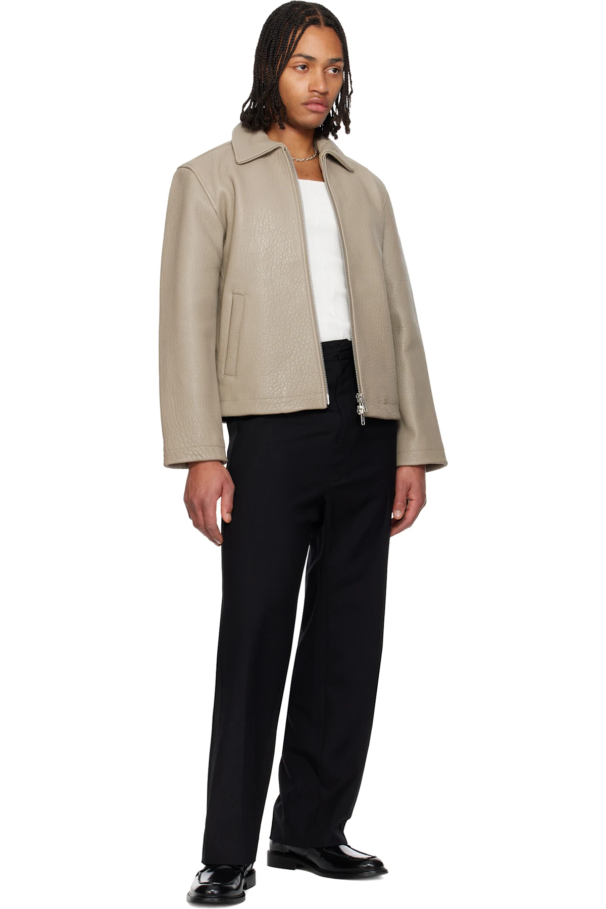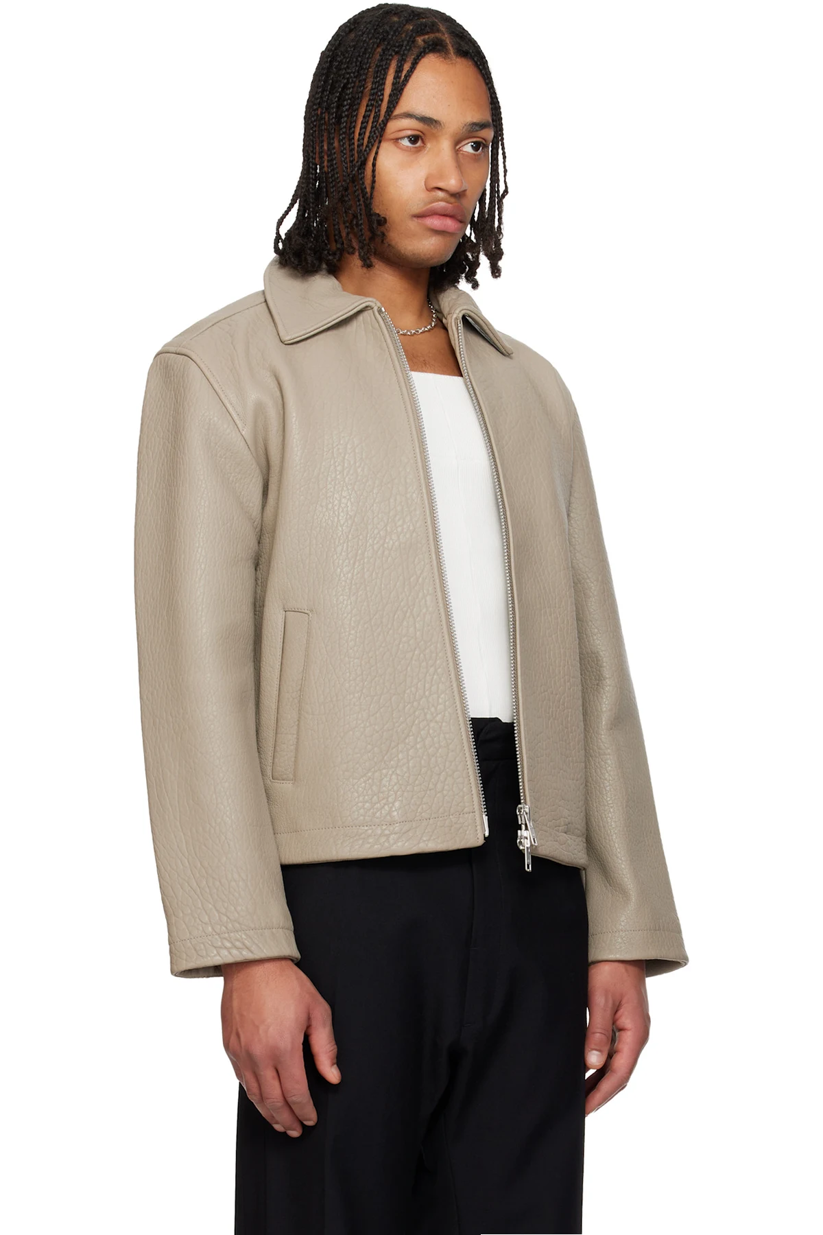 Grained lambskin jacket.