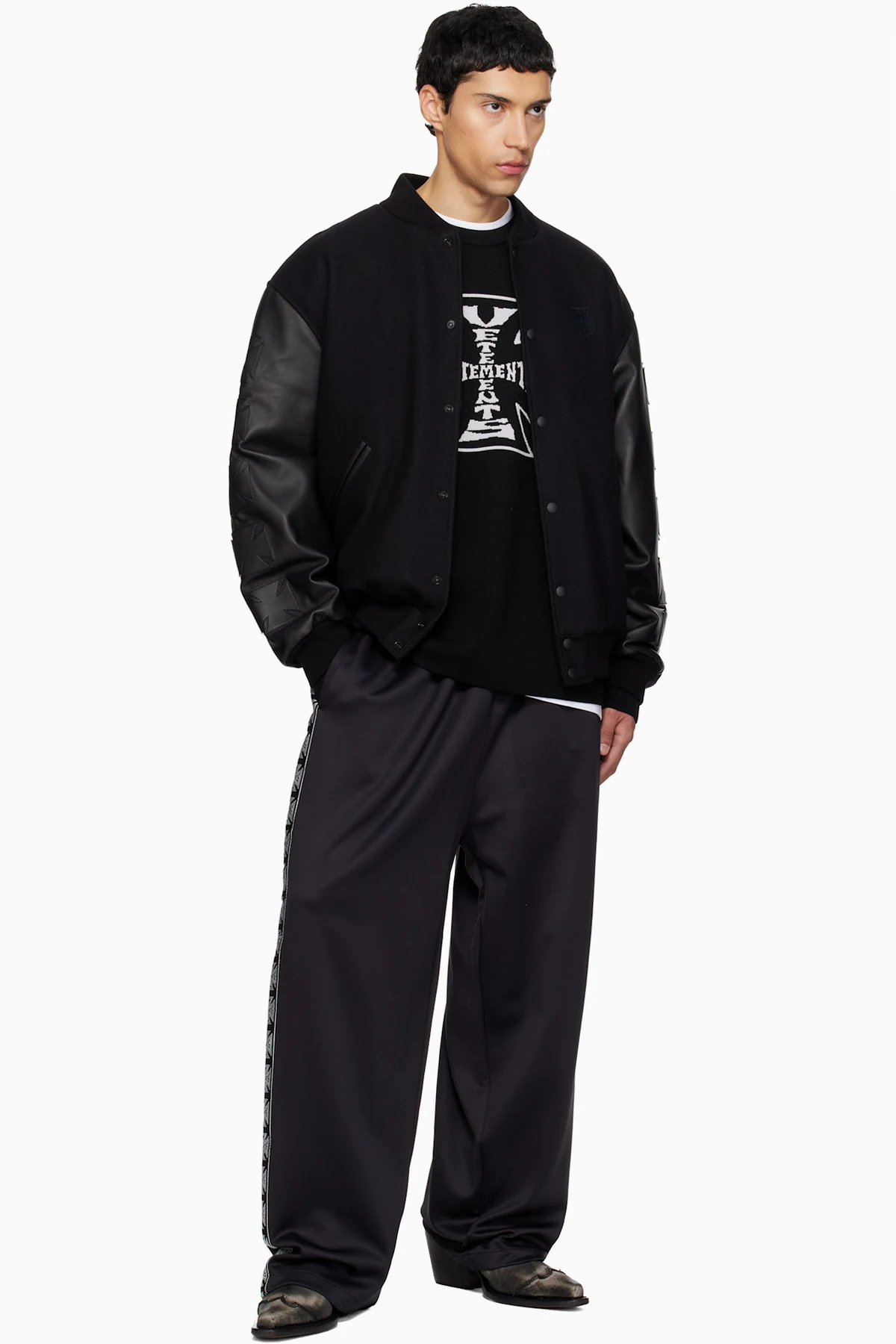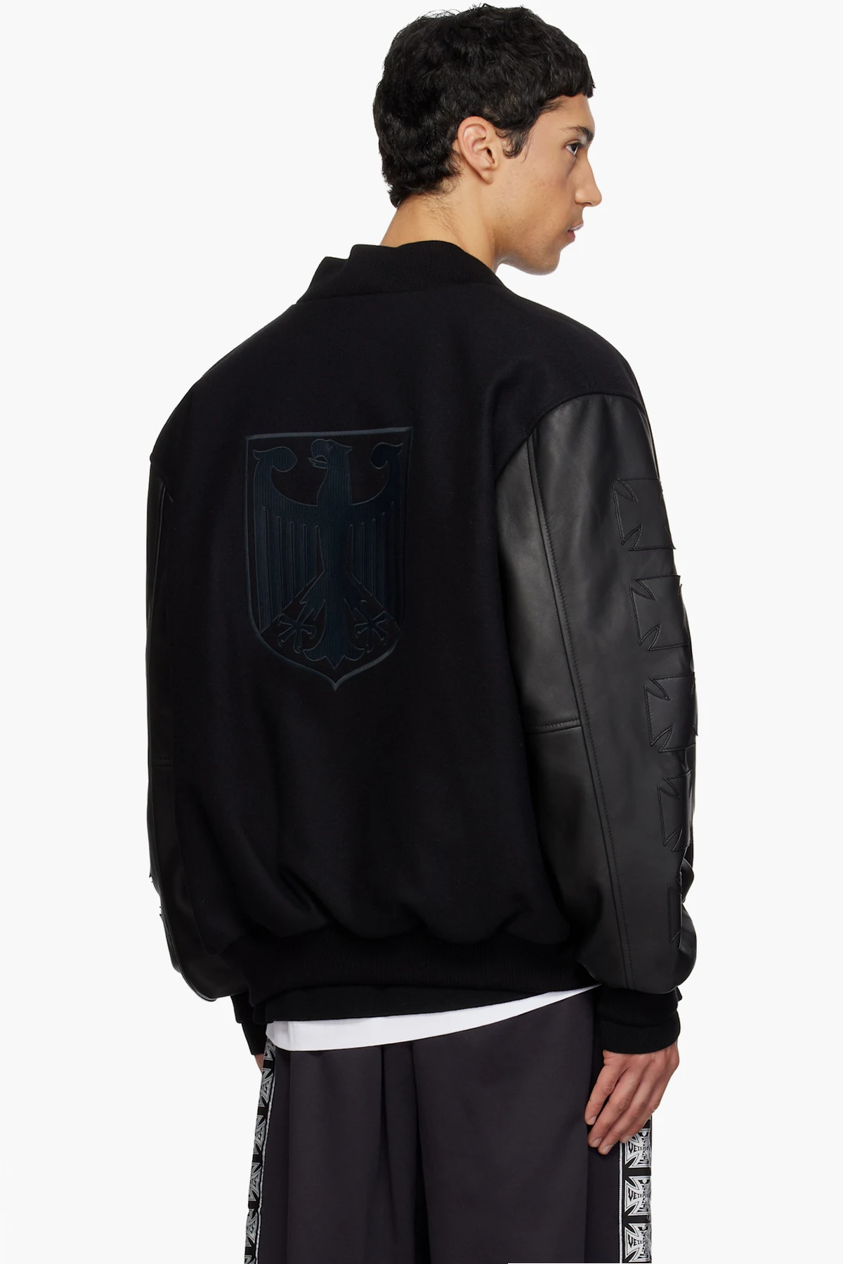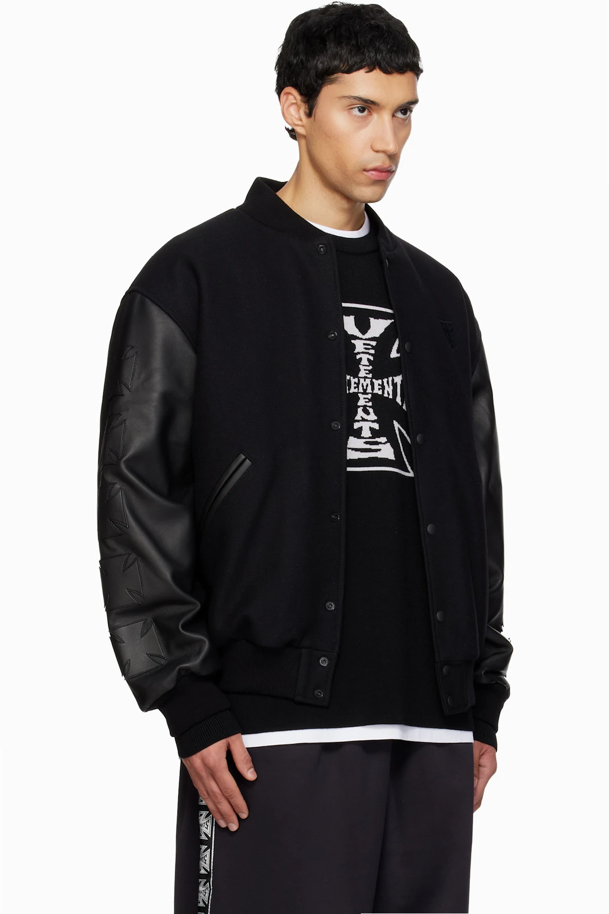 VETEMENTS Black Biker Cross Embroidered Varsity Bomber Jacket