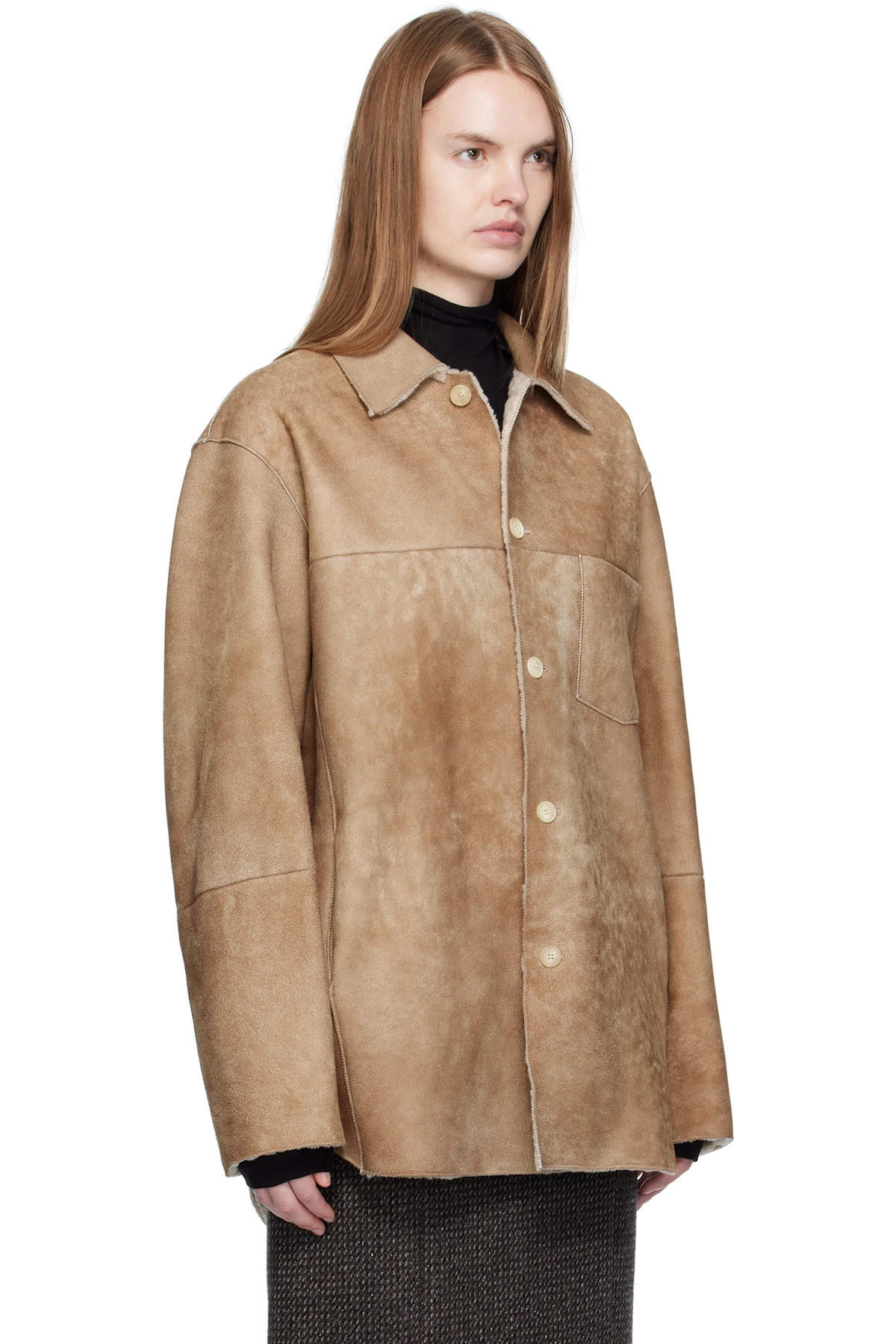 Auralee Beige Merino Mouton Shearling Shirt Jacket