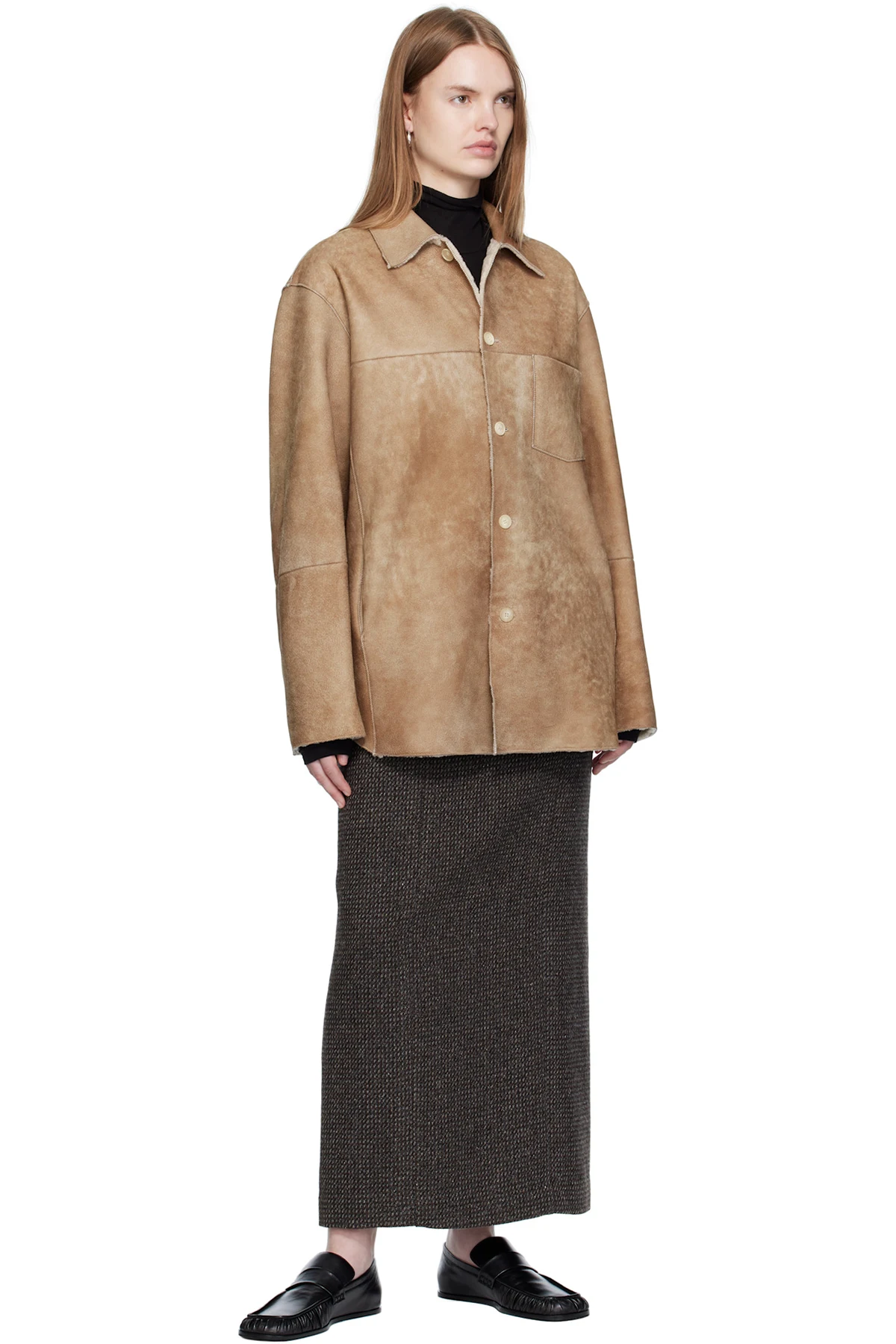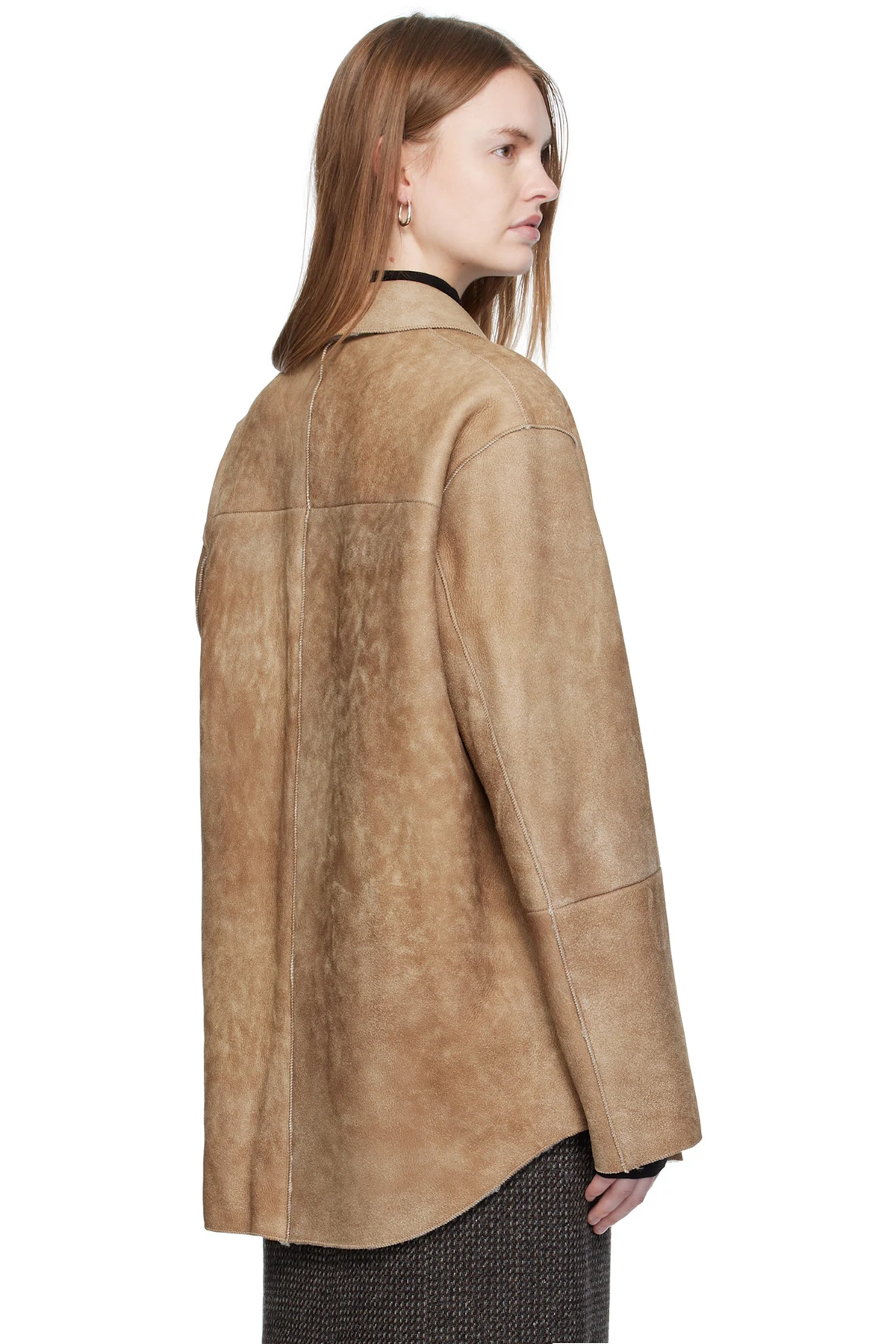 Paneled lambskin suede jacket.