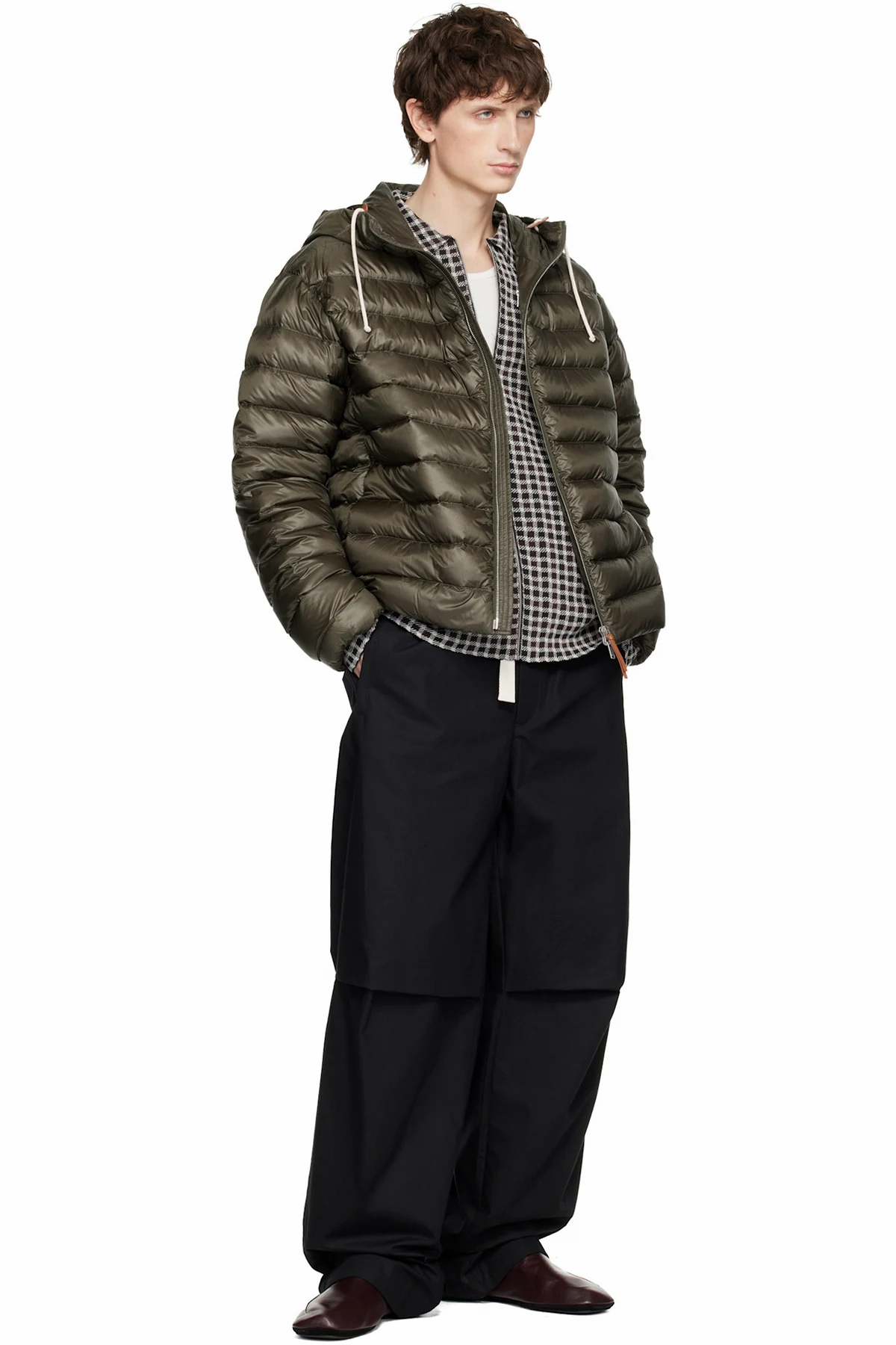 JIL SANDER Khaki Hooded Down Jacket