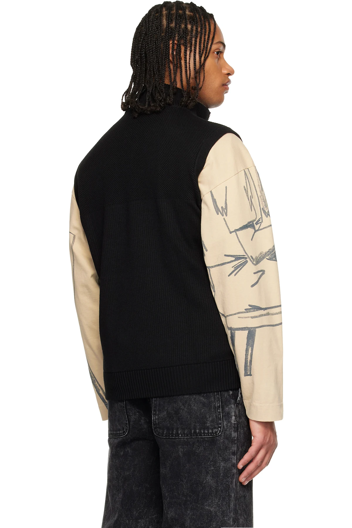 Down-filled and quilted nylon taffeta and knit wool vest.