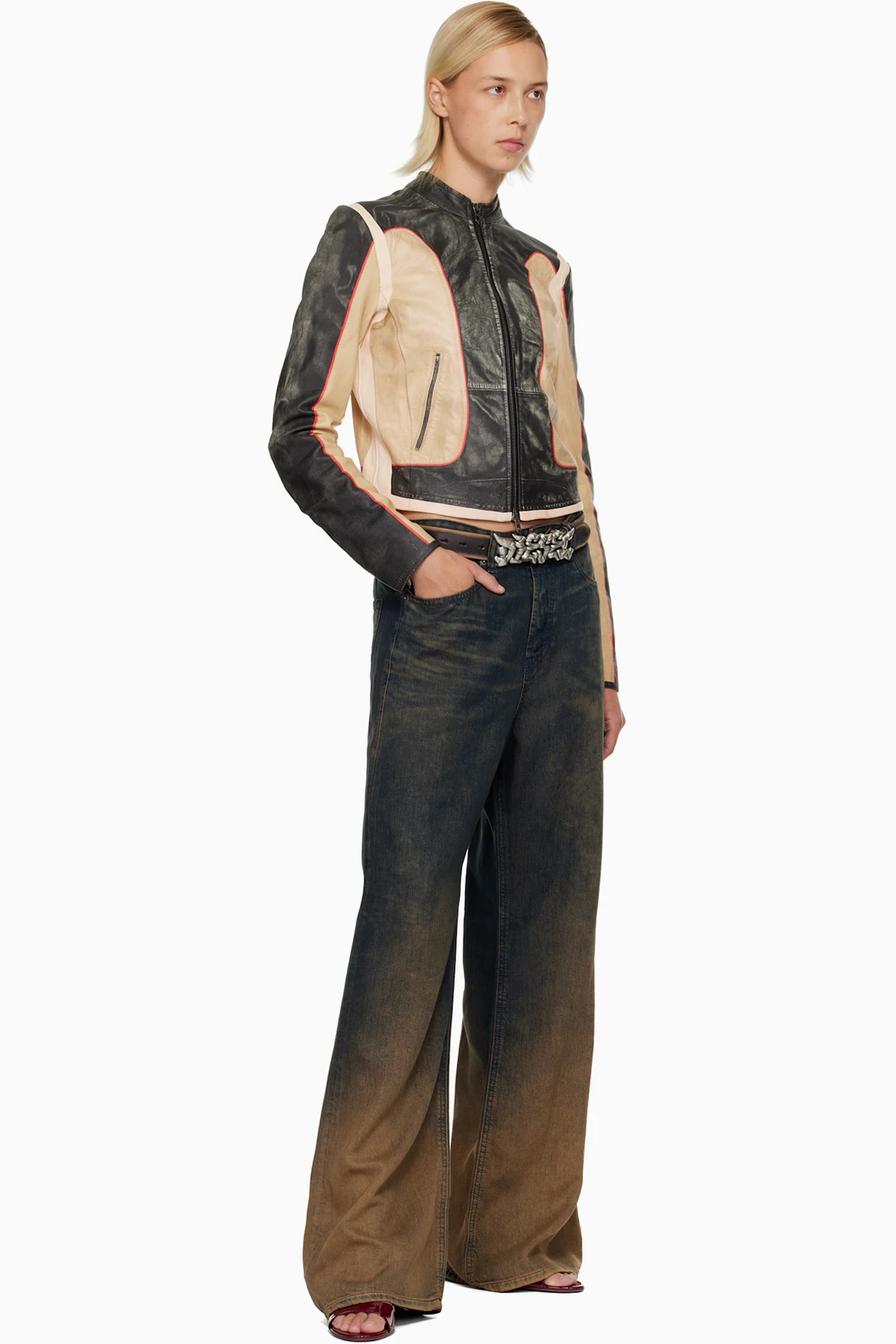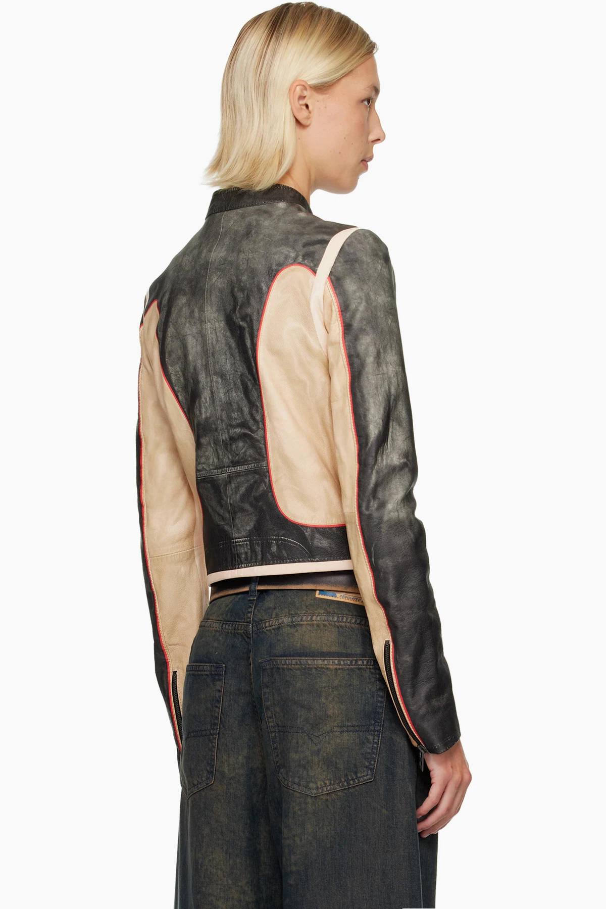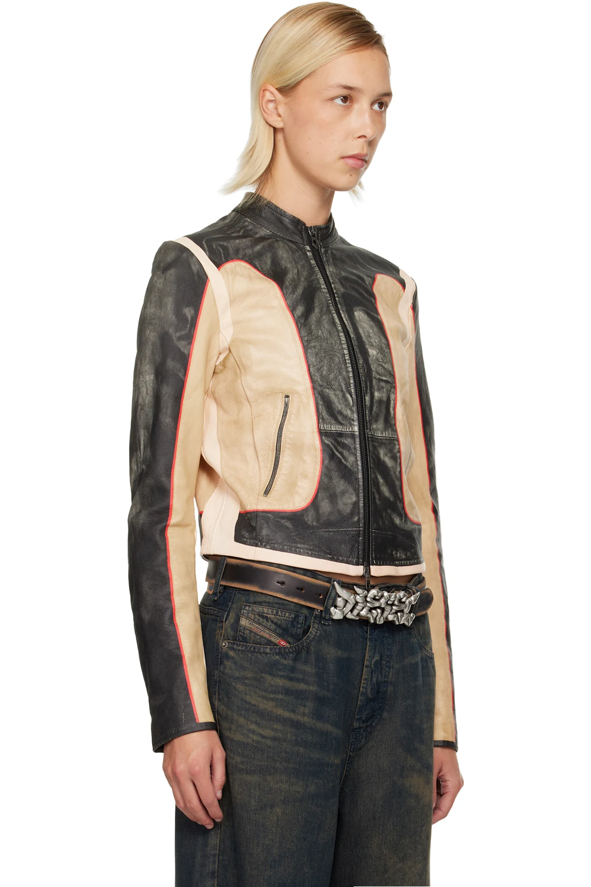 Diesel Black & Beige L-Oonie Leather Jacket