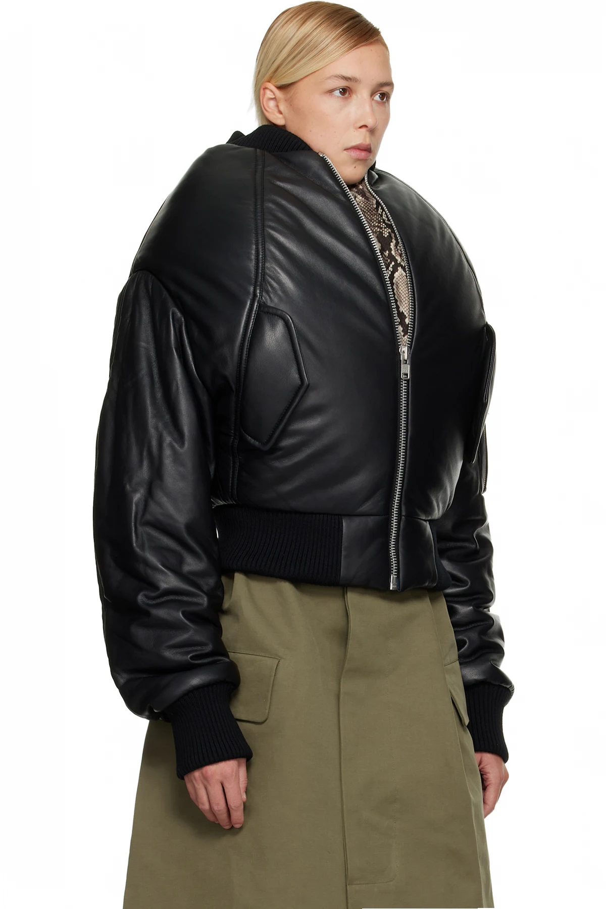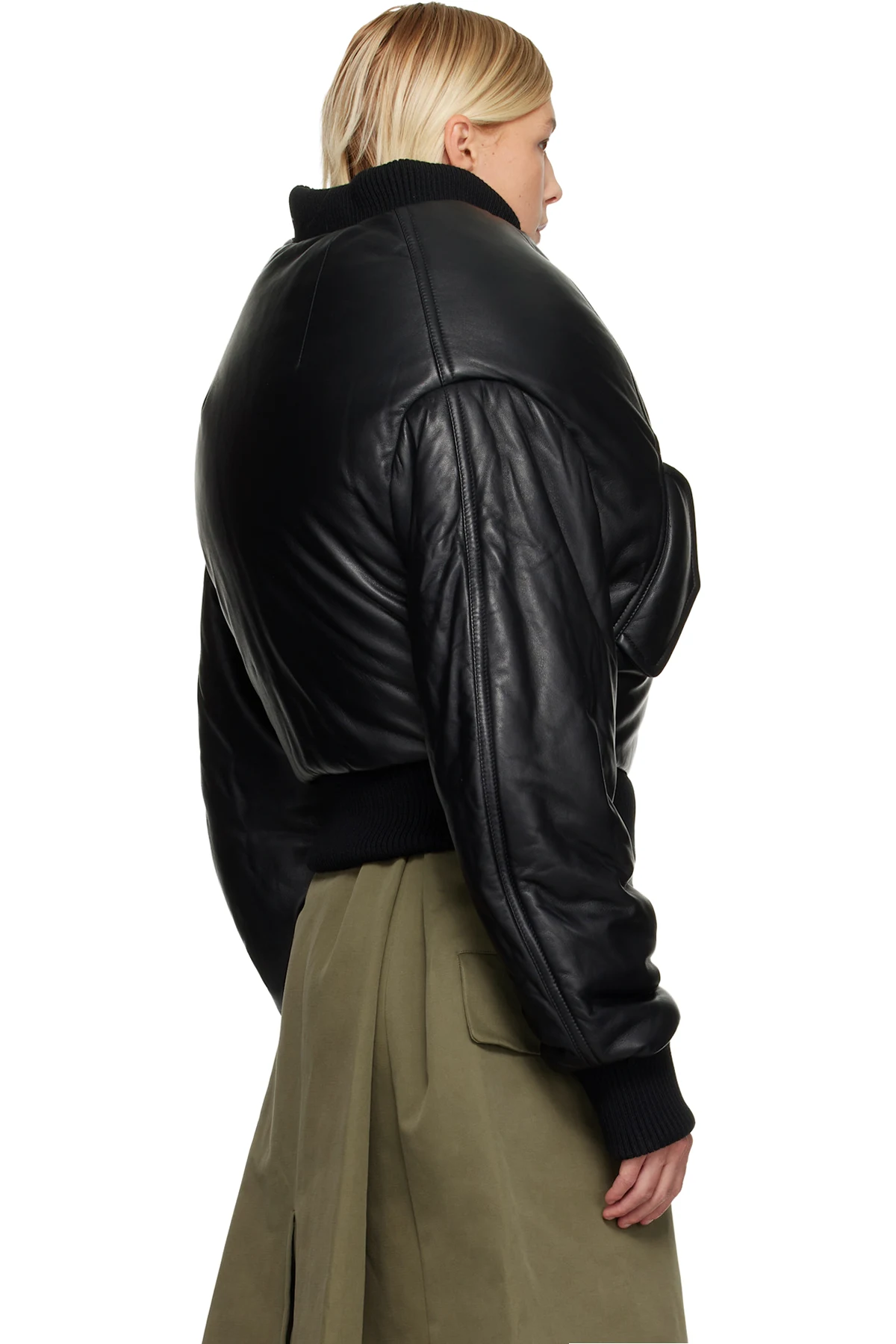 Duran Lantink Black 'Over The Shoulders' Leather Bomber Jacket