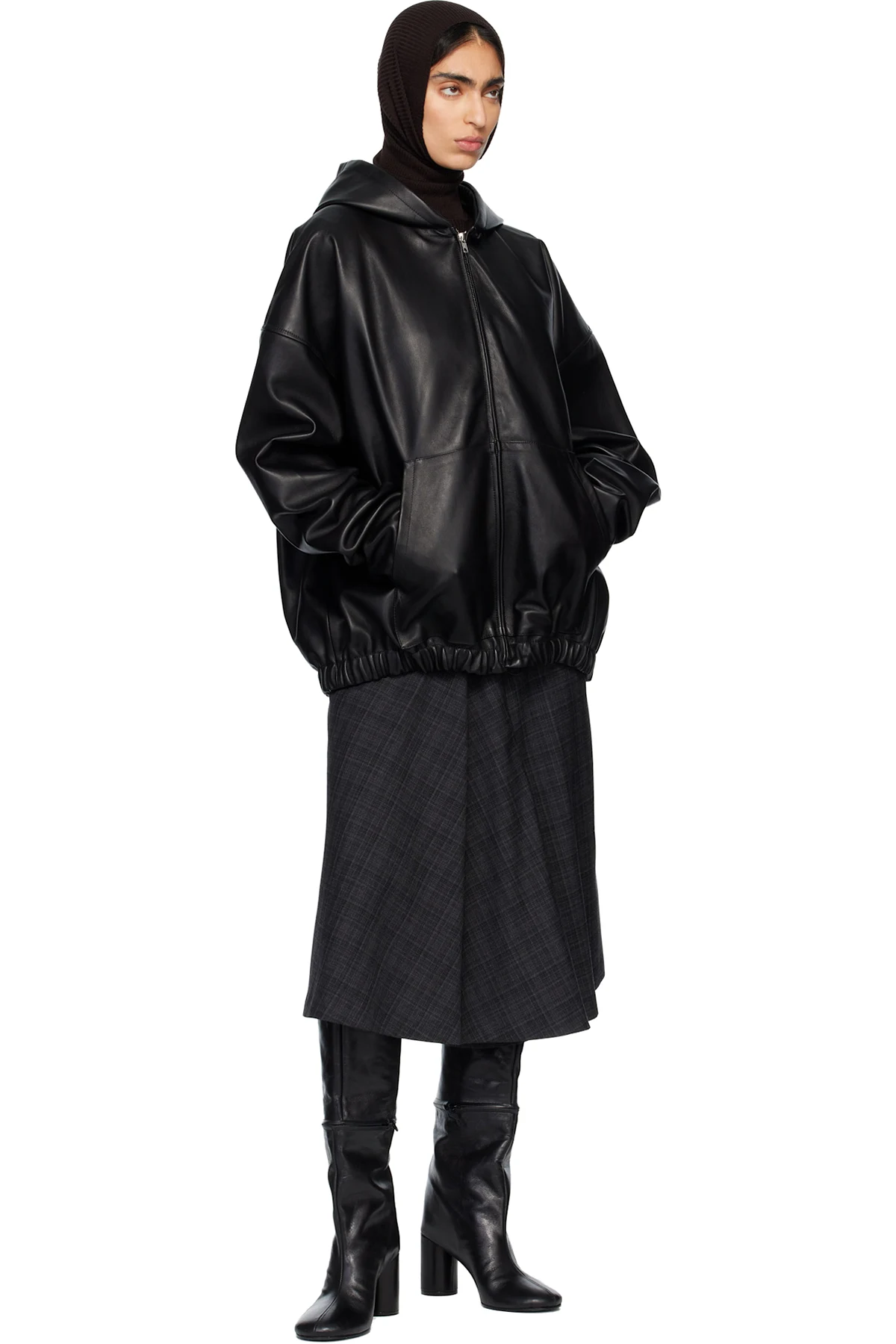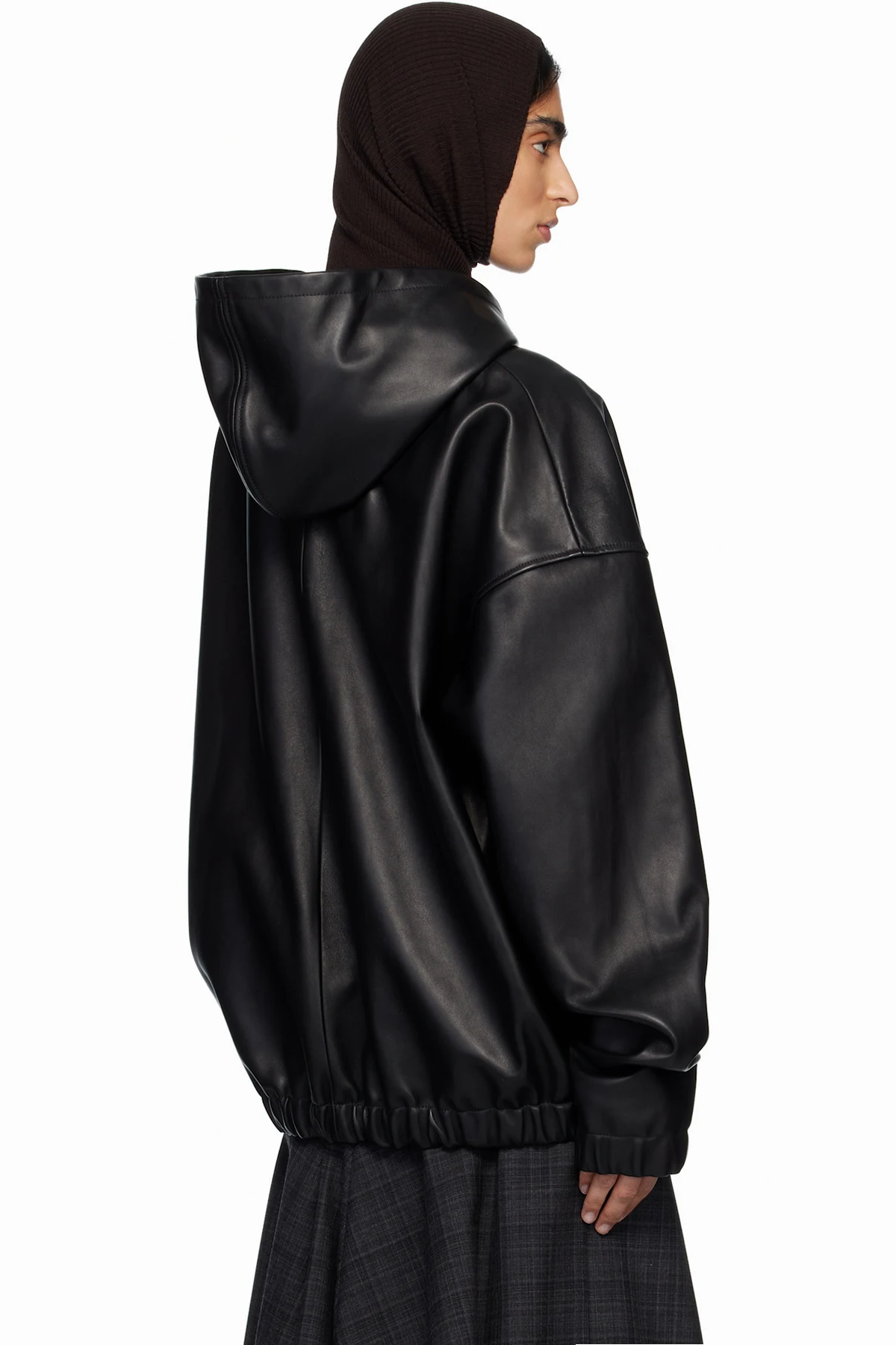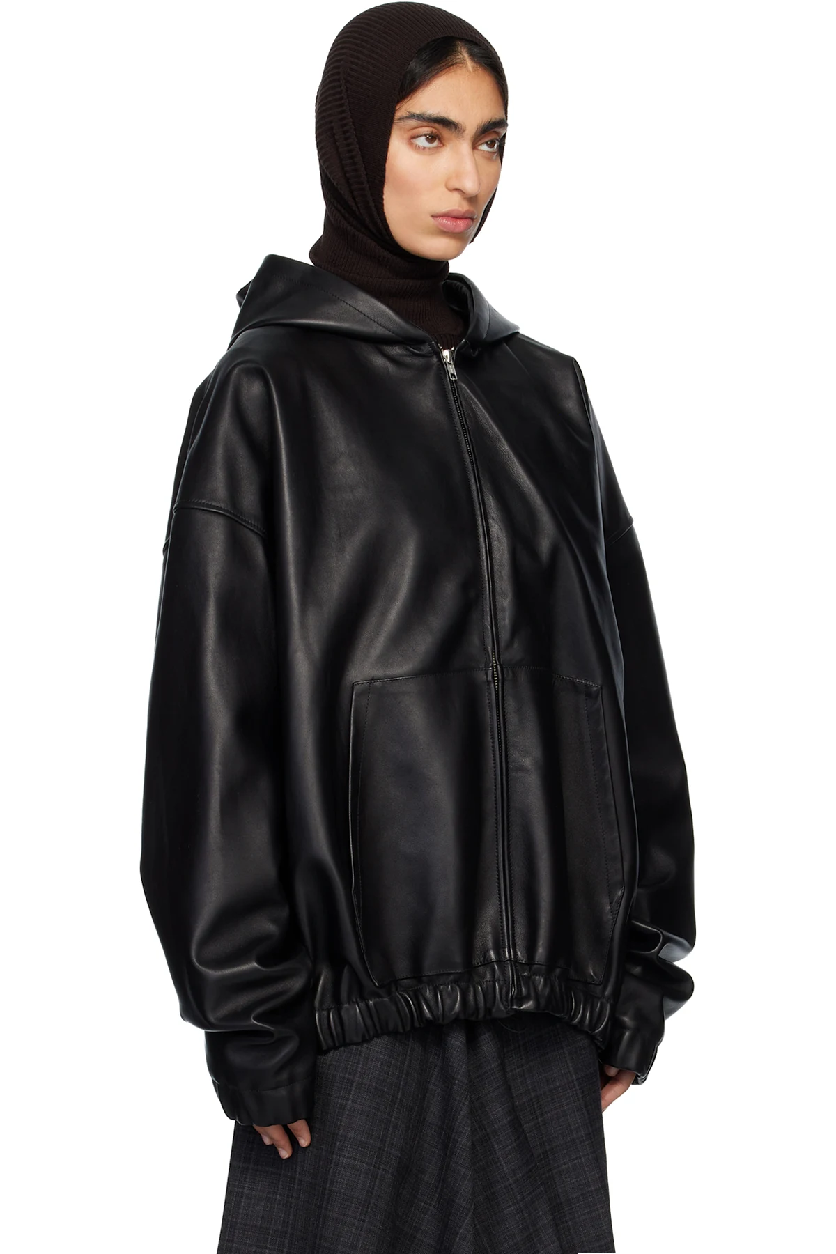 MARIE ADAM-LEENAERDT Black Leather Hoodie Jacket