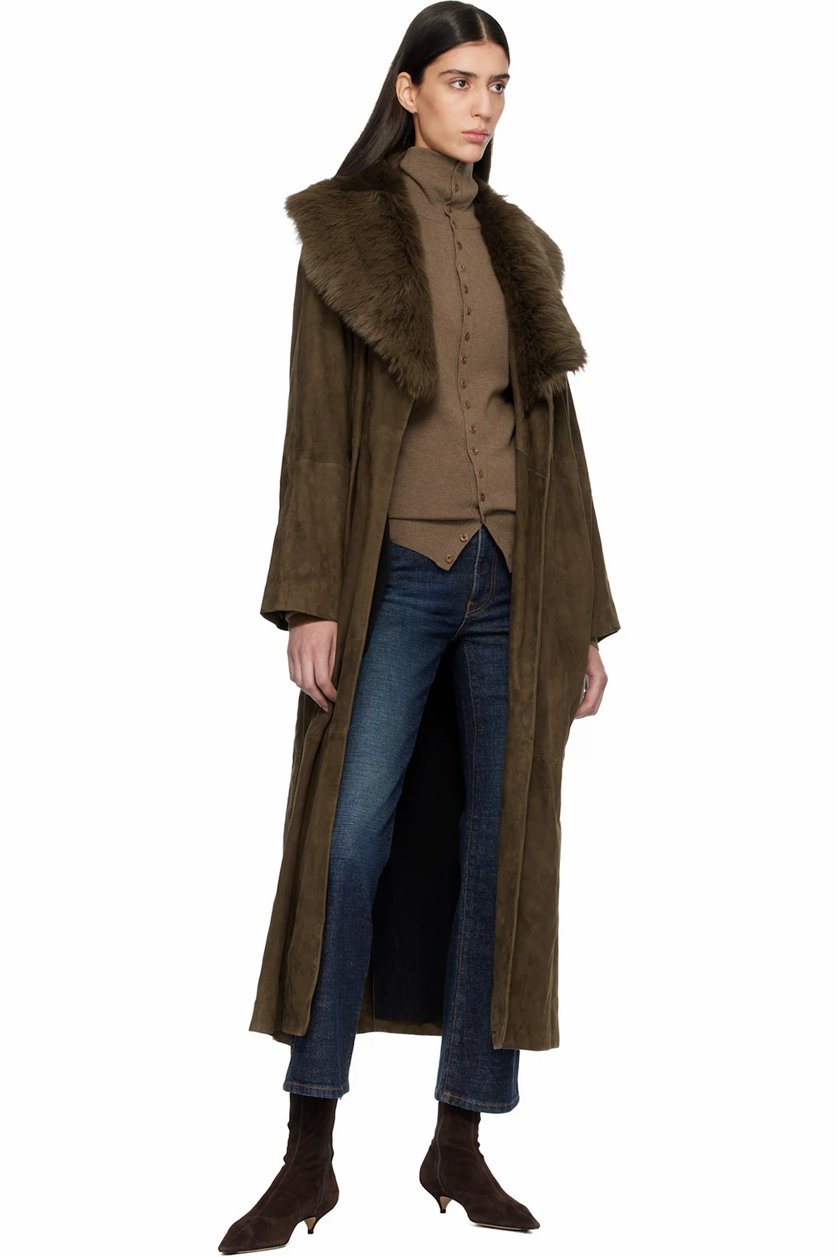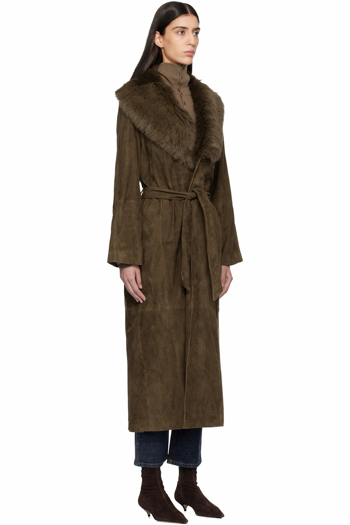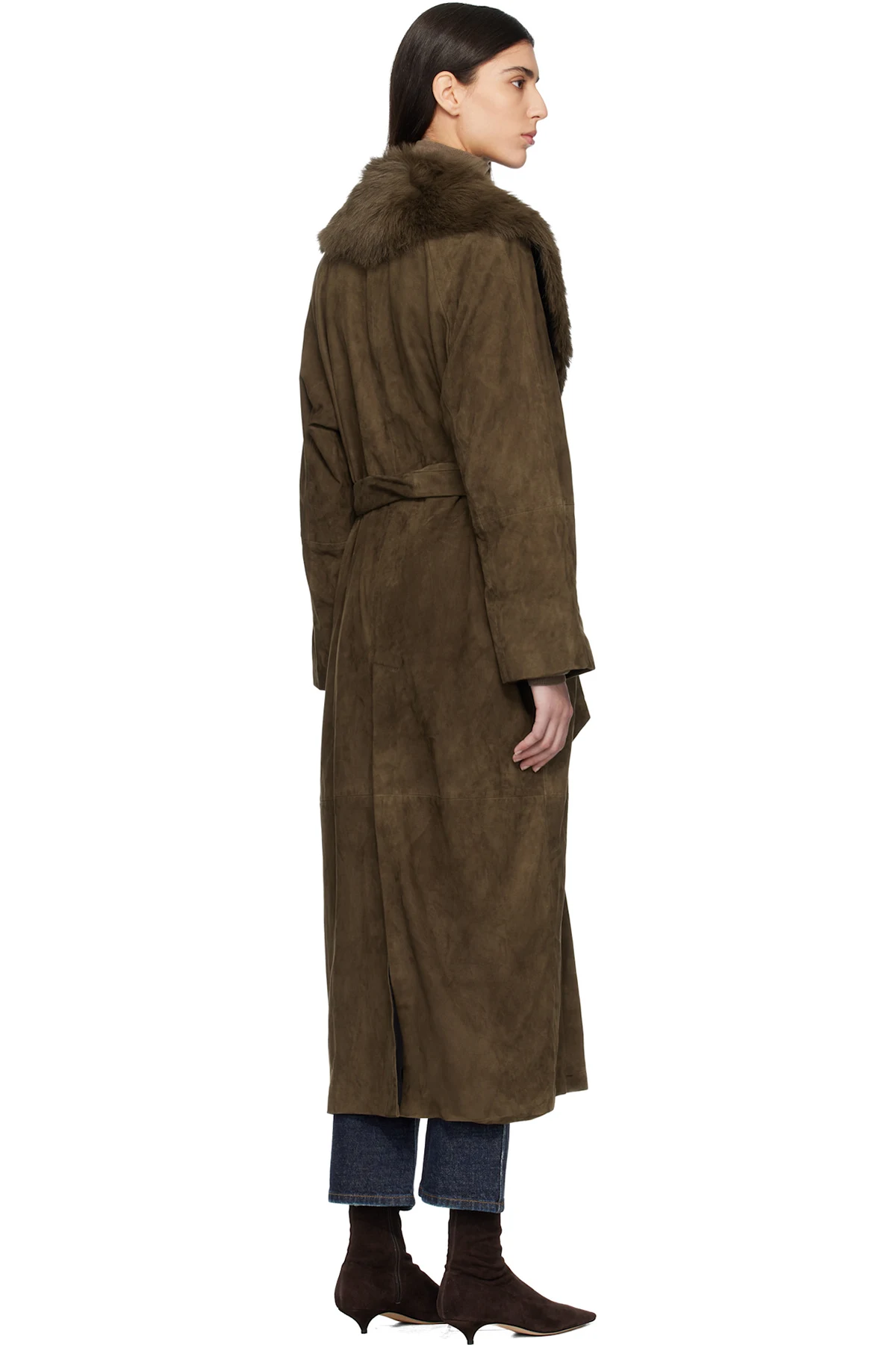 Nour Hammour Khaki Briona Luxurious Suede Coat