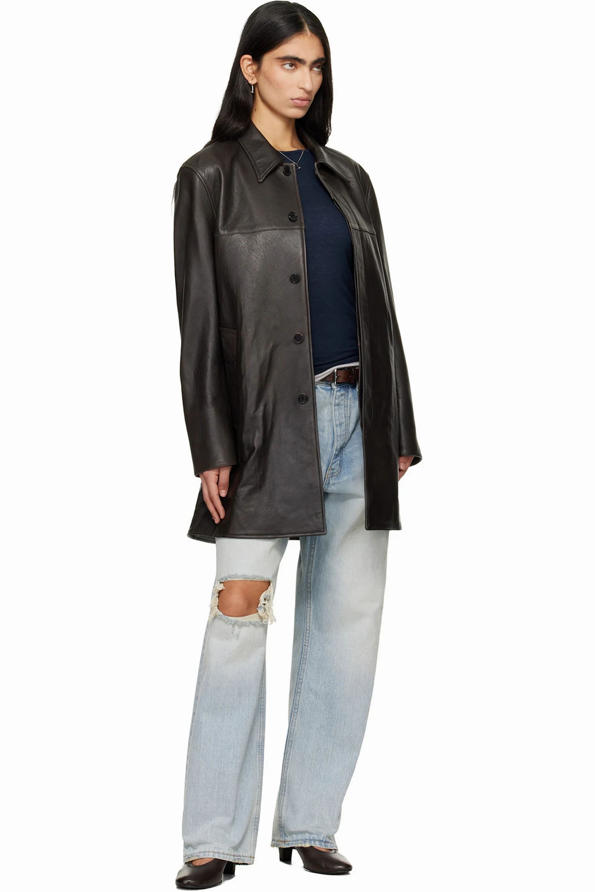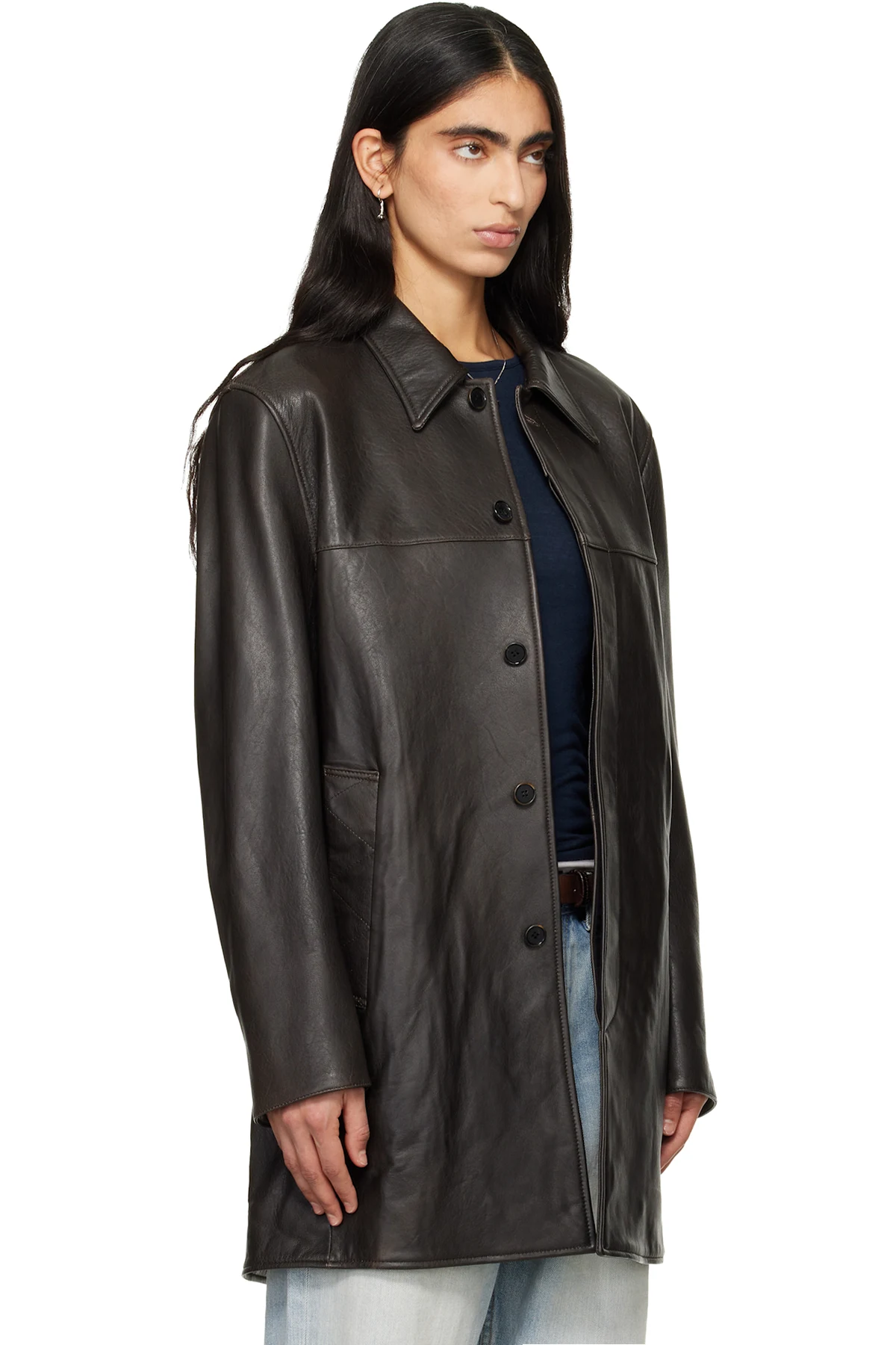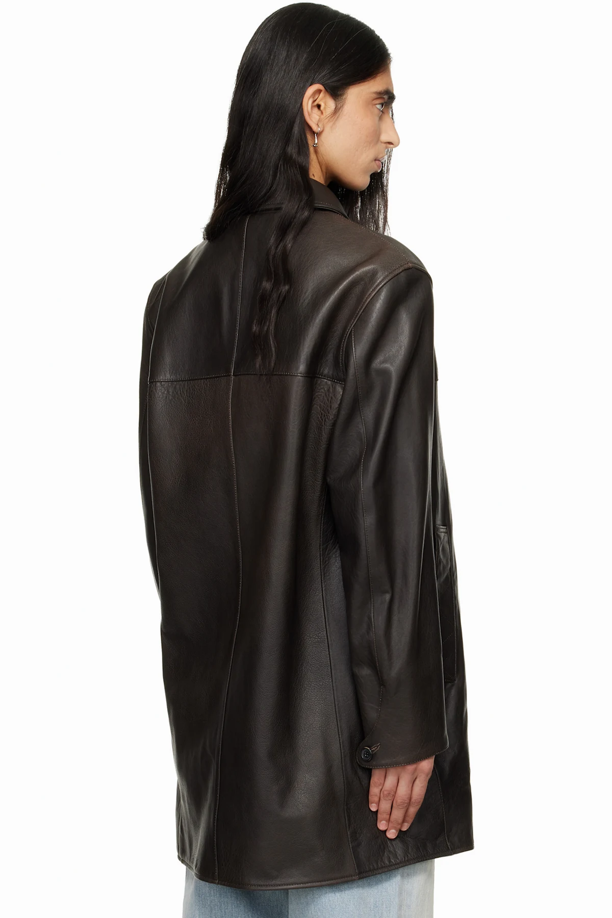 TONYWACK Brown Aged Lamb Leather Car Coat