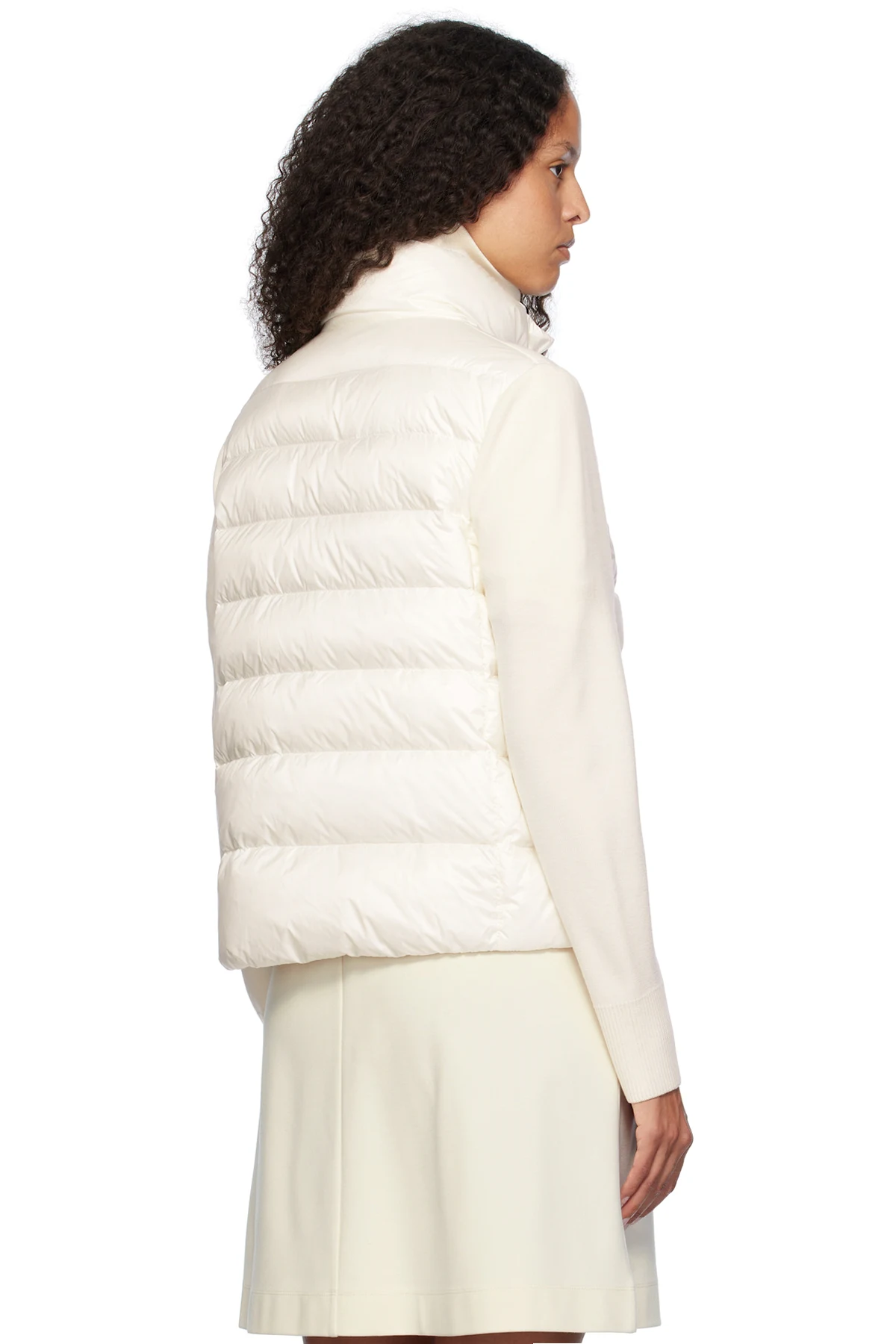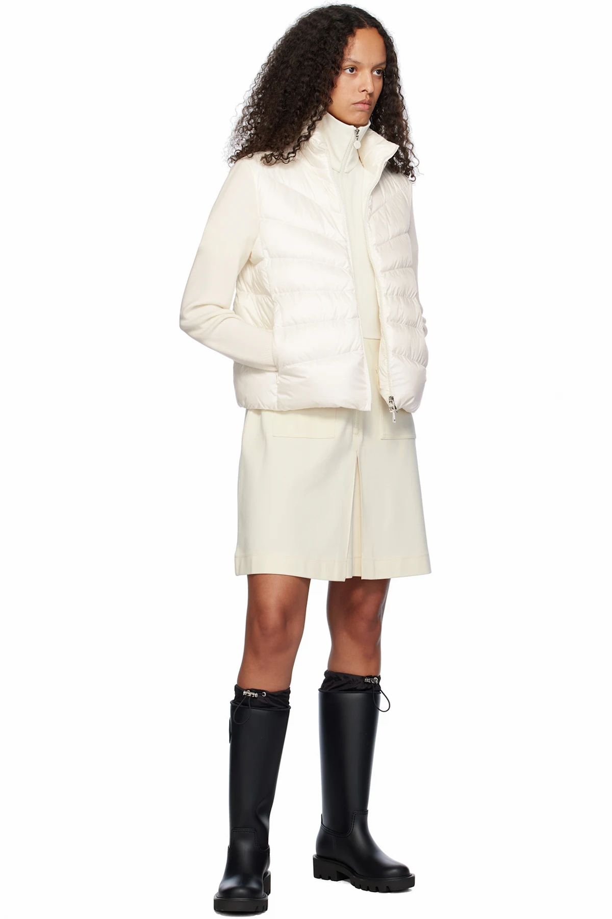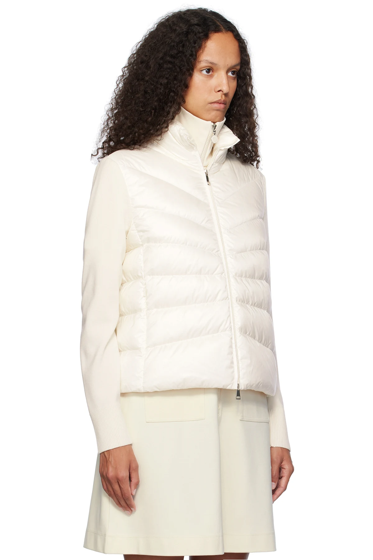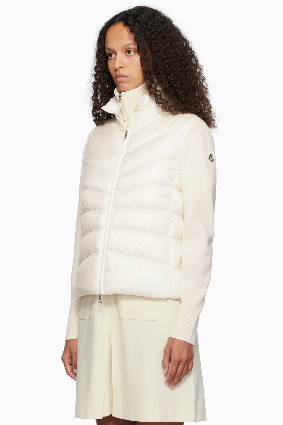 DIST-certified down-filled and quilted nylon laqué and 14-gauge rib-knit virgin wool cardigan.