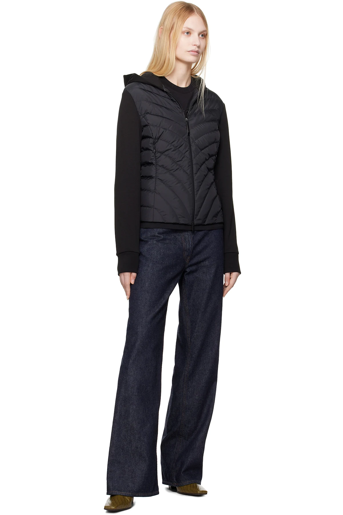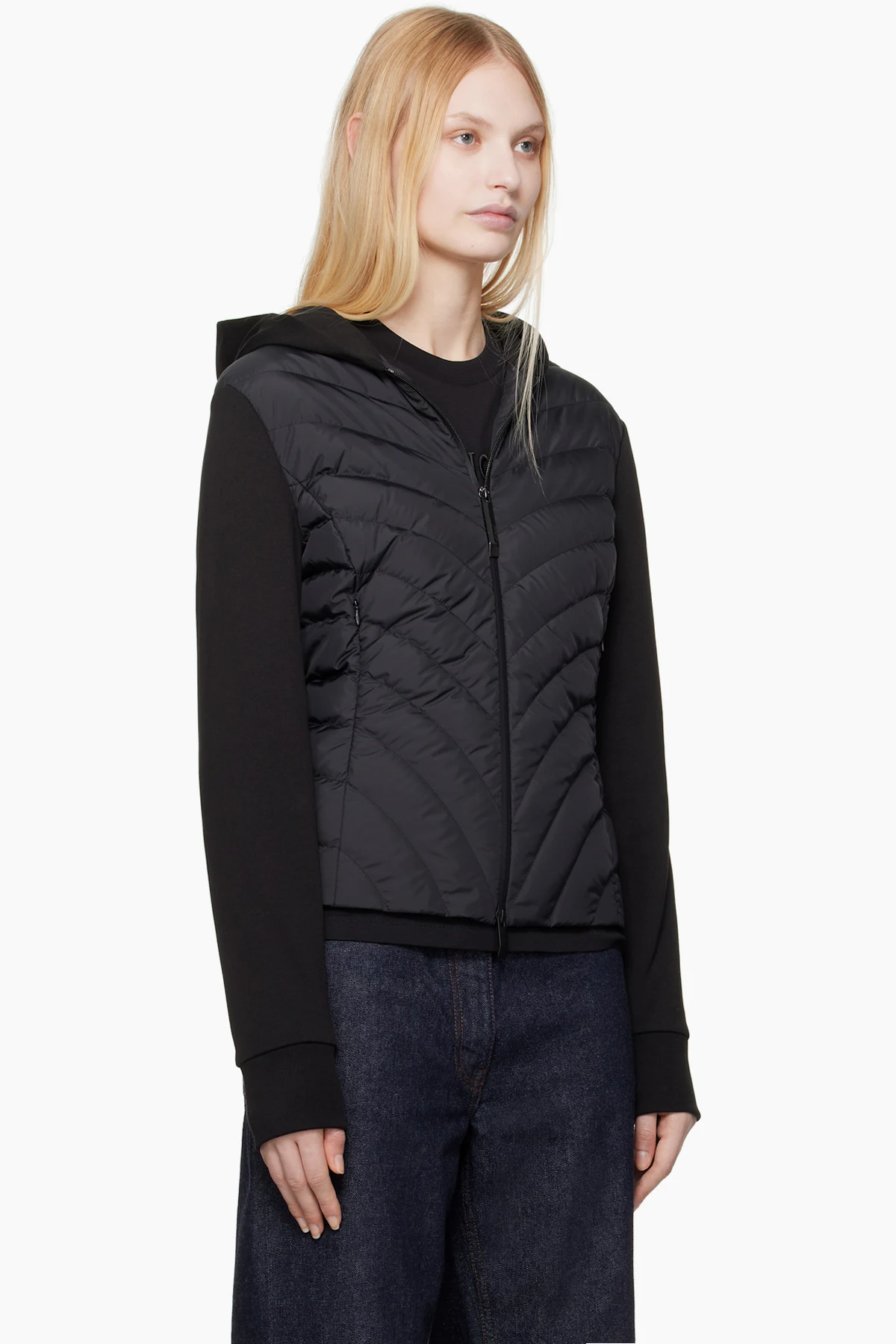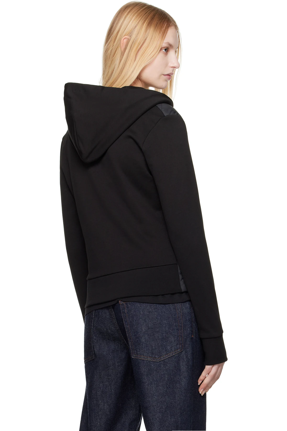 · Rib-knit cuffs and back hem
