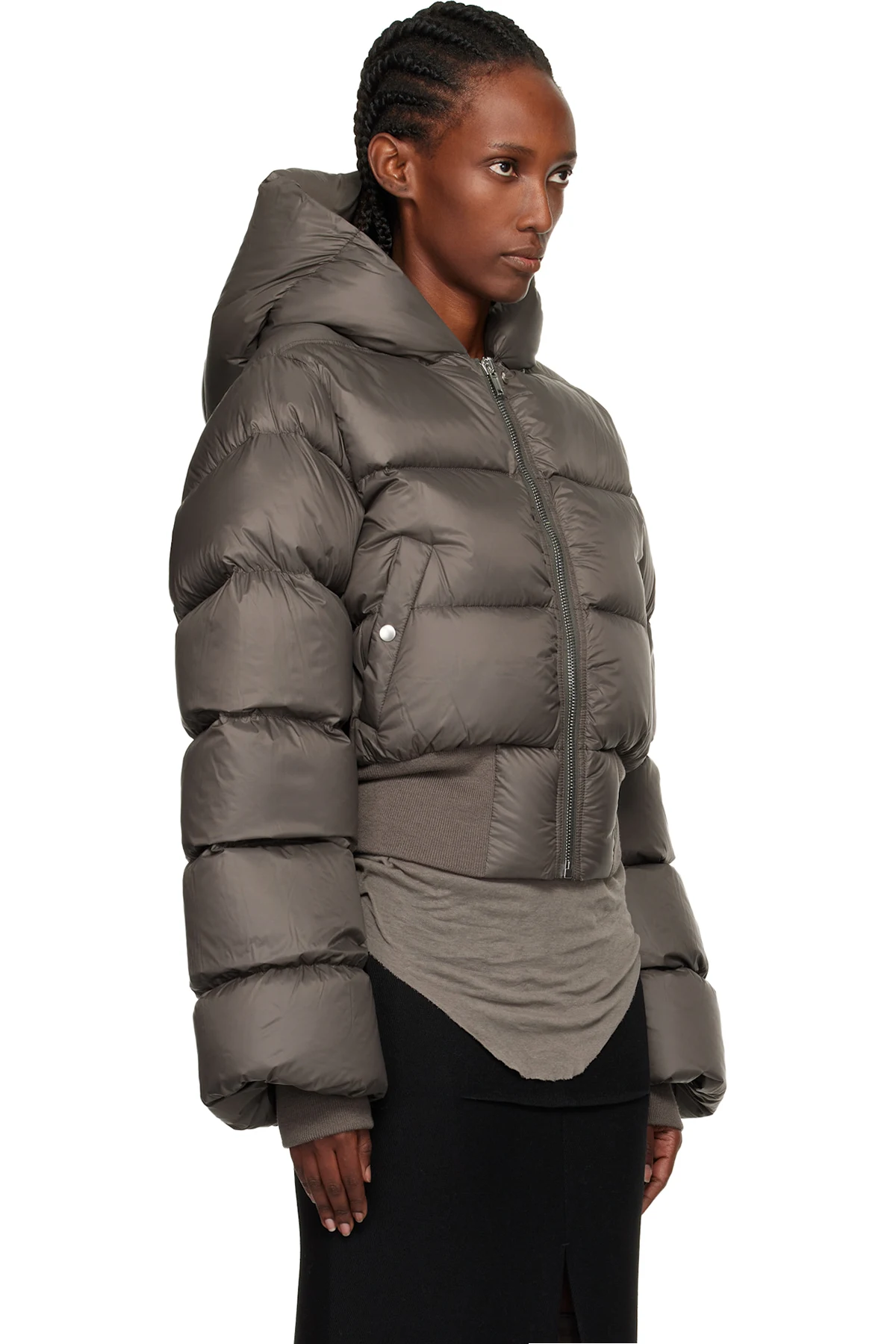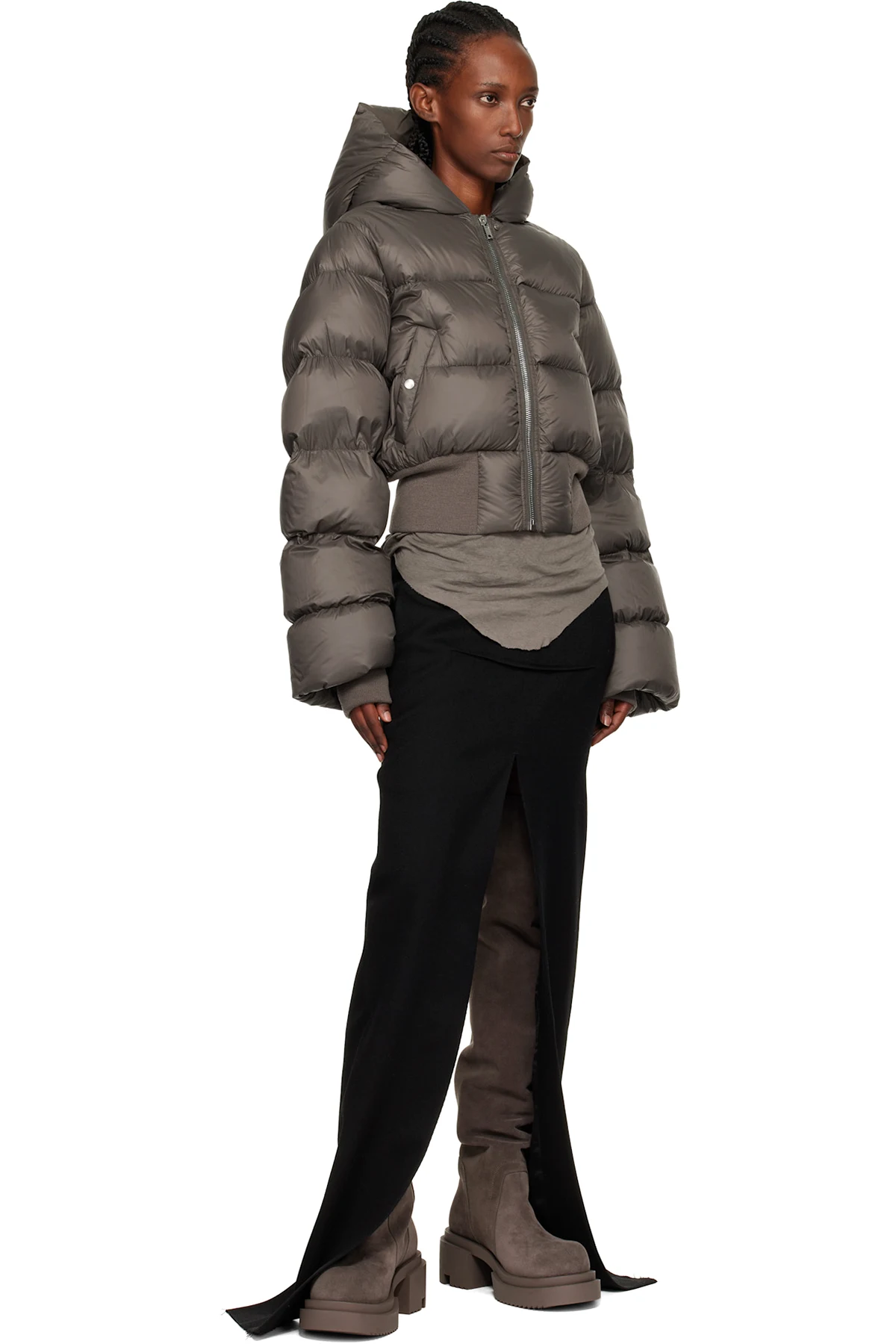Rick Owens Gray Concordians Hooded Down Jacket
