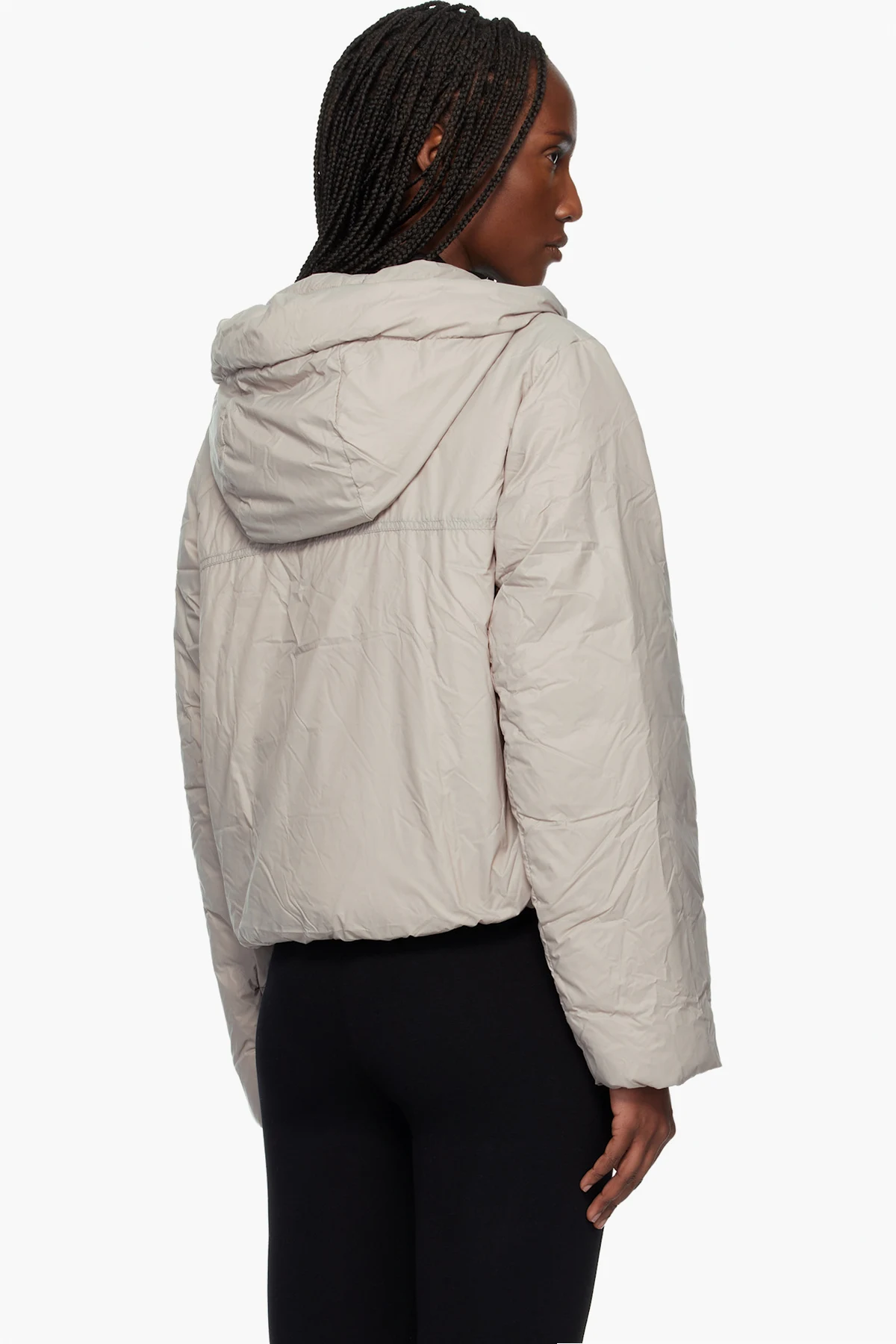 Down-filled nylon satin jacket.
