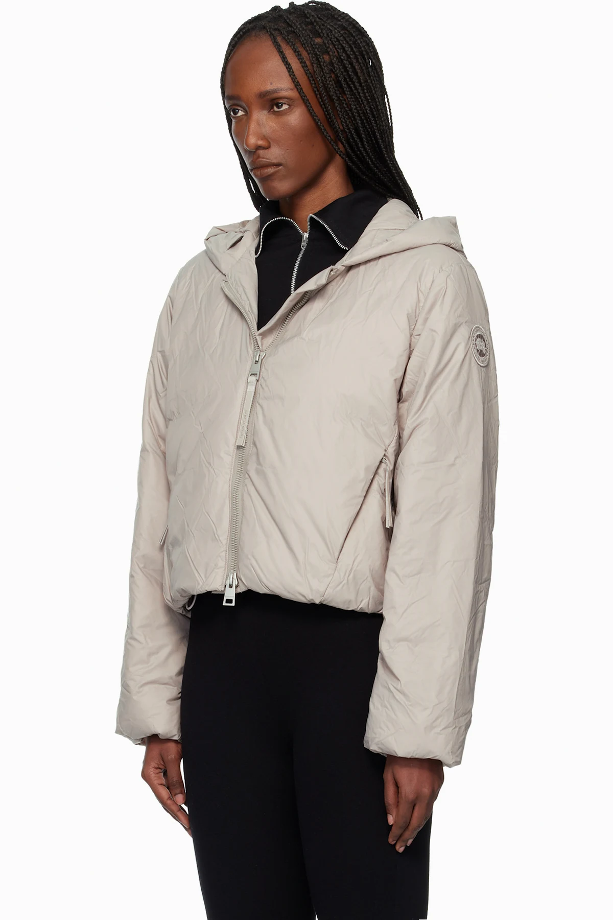 · Bungee-style drawstring at hood