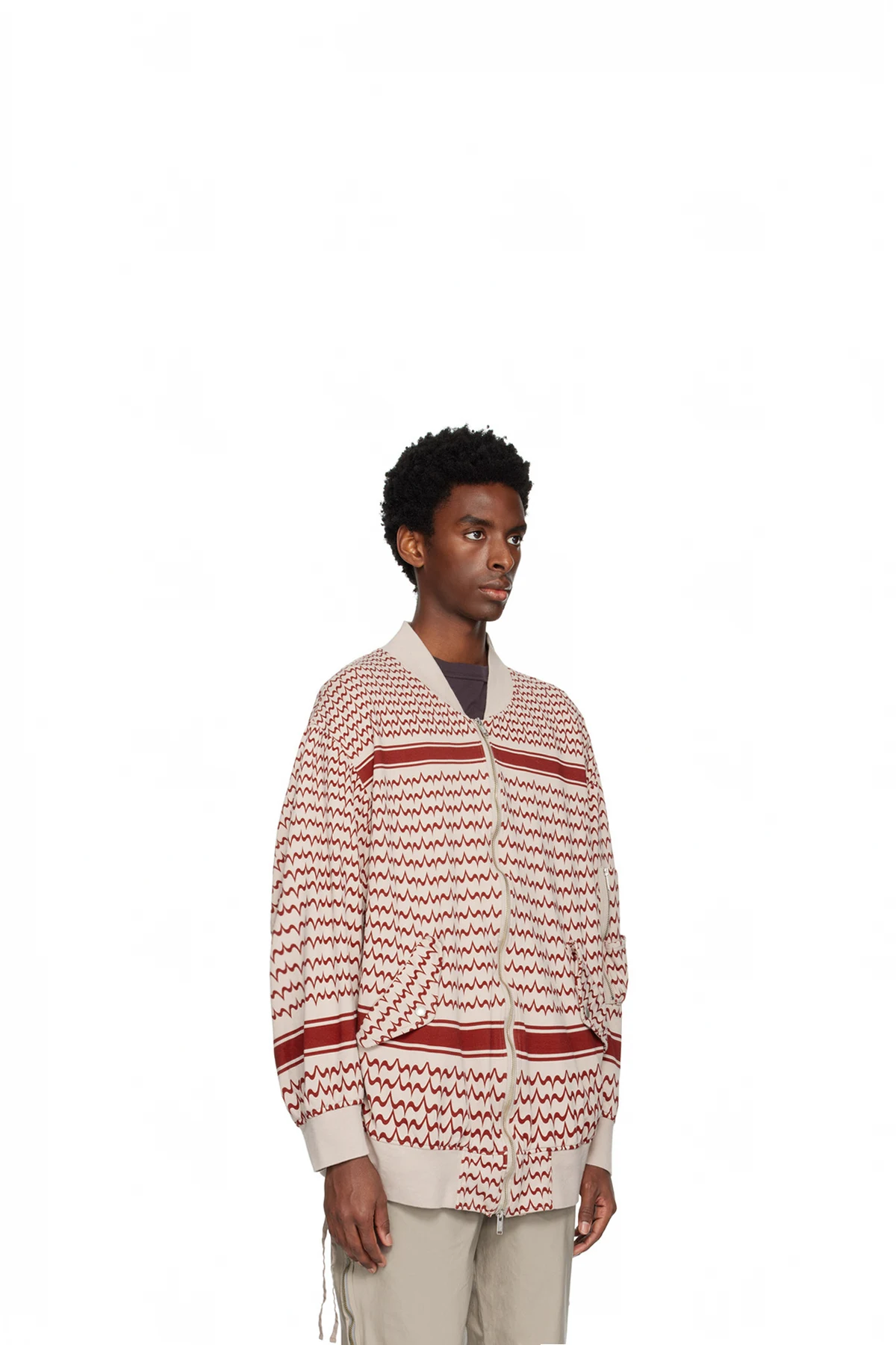 French terry bomber jacket. Graphic pattern printed throughout.