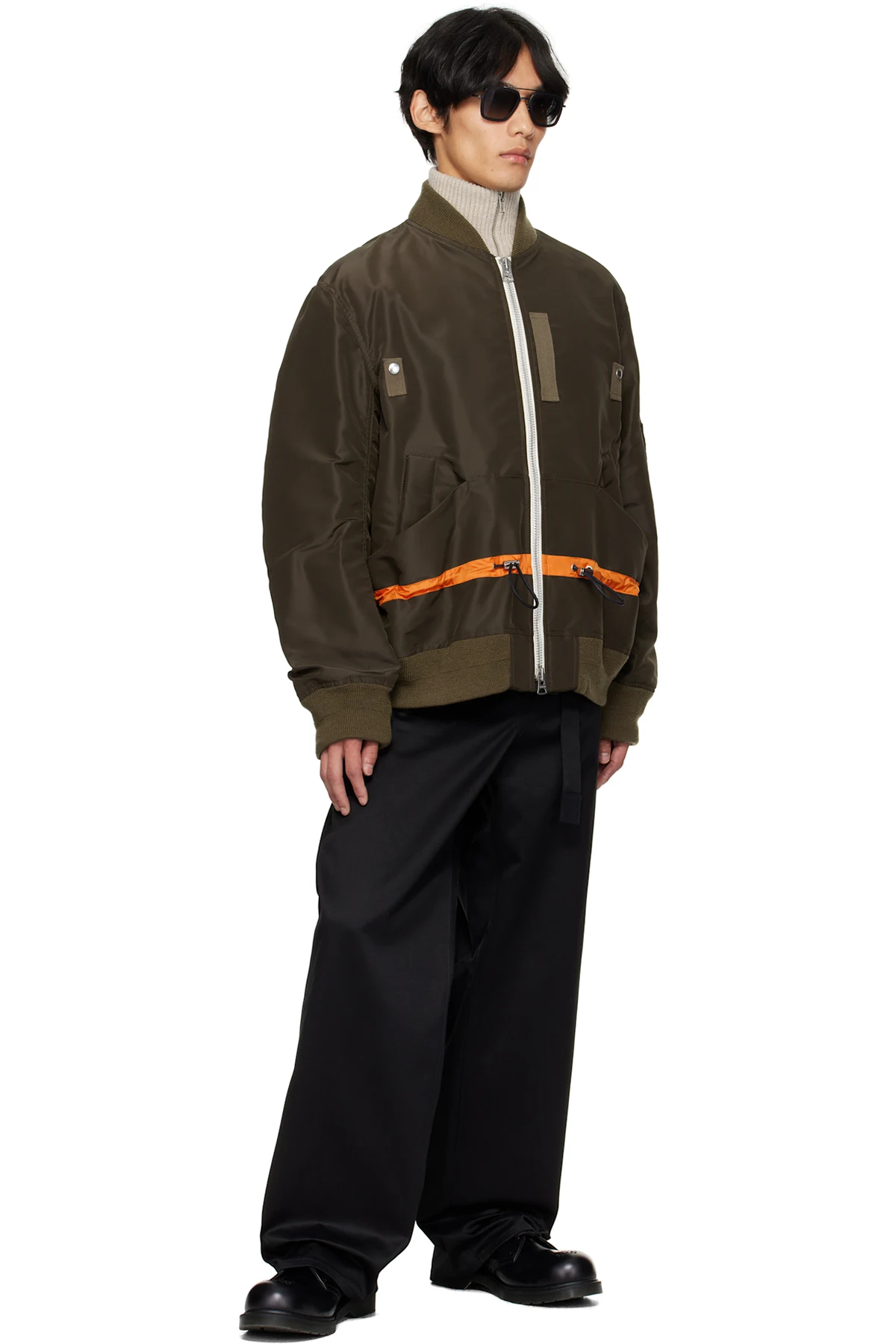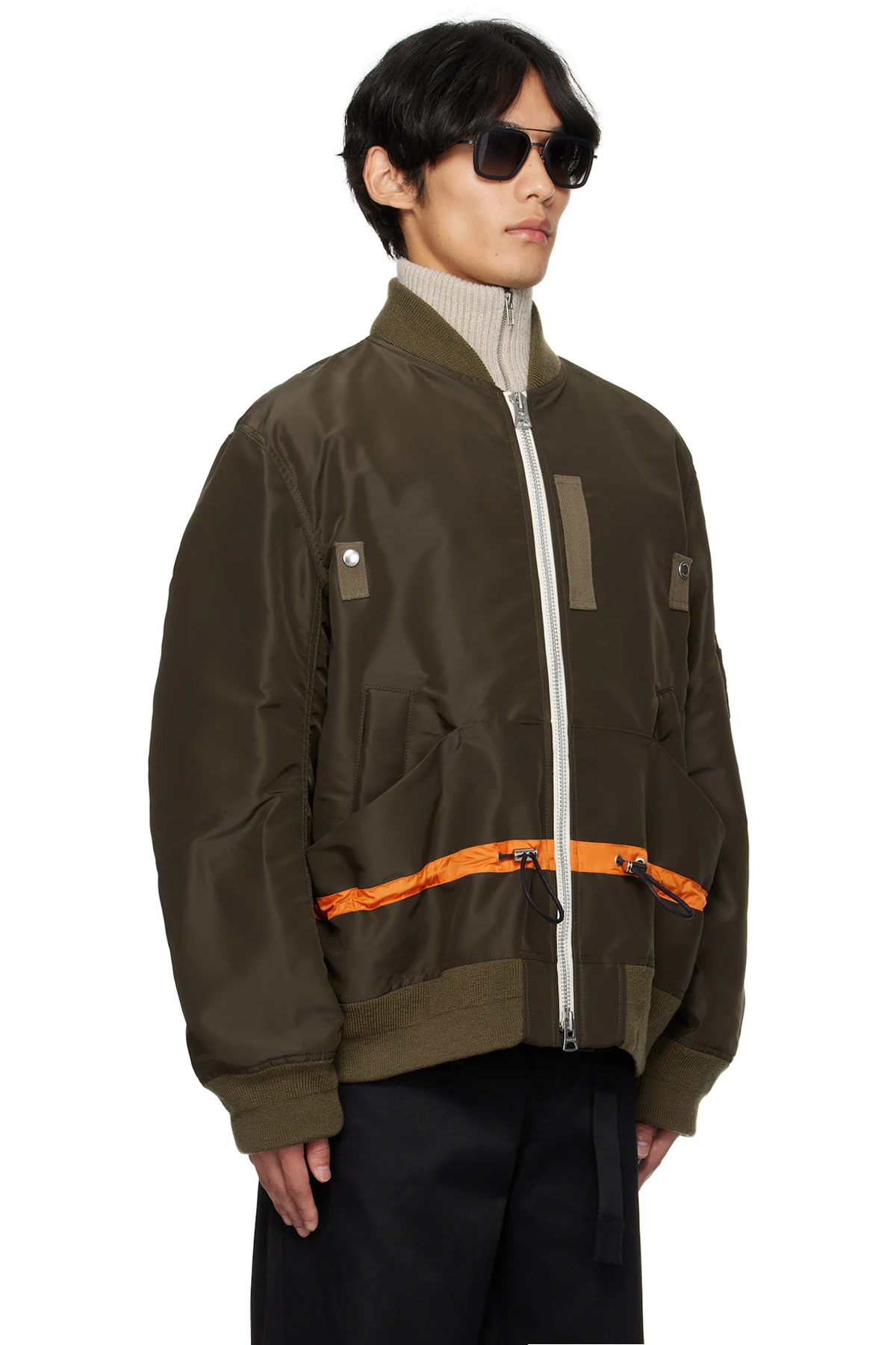 sacai Khaki Nylon Twill Blouson Bomber Jacket
