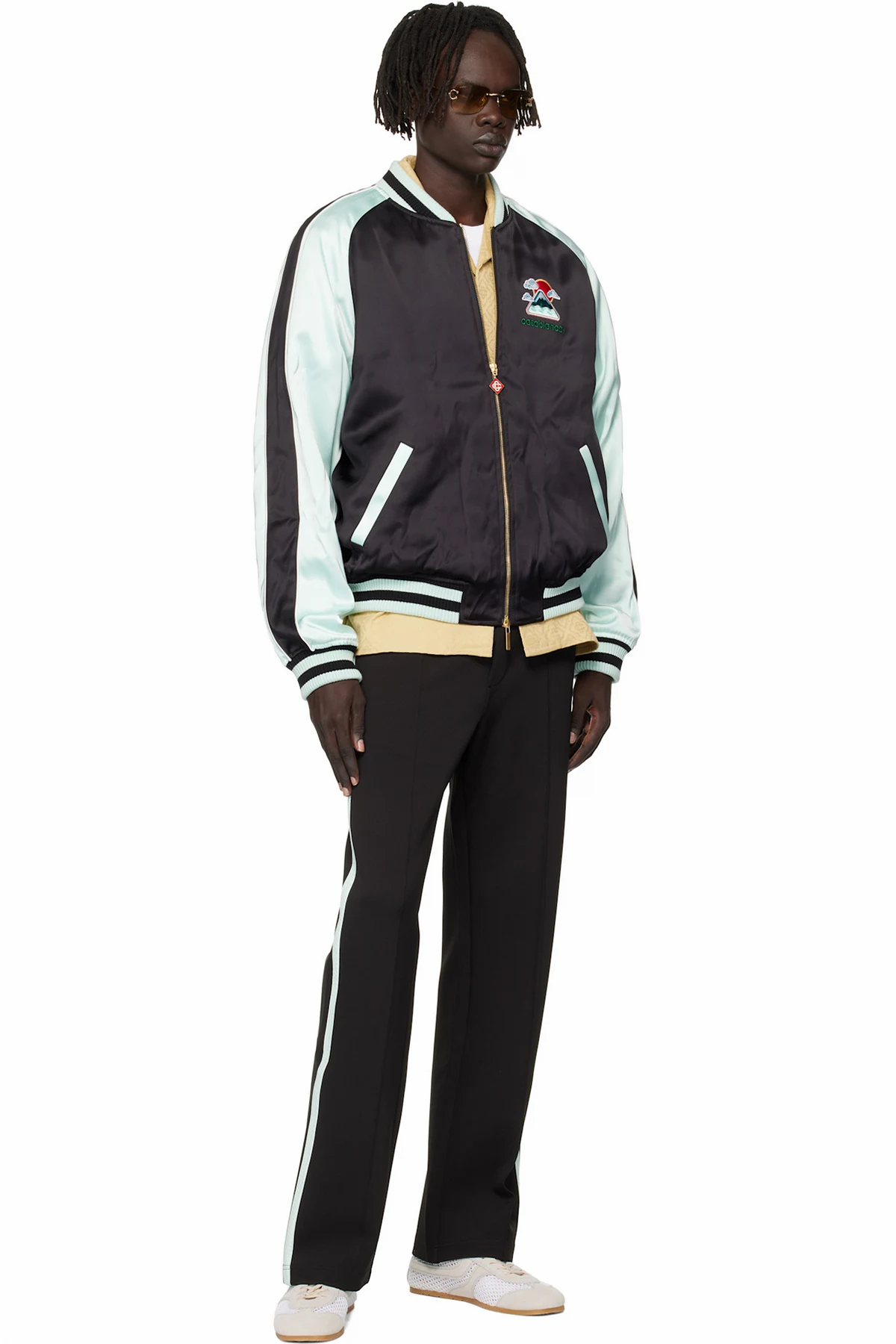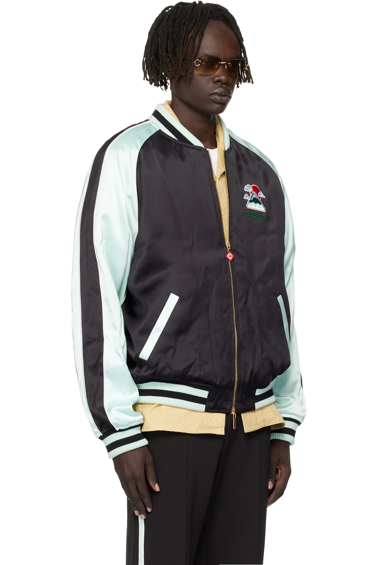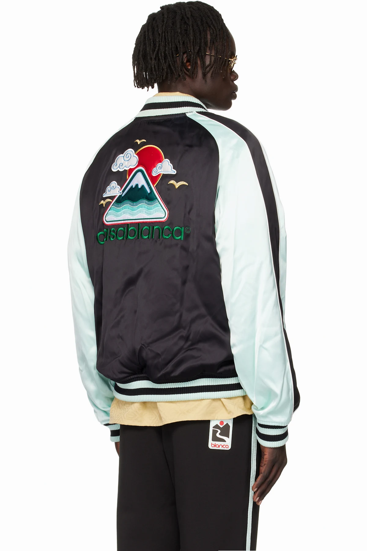 Casablanca Green & Black Embroidered Satin Bomber Jacket