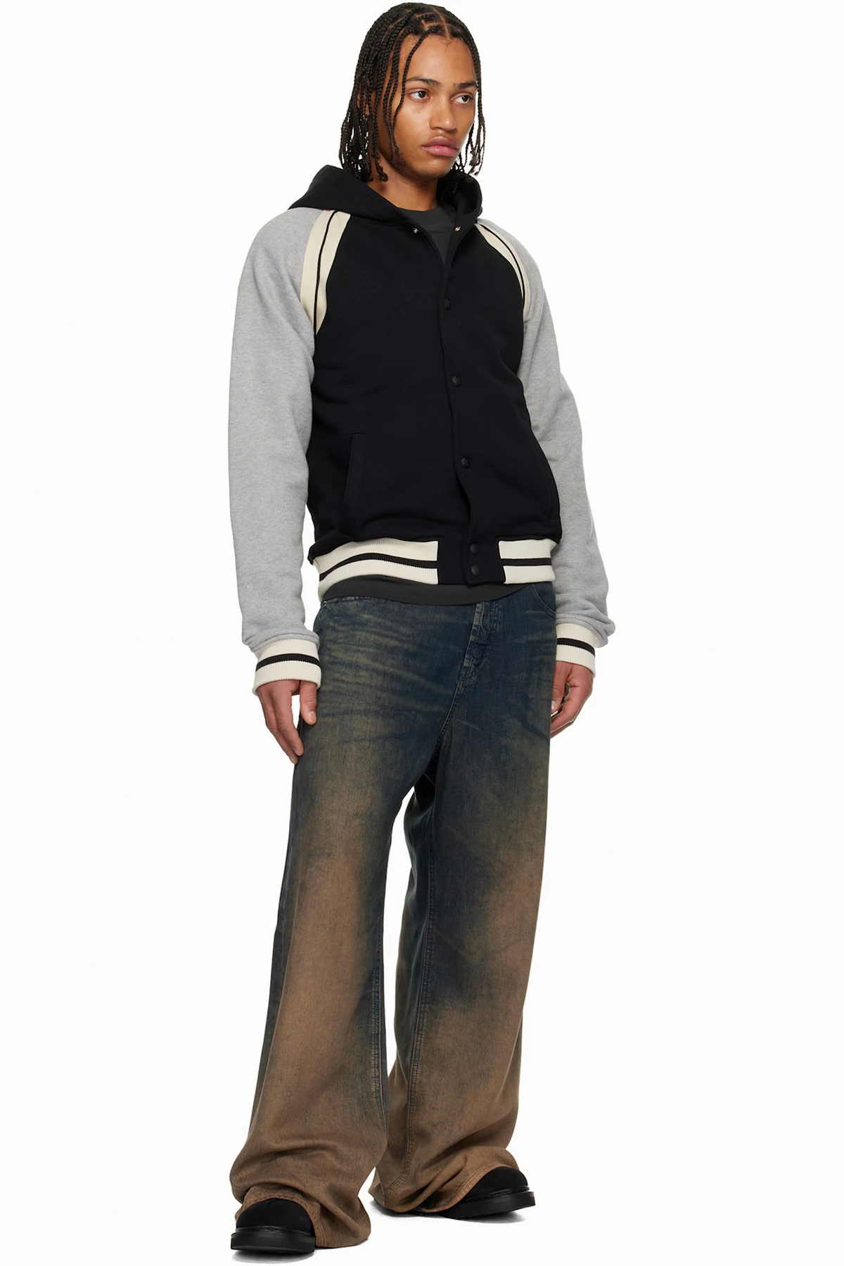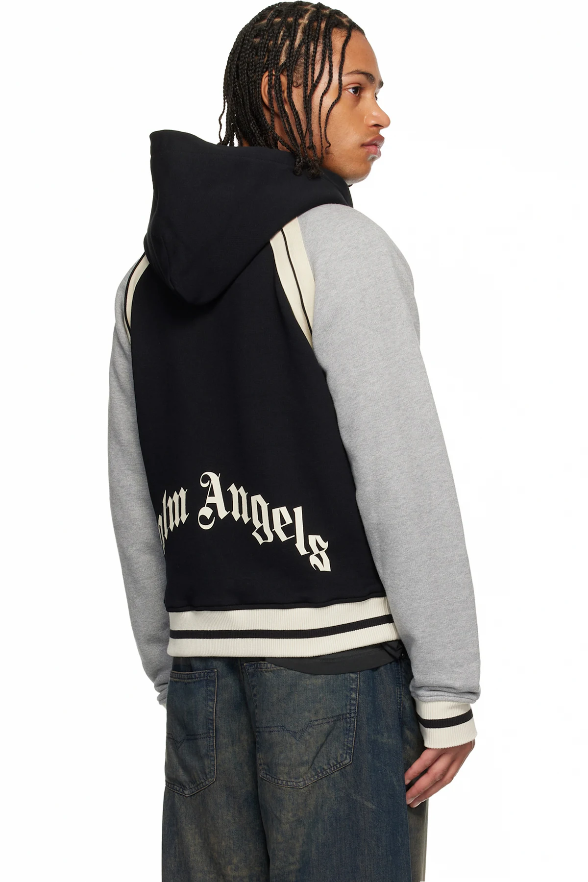 Palm Angels Black & Gray Curved Logo Varsity Jacket