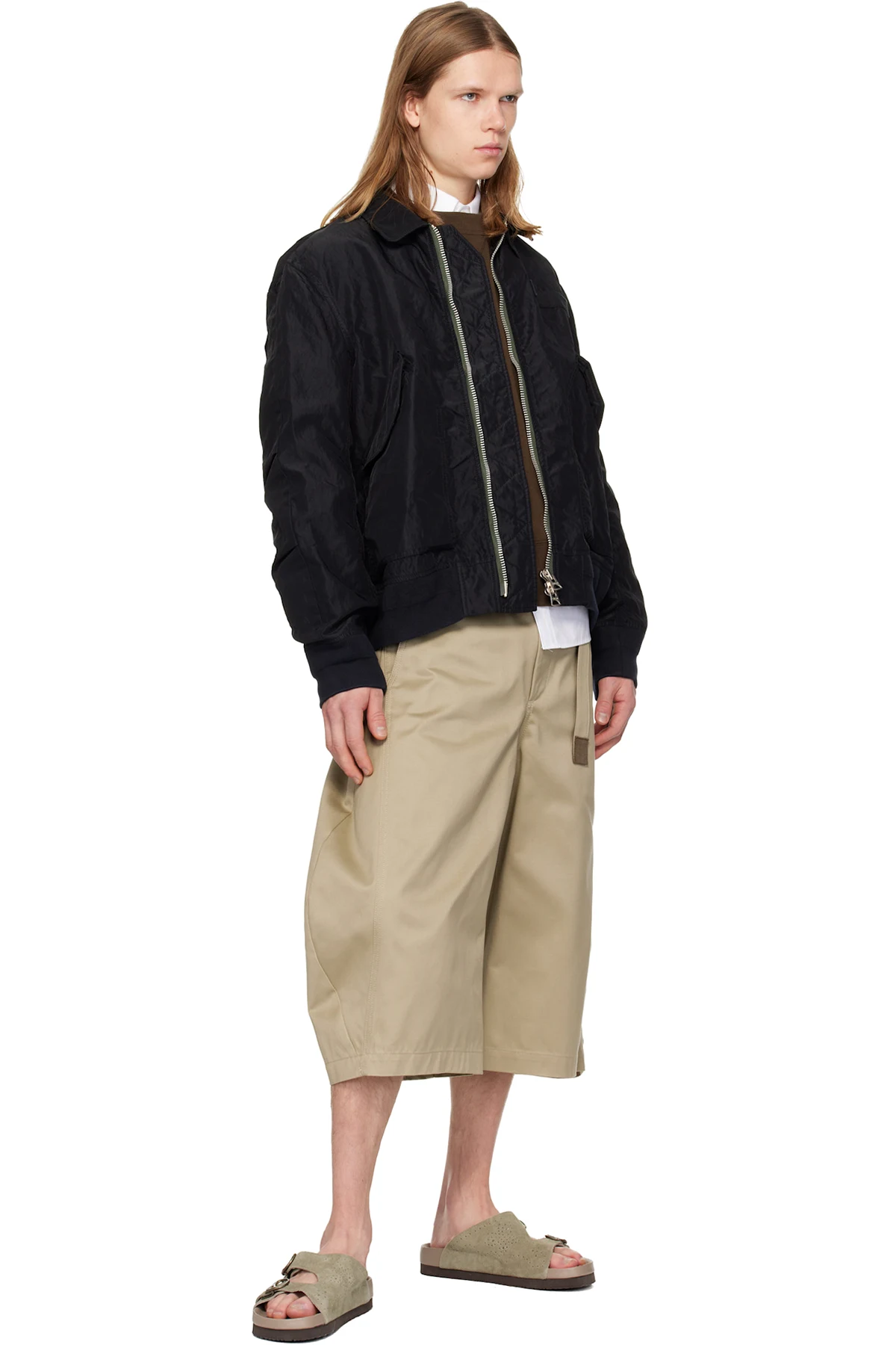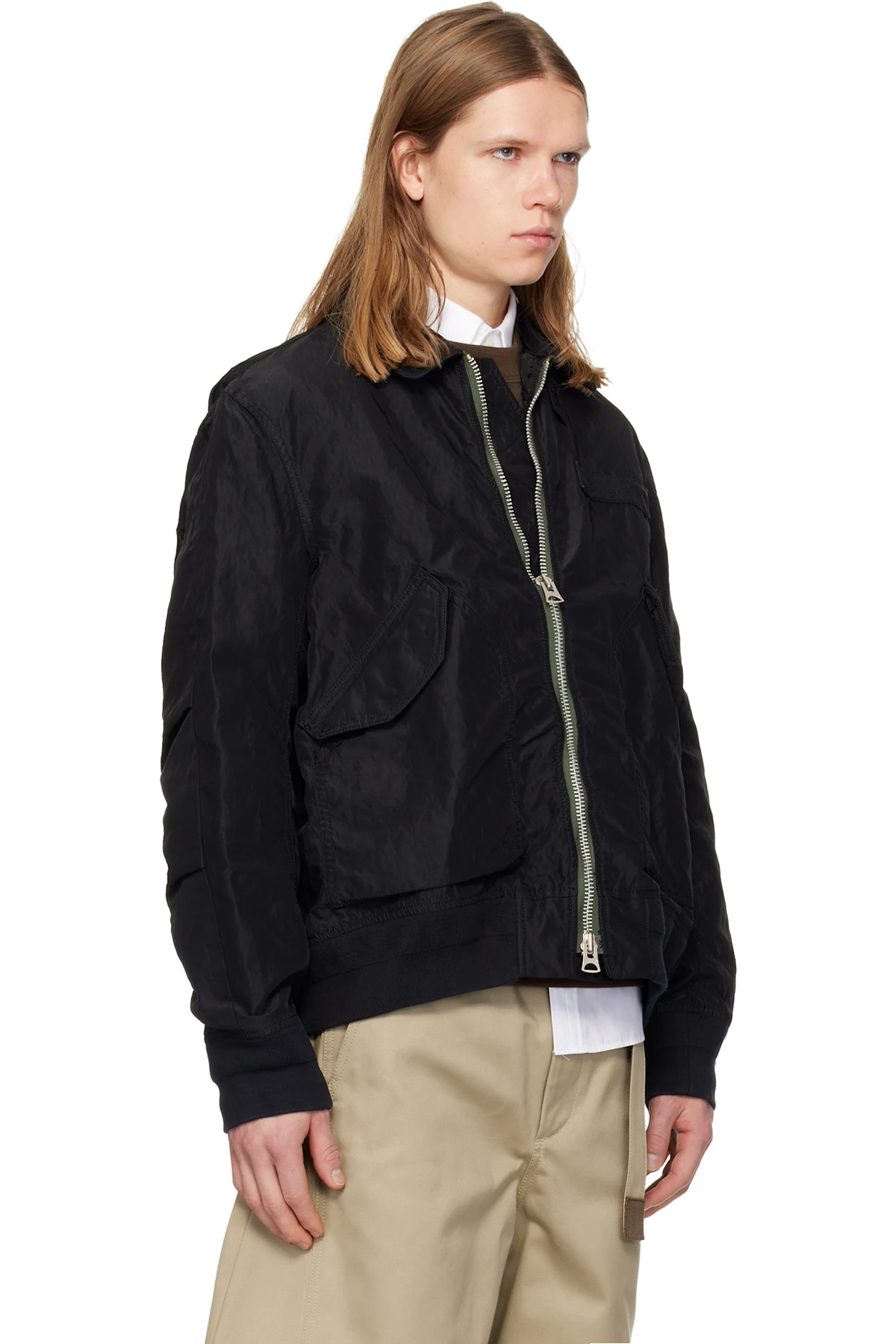 sacai Black Treated Nylon Twill Blouson Bomber Jacket