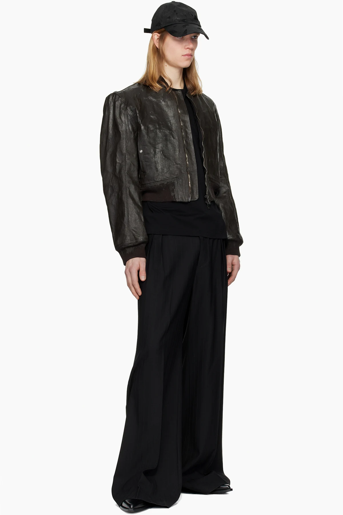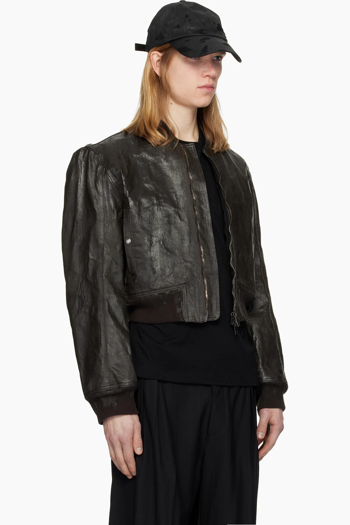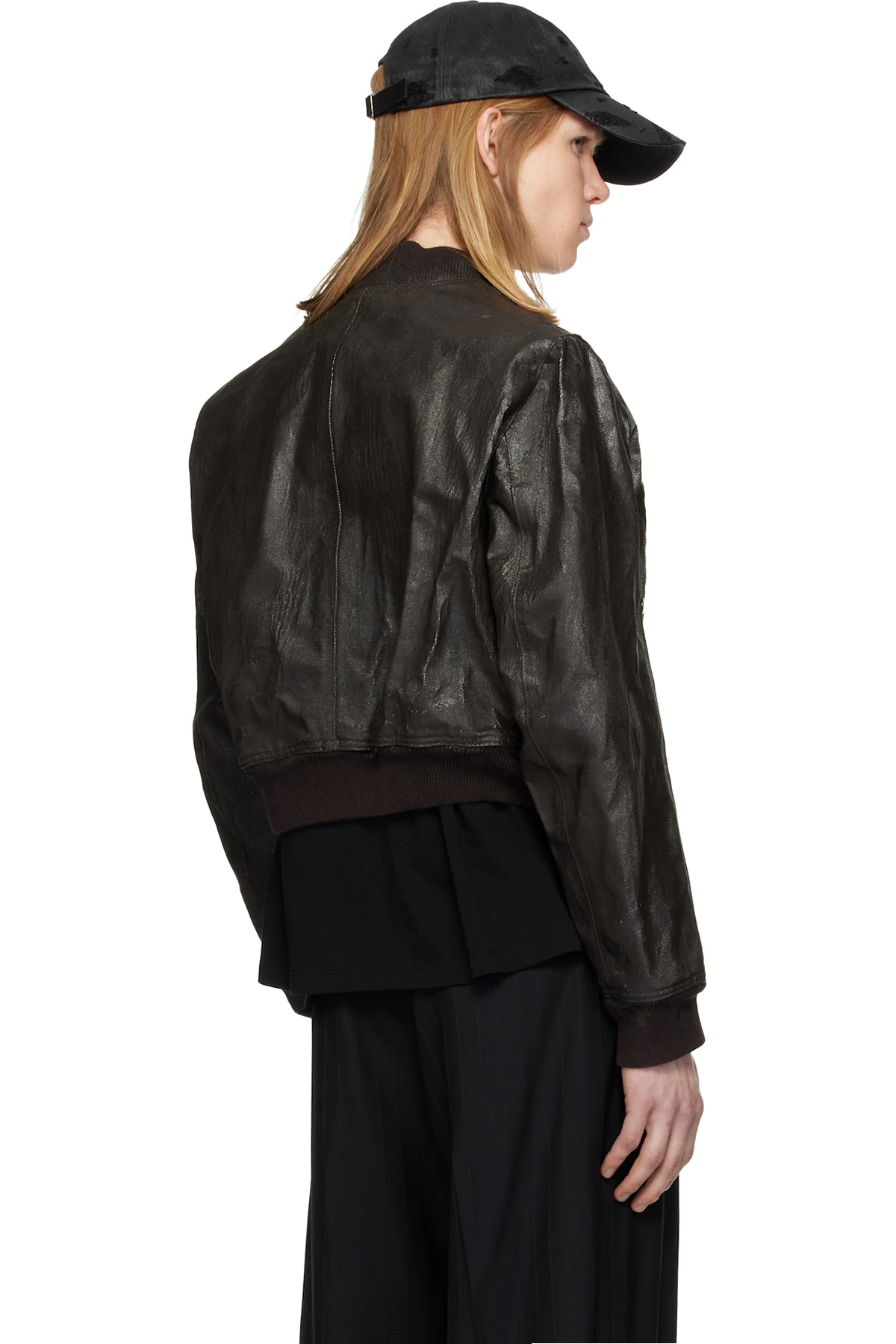 DET BLEV SENT Brown Locust Crack Waxed Denim Bomber Jacket